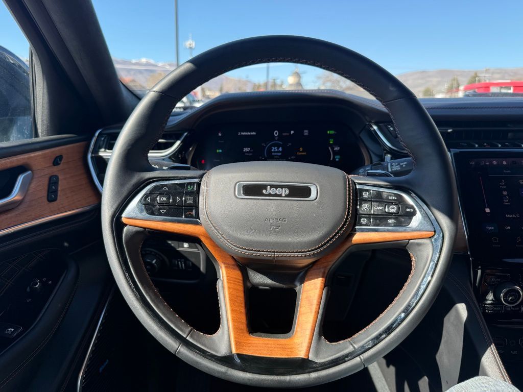 2.0L I4 DOHC, 4WD, 19 Speakers, 2nd-Row Manual Window Shades, 3.70 Rear Axle Ratio, 4-Wheel Disc Brakes, ABS brakes, Adaptive suspension, Advanced Protech Group IV, Air Conditioning, Alloy wheels, AM/FM radio: SiriusXM with 360L, Anti-whiplash front head restraints, Audio memory, Auto High-beam Headlights, Auto-dimming door mirrors, Auto-dimming Rear-View mirror, Auto-leveling suspension, Automatic temperature control, Brake assist, Bumpers: body-color, Compass, Delay-off headlights, Deluxe Headliner, Driver door bin, Driver vanity mirror, Dual front impact airbags, Dual front side impact airbags, Electronic Stability Control, Four wheel independent suspension, Front anti-roll bar, Front Bucket Seats, Front Center Armrest w/Storage, Front dual zone A/C, Front fog lights, Front License Plate Bracket, Front reading lights, Fully automatic headlights, Garage door transmitter, Genuine wood dashboard insert, Genuine wood door panel insert, Gloss Black Exterior Accents, Gloss Black Roof Rails, Heads-Up Display, Heated door mirrors, Heated front seats, Heated rear seats, Heated steering wheel, Heavy Duty Suspension, High Altitude Package, Illuminated entry, Knee airbag, Leather steering wheel, Low tire pressure warning, Luxury Tech Group V, Memory seat, Nappa Leather Seats, Navigation System, Neutral Gray Exterior Accents, Night Vision/Pedestrian-Animal Detection, Occupant sensing airbag, Outside temperature display, Overhead airbag, Overhead console, Painted Door Cladding, Palermo Leather Door Trim, Palermo Leather Seats, Panic alarm, Passenger door bin, Passenger vanity mirror, Power door mirrors, Power driver seat, Power Liftgate, Power moonroof, Power passenger seat, Power steering, Power windows, Quick Order Package 27U Summit Reserve, Radio data system, Radio: Uconnect 5 Nav w/10.1'' Display, Rain sensing wipers, Rear air conditioning, Rear anti-roll bar, Rear dual zone A/C, Rear reading lights, Rear seat center armrest, Rear window defroster, Rear window wiper, Rearview Autodim Digital Display Mirror, Remote keyless entry, Security system, Speed control, Speed-Sensitive Wipers, Split folding rear seat, Spoiler, Steering wheel memory, Steering wheel mounted audio controls, Summit Reserve, Summit Reserve Badge, Tachometer, Telescoping steering wheel, Tilt steering wheel, Traction control, Trip computer, Turn signal indicator mirrors, Two Tone Paint Group, Variably intermittent wipers, Ventilated front seats, Ventilated Rear Seats, Voltmeter, Wheels: 20'' x 8.5'' Fully Painted Aluminum Silver, Wheels: 21'' x 9'' Black Painted Aluminum, Wheels: 21'' x 9'' Machined Face/Painted Aluminum, Wireless Charging Pad, 2.0L I4 DOHC, 4WD.