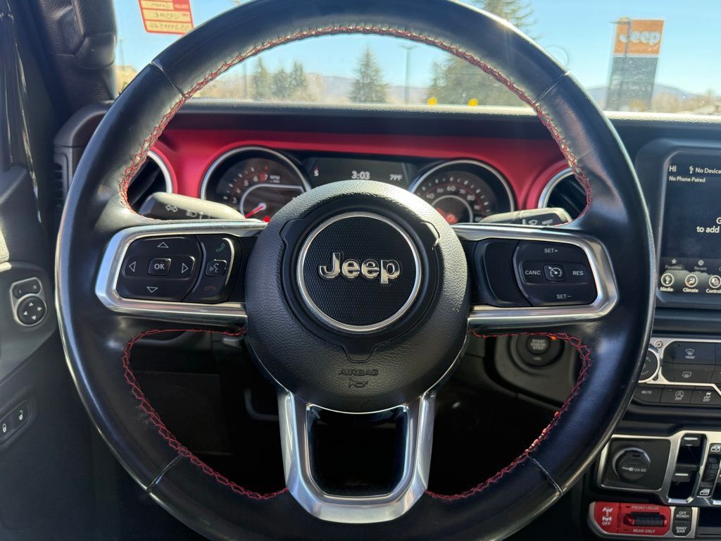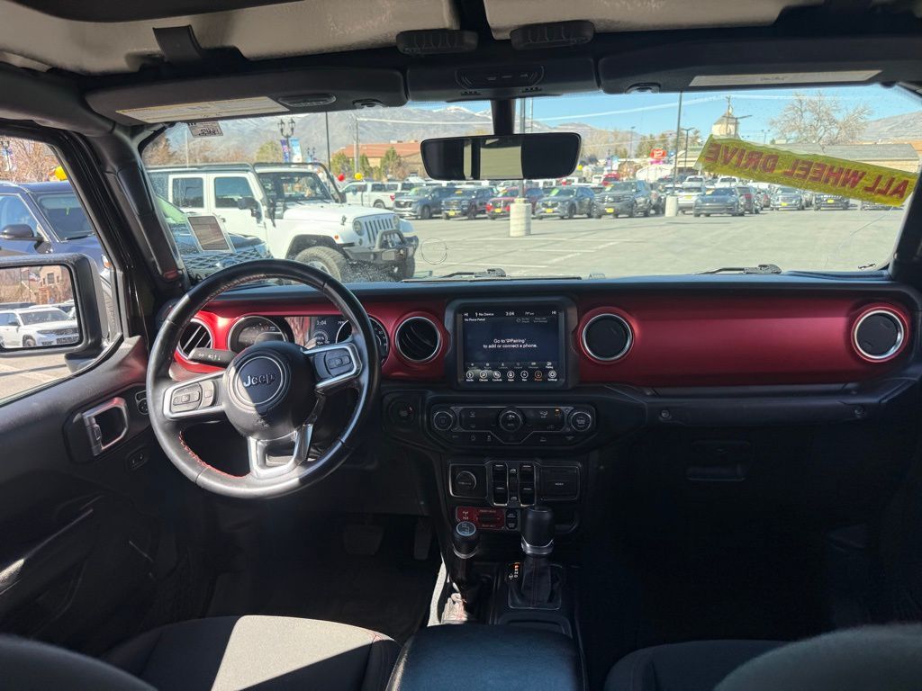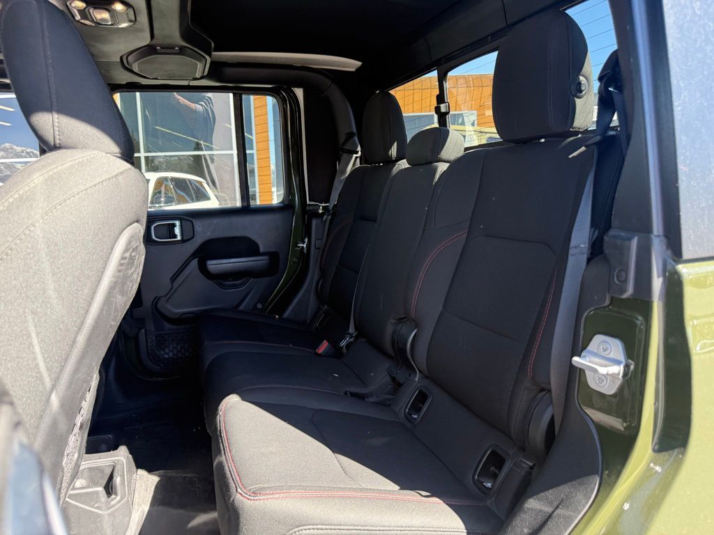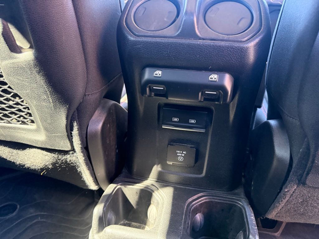 240 Amp Alternator, 4-Wheel Disc Brakes, 4.10 Rear Axle Ratio, 9 Speakers, 97 MPH Vehicle Max Speed Calibration, ABS brakes, Air Conditioning, Alloy wheels, AM/FM radio: SiriusXM, Apple CarPlay/Android Auto, Auto-dimming Rear-View mirror, Automatic temperature control, Black 3-Piece Hard Top, Brake assist, Class IV Receiver Hitch, Compass, Delay-off headlights, Driver door bin, Driver vanity mirror, Dual front impact airbags, Dual front side impact airbags, Electronic Stability Control, Emergency communication system: SiriusXM Guardian, Freedom Panel Storage Bag, Front anti-roll bar, Front Bucket Seats, Front Center Armrest w/Storage, Front dual zone A/C, Front fog lights, Front License Plate Bracket, Front reading lights, Fully automatic headlights, Garage door transmitter, Heated door mirrors, Heavy-Duty Engine Cooling, Illuminated entry, Integrated roll-over protection, Leather steering wheel, Low tire pressure warning, MOPAR All-Weather Slush Mats, MOPAR Hardtop Headliner, MOPAR Spray In Bedliner, Navigation System, Occupant sensing airbag, Outside temperature display, Panic alarm, ParkView Rear Back-Up Camera, Passenger door bin, Passenger vanity mirror, Performance Suspension, Power door mirrors, Power steering, Power windows, Premium Cloth Low-Back Bucket Seats, Quick Order Package 24R, Radio data system, Radio: Uconnect 4C Nav w/8.4'' Display, Rear anti-roll bar, Rear reading lights, Rear Sliding Window, Rear Window Defroster, Remote keyless entry, Security system, Speed control, Split folding rear seat, Steering wheel mounted audio controls, Tachometer, Telescoping steering wheel, Tilt steering wheel, Traction control, Trailer Hitch Zoom, Trailer Tow Package, Trip computer, Variably intermittent wipers, Voltmeter, Wheels: 17'' x 7.5'' Granite Crystal Aluminum.