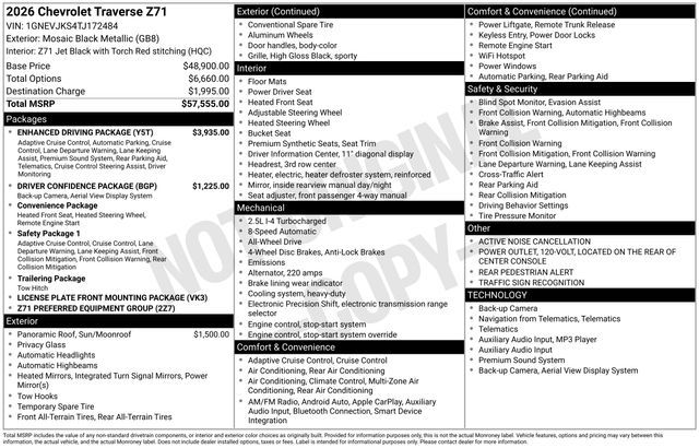 Turn every drive into something special with this Chevrolet Traverse from Salt Lake Valley Chevrolet! Designed for comfort, performance, and style, this vehicle comes fully equipped with modern technology and convenience features you’ll love. Plus, enjoy a $1,000 finance savings, already included in the sale price, when you finance through one of our trusted lending partners. If you’re shopping for used cars in Salt Lake City, or searching for the perfect SUV, truck, or sedan, this Chevrolet Traverse delivers the dependability and value you’re looking for. It’s the ideal match for your lifestyle - ready for everything from mountain adventures to city commutes. Visit Salt Lake Valley Chevrolet today and see why so many Utah drivers trust us for great deals on quality pre-owned vehicles. Explore our inventory online at www.slvchevy.com or call 801-969-8221 to schedule your test drive today! This impressive vehicle includes Driver Confidence Package (HD Surround Vision, Key Card, Power Outlet, Rear Camera Mirror, Rear Pedestrian Alert, and Traffic Sign Recognition), Enhanced Driving Package (Active Noise Cancellation, Bose Premium 12-Speaker Audio System Feature, Driver Attention Assist, Enhanced Automatic Parking Assist, and Super Cruise), Preferred Equipment Group 2Z7, 3rd row seats: split-bench, 4-Way Manual Front Passenger Seat Adjuster, 4-Wheel Disc Brakes, 6 Speakers, 6-Speaker Audio System Feature, 8-Way Power Driver Seat Adjuster, ABS brakes, Air Conditioning, Alloy wheels, AM/FM radio: SiriusXM with 360L, Apple CarPlay/Android Auto, Auto High-beam Headlights, Automatic temperature control, Brake assist, Child-Seat-Sensing Airbag, Compass, Delay-off headlights, Driver door bin, Driver vanity mirror, Dual front impact airbags, Dual front side impact airbags, Electronic Stability Control, Emergency communication system: OnStar, Evotex Seat Trim, Four wheel independent suspension, Front anti-roll bar, Front Bucket Seats, Front Center Armrest, Front dual zone A/C, Front reading lights, Fully automatic headlights, Heated door mirrors, Heated Driver and Front Passenger Seats, Heated front seats, Heated steering wheel, Illuminated entry, Low tire pressure warning, Navigation System, Occupant sensing airbag, Outside temperature display, Overhead airbag, Overhead console, Panic alarm, Passenger door bin, Passenger vanity mirror, Power door mirrors, Power driver seat, Power Dual Glass Panoramic Sliding Sunroof, Power Liftgate, Power steering, Power windows, Radio data system, Radio: : Audio System w/17.7'' Diagonal Display, Rear air conditioning, Rear anti-roll bar, Rear reading lights, Rear window defroster, Rear window wiper, Remote keyless entry, Security system, SiriusXM with 360L Trial Subscription, Speed control, Speed-sensing steering, Spoiler, Steering wheel mounted audio controls, Tachometer, Telescoping steering wheel, Tilt steering wheel, Traction control, Trip computer, Turn signal indicator mirrors, Variably intermittent wipers, Voltmeter, and Wheels: : 18'' High Gloss Black Painted Aluminum, offering everything you need for your next adventure.