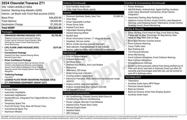 Turn every drive into something special with this Chevrolet Traverse from Salt Lake Valley Chevrolet! Designed for comfort, performance, and style, this vehicle comes fully equipped with modern technology and convenience features you’ll love. Plus, enjoy a $1,000 finance savings, already included in the sale price, when you finance through one of our trusted lending partners. If you’re shopping for used cars in Salt Lake City, or searching for the perfect SUV, truck, or sedan, this Chevrolet Traverse delivers the dependability and value you’re looking for. It’s the ideal match for your lifestyle - ready for everything from mountain adventures to city commutes. Visit Salt Lake Valley Chevrolet today and see why so many Utah drivers trust us for great deals on quality pre-owned vehicles. Explore our inventory online at www.slvchevy.com or call 801-969-8221 to schedule your test drive today! This impressive vehicle includes Enhanced Driving Package (Super Cruise, Bose Premium 10-Speaker Audio System Feature, Driver Attention Assist, Enhanced Automatic Parking Assist, and Rear Camera Mirror), Floor Liner Package (LPO) (1st & 2nd Row All-Weather Floor Liners (LPO) and 3rd Row All-Weather Floor Liner (LPO)), Preferred Equipment Group 2Z7, 3rd row seats: split-bench, 4-Way Manual Front Passenger Seat Adjuster, 4-Wheel Disc Brakes, 6 Speakers, 6-Speaker Audio System Feature, 8-Way Power Driver Seat Adjuster, ABS brakes, Air Conditioning, Alloy wheels, AM/FM radio: SiriusXM with 360L, Apple CarPlay/Android Auto, Auto High-beam Headlights, Automatic temperature control, Brake assist, Compass, Delay-off headlights, Driver 4-Way Power Lumbar Seat Adjuster, Driver door bin, Driver vanity mirror, Dual front impact airbags, Dual front side impact airbags, Electronic Stability Control, Emergency communication system, Exterior Parking Camera Rear, Four wheel independent suspension, Front anti-roll bar, Front Bucket Seats, Front Center Armrest, Front dual zone A/C, Front reading lights, Fully automatic headlights, Heated door mirrors, Heated front seats, Heated steering wheel, Illuminated entry, Low tire pressure warning, Navigation System, Occupant sensing airbag, Outside temperature display, Overhead airbag, Overhead console, Panic alarm, Passenger door bin, Passenger vanity mirror, Power door mirrors, Power driver seat, Power Liftgate, Power steering, Power windows, Premium Cloth Seat Trim, Radio data system, Radio: 17.7'' Diagonal Display, Rear air conditioning, Rear anti-roll bar, Rear reading lights, Rear window defroster, Rear window wiper, Remote keyless entry, Security system, SiriusXM w/360L, Speed control, Speed-sensing steering, Spoiler, Steering wheel mounted audio controls, Tachometer, TBD Axle Ratio, Telescoping steering wheel, Tilt steering wheel, Traction control, Trip computer, Turn signal indicator mirrors, Variably intermittent wipers, Voltmeter, and Wheels: 18'' High Gloss Black Painted Aluminum, offering everything you need for your next adventure.
