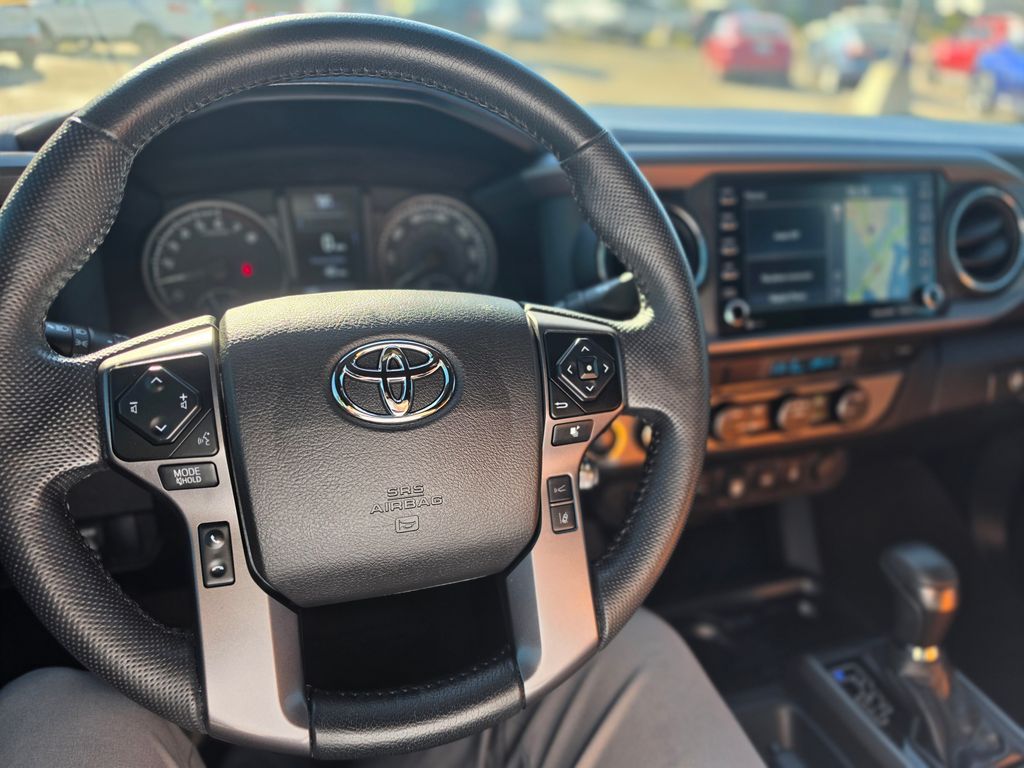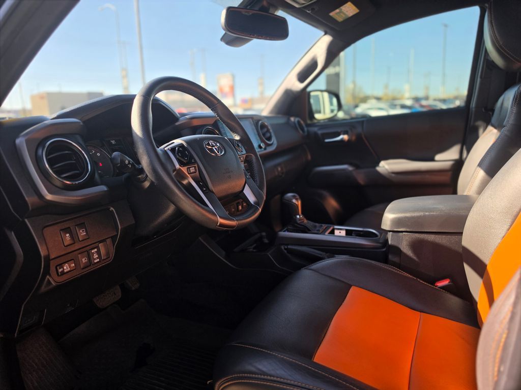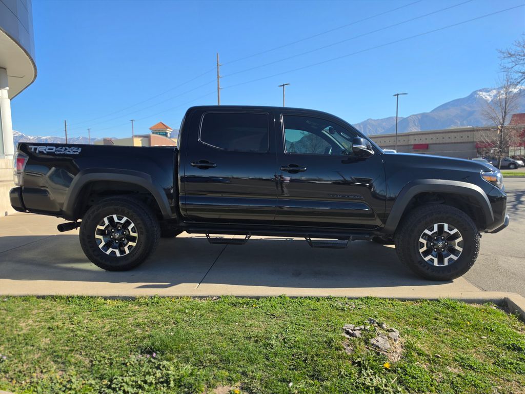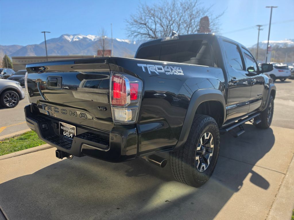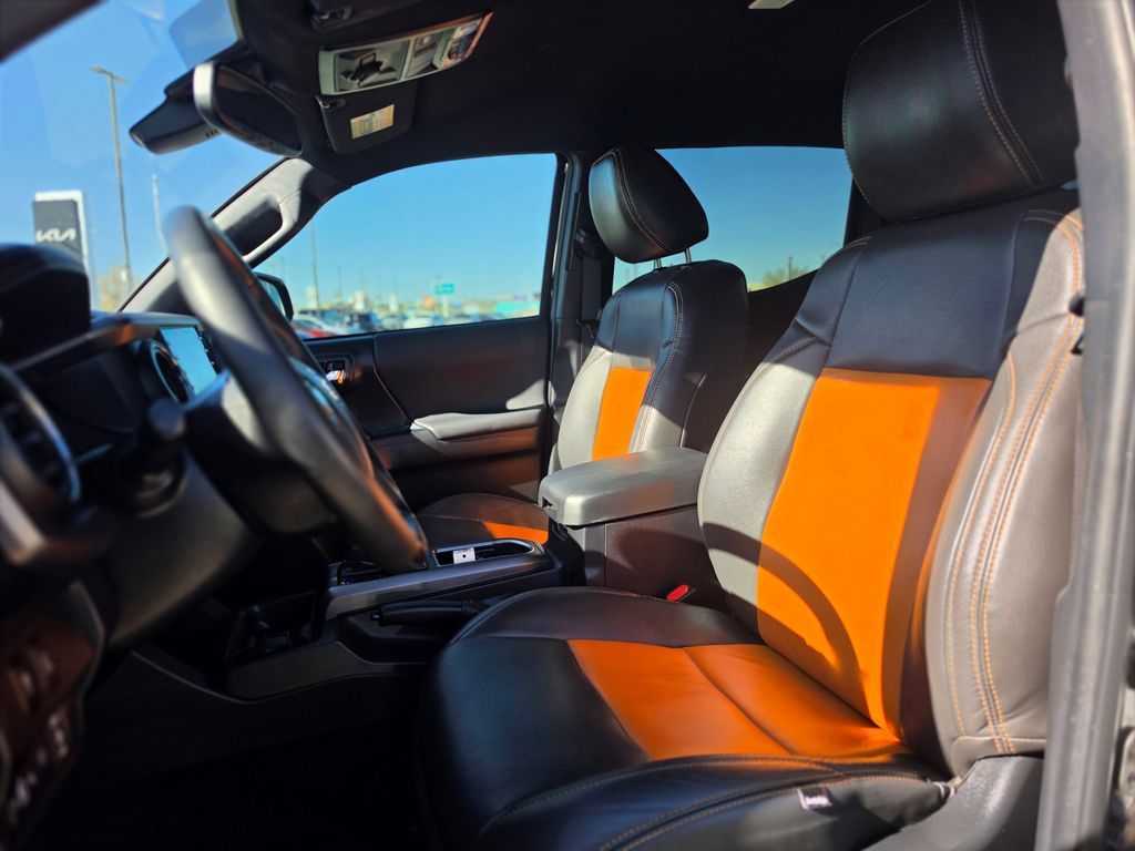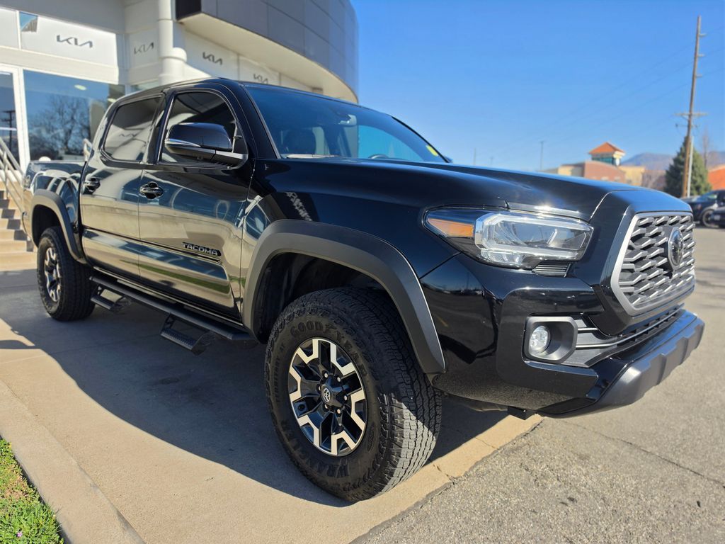 New Price! CARFAX One-Owner. Clean CARFAX. Black 2023 Toyota Tacoma TRD Off-Road V6 4WD 6-Speed Automatic 3.5L V6 4WD, 120V/400W Deck Mounted AC Power, 6 Speakers, ABS brakes, Air Conditioning, Alloy wheels, AM/FM radio: SiriusXM, Anti-whiplash front head restraints, Apple CarPlay/Android Auto, Auto High-beam Headlights, Auto-dimming Rear-View mirror, Auto-Dimming Rearview Mirror w/HomeLink, Automatic temperature control, Axle Ratio: 3.91, Black Overfenders, Blind Spot Monitor w/Rear Cross Traffic Alert, Brake assist, Bumpers: body-color, Driver door bin, Dual front impact airbags, Dual front side impact airbags, Electronic Stability Control, Emergency communication system: Safety Connect (1-year trial), Engine Immobilizer, Exterior Parking Camera Rear, Fabric Seat Trim, Front anti-roll bar, Front Bucket Seats, Front Center Armrest, Front Door Smart Key System w/Push Button Start, Front dual zone A/C, Front fog lights, Front reading lights, Front Seats, Front wheel independent suspension, Garage door transmitter: HomeLink, Heated door mirrors, Illuminated entry, Knee airbag, Leather Seat Trim, Leather Shift Knob, Low tire pressure warning, Multi Terrain Monitor w/Camera, Occupant sensing airbag, Outside temperature display, Overhead airbag, Overhead console, Panic alarm, Passenger door bin, Power door mirrors, Power driver seat, Power Sliding Rear Window w/Privacy Glass, Power steering, Power windows, Radio: Audio, Radio: Premium Audio w/Dynamic Navigation, Radio: Premium JBL Audio w/Dynamic Navigation, Rear Parking Assist Sonar, Rear step bumper, Remote keyless entry, Security system, Speed control, Speed-sensing steering, Split folding rear seat, Steering wheel mounted audio controls, Tachometer, Telescoping steering wheel, Tilt steering wheel, Traction control, Trip computer, Turn signal indicator mirrors, Variably intermittent wipers, Wheels: 16'' Machined Contrast Alloy, 4WD.