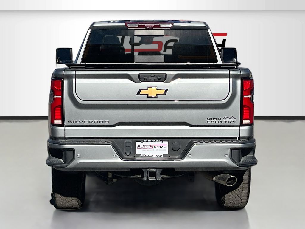 Explore the 2024 Chevrolet Silverado 2500HD High Country at AutoSavvy Las Vegas, where power meets luxury in a striking Sterling Gray Metallic finish. This robust 4WD Crew Cab is equipped with a commanding 6.6L V-8 engine, delivering a remarkable 401 horsepower. With only 18,180 miles, this Silverado offers the reliability of a nearly-new vehicle. Enjoy premium features like leather upholstery, a 15-inch multicolor head-up display, adaptive cruise control, and a cutting-edge Chevrolet Infotainment 3 Premium system with a 13.4-inch touchscreen, Apple CarPlay, and Android Auto. Safety is paramount with advanced features such as blind spot monitoring, lane departure warning, and automatic emergency braking. The current status of the title is branded, yet this Silverado has undergone rigorous inspection to ensure top-notch performance and reliability. At AutoSavvy Las Vegas, we provide transparency and assurance with every purchase. This Silverado is perfect for those who demand excellence in their ride, whether you're towing heavy loads or cruising the open road. Visit us today to experience the blend of power, technology, and comfort that sets the 2024 Chevrolet Silverado 2500HD High Country apart from the rest. Don't miss the opportunity to own this feature-rich truck, designed to elevate your driving experience.