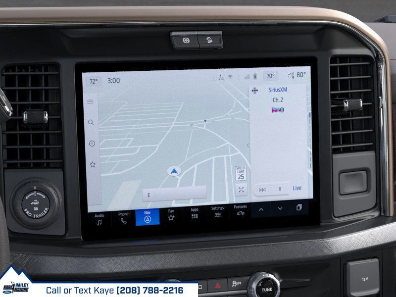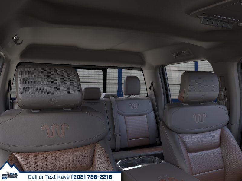 4WD, 14 Speakers, 4-Wheel Disc Brakes, ABS brakes, Adjustable pedals, Air Conditioning, Alloy wheels, AM/FM radio: SiriusXM with 360L, Auto High-beam Headlights, Auto tilt-away steering wheel, Auto-dimming Rear-View mirror, Automatic temperature control, Brake assist, Compass, Delay-off headlights, Driver door bin, Driver vanity mirror, Dual front impact airbags, Dual front side impact airbags, Electronic Stability Control, Electronic-Locking with 3.73 Axle Ratio, Emergency communication system: SYNC 4 911 Assist, Flow-Through Console, Ford Connectivity Package (1-Year Included), Front anti-roll bar, Front Bucket Seats, Front Center Armrest, Front dual zone A/C, Front fog lights, Front reading lights, Fully automatic headlights, Garage door transmitter, Heads-Up Display, Heated door mirrors, Heated front seats, Heated rear seats, Heated steering wheel, Illuminated entry, Internet access capable: 5G Modem - Ford Connectivity Package, Leather steering wheel, Low tire pressure warning, Memory seat, Navigation system: Connected Navigation, Outside temperature display, Overhead airbag, Overhead console, Panic alarm, Passenger door bin, Passenger vanity mirror, Pedal memory, Power door mirrors, Power driver seat, Power passenger seat, Power steering, Power windows, Radio: B&O Unleashed Sound System by Bang & Olufsen, Rain sensing wipers, Rear reading lights, Rear seat center armrest, Rear step bumper, Rear window defroster, Remote keyless entry, Security system, SiriusXM with 360L, Speed control, Split folding rear seat, Steering wheel memory, Steering wheel mounted A/C controls, Steering wheel mounted audio controls, SYNC 4 with Enhanced Voice Recognition, Tachometer, Telescoping steering wheel, Tilt steering wheel, Traction control, Trip computer, Turn signal indicator mirrors, Unique King Ranch Leather 40/Console/40 Seats, Variably intermittent wipers, Ventilated front seats, Wheels: 20'' Bright Machined Aluminum, 4WD.