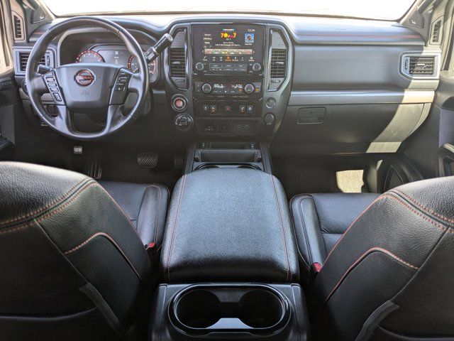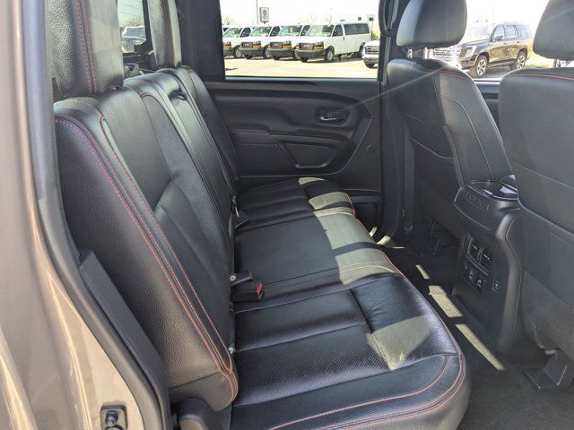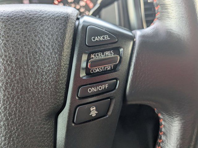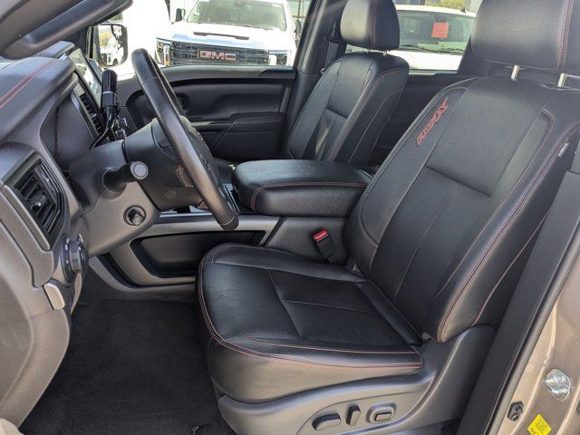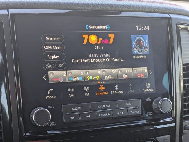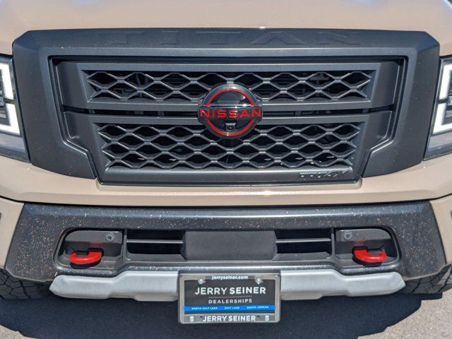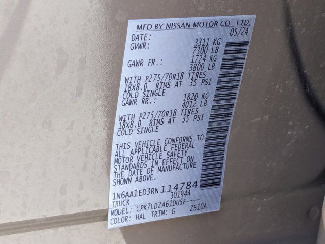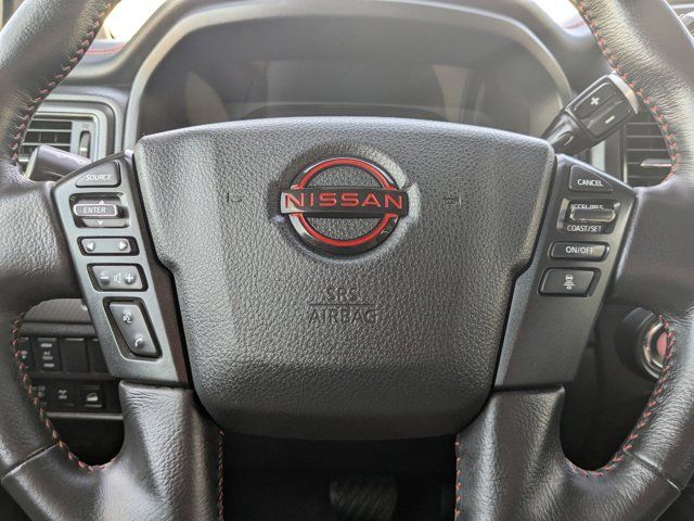 Navigation system: NissanConnect with Navigation and Services,PRO-4X Convenience Package,PRO-4X Utility Package,6 Speakers,AM/FM radio: SiriusXM,Radio data system,Radio: NissanConnect w/Navigation,Air Conditioning,Automatic temperature control,Front dual zone A/C,Rear window defroster,Heated Rear Seats,Power driver seat,Power steering,Power windows,Remote keyless entry,Steering wheel mounted audio controls,Auto-leveling suspension,Heated Tilt/Telescoping Steering Wheel,Speed-sensing steering,Traction control,4-Wheel Disc Brakes,ABS brakes,Dual front impact airbags,Dual front side impact airbags,Emergency communication system: NissanConnect Services,Front anti-roll bar,Front wheel independent suspension,Knee airbag,Low tire pressure warning,Occupant sensing airbag,Overhead airbag,Rear anti-roll bar,Remote Engine Start on Key Fob,Blind Spot Warning,Brake assist,Electronic Stability Control,Rear Parking Sensors,Auto High-beam Headlights,Delay-off headlights,Front fog lights,Fully automatic headlights,Panic alarm,Security system,Speed control,Bed Assist Grip,Driver Power Folding Auto Dimming Outside Mirrors,Heated door mirrors,Power door mirrors,PRO-4X Mud Flaps,PRO-4X Rugged Step Boards,Proximity Activation,Rear Bumper Step w/Electronic Tailgate Lock,Rear step bumper,Side Turn Signal Lamps on Mirror Housing,Apple CarPlay/Android Auto,Auto-dimming Rear-View mirror,Compass,Driver door bin,Driver vanity mirror,Front Captain's Seats,Front reading lights,Garage door transmitter: HomeLink,Illuminated entry,Intelligent Around View Monitor (I-AVM),Leather steering wheel,Outside temperature display,Overhead console,Passenger vanity mirror,PRO-4X Badged Floor Mats,PRO-4X Illuminated Kick Plate,Rear reading lights,Rear seat center armrest,Tachometer,Telescoping steering wheel,Tilt steering wheel,Trip computer,Voltmeter,4-Way Power Assist Seat,Cloth Seat Trim w/Vinyl Bolsters,Front Bucket Seats,Front Center Armrest,Heated Driver & Passenger Seat,Leather Seat Trim,Memory Driver Seat w/Auto Entry/Exit Feature,Rear Underseat Storage,Split folding rear seat,Passenger door bin,Alloy wheels,Wheels: 18 inch x 8 inch Painted Dark Finish Alloy,Rain sensing wipers,Speed-Sensitive Wipers,Variably intermittent wipers,3.692 Axle Ratio,[K04] PRO-4X CONVENIENCE PACKAGE -inc: Proximity Activation LED signature headlamps and cargo lamp Trailer Light Check Function On Key Fob 4-Way Power Assist Seat Memory Driver Seat w/Auto Entry/Exit Feature Heated Driver & Passenger Seat Heated Rear Seats Remote Engine Start on Key Fob Side Turn Signal Lamps on Mirror Housing Heated Tilt/Telescoping Steering Wheel memory Driver Power Folding Auto Dimming Outside Mirrors memory and reverse auto tilt Puddle Lamps Intelligent Around View Monitor (I-AVM) Moving Object Detection (MOD),[F96] BED ASSIST GRIP,BLACK CLOTH SEAT TRIM W/VINYL BOLSTERS -inc: PRO-4X embroidery,[K13] PRO-4X BADGED FLOOR MATS -inc: Rear Underseat Storage,[F94] PRO-4X RUGGED STEP BOARDS,BAJA STORM,[K94] OFF ROAD PROTECTION PACKAGE -inc: crew cab interior door scuff protection off-road adventure kit adventure medic kit and Pro-4X high-wall floor liners,[N93] PRO-4X ILLUMINATED KICK PLATE,BLACK LEATHER SEAT TRIM -inc: unique contrast stitching and PRO-4X embroidery,[K03] PRO-4X UTILITY PACKAGE -inc: 120V Outlet in Bed Utilitrack System w/2 Tie-Down Cleats LED Under Rail Bed Lighting LED Tailgate Area Illumination Front & Rear Parking Sensors,[K11] REAR BUMPER STEP W/ELECTRONIC TAILGATE LOCK,[B93] PRO-4X MUD FLAPS,Four Wheel Drive,Locking/Limited Slip Differential,Tow Hitch,Air Suspension,Power Steering,Air Suspension,Air Suspension,ABS,4-Wheel Disc Brakes,Brake Assist,Locking/Limited Slip Differential,Brake Actuated Limited Slip Differential,Aluminum Wheels,Tires - Front All-Terrain,Tires - Rear All-Terrain,Bed Liner,Conventional Spare Tire,Tow Hooks,Heated Mirrors,Power Mirror(s),Rear Defrost,Sliding Rear Window,Privacy Glass,Intermittent Wipers,Variable Speed Intermittent Wipers,Rain Sensing Wipers,Power Door Locks,Automatic Highbeams,Daytime Running Lights,Automatic Headlights,LED Headlights,Fog Lamps,AM/FM Stereo,Navigation System,Satellite Radio,MP3 Capability,Bluetooth Connection,Telematics,Auxiliary Audio Input,HD Radio,WiFi Hotspot,Smart Device Integration,Driver Restriction Features,Requires Subscription,MP3 Capability,Steering Wheel Audio Controls,Auxiliary Audio Input,Bluetooth Connection,Power Driver Seat,Bucket Seats,Driver Adjustable Lumbar,Pass-Through Rear Seat,Rear Bench Seat,Adjustable Steering Wheel,Trip Computer,Power Windows,WiFi Hotspot,Leather Steering Wheel,Keyless Entry,Power Door Locks,Keyless Entry,Power Door Locks,Keyless Start,Universal Garage Door Opener,Cruise Control,Adaptive Cruise Control,Climate Control,Multi-Zone A/C,A/C,Cloth Seats,Vinyl Seats,Auto-Dimming Rearview Mirror,Driver Vanity Mirror,Passenger Vanity Mirror,Driver Illuminated Vanity Mirror,Passenger Illuminated Visor Mirror,Floor Mats,Keyless Start,Smart Device Integration,Navigation System,Power Windows,Sliding Rear Window,Power Door Locks,Trip Computer,Security System,Immobilizer,Traction Control,Stability Control,Traction Control,Front Side Air Bag,Rear Parking Aid,Blind Spot Monitor,Cross-Traffic Alert,Rear Collision Mitigation,Lane Departure Warning,Front Collision Mitigation,Driver Monitoring,Telematics,Requires Subscription,Tire Pressure Monitor,Driver Air Bag,Passenger Air Bag,Front Head Air Bag,Rear Head Air Bag,Passenger Air Bag Sensor,Knee Air Bag,Child Safety Locks,Driver Restriction Features,Back-Up Camera
