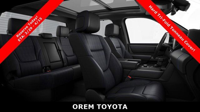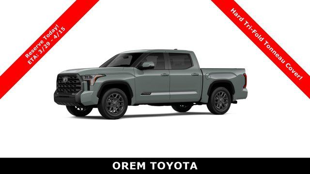 Toyota's terrific safety technologies include blind-spot monitoring, front/rear auto braking, adaptive cruise control, lane-keeping assistance, a panoramic view monitor, a digital rearview mirror, and more. Intense and intelligent, our Tundra Platinum helps drivers work hard and play harder! Save this Page and Call for Availability. We Know You Will Enjoy Your Orem Toyota Test Drive Towards Ownership! May not represent actual vehicle. (Options, colors, trim and body style may vary) Excludes tax, tag, title and registration. Purchase offer does not include $499 Doc fee. Vehicle stock images represent trim level only.TRI-FOLD TONNEAU COVER (TMS), TOW TECH PACKAGE W/WIRELESS TRAILER CAMERA -inc: Rear Camera, STAINLESS STEEL DOOR EDGE GUARDS (TMS), POWER RUNNING BOARDS -inc: power deck step and step cover, PHONE CABLES - SMART USB (TMS), NON-SKID SPRAY-ON BED LINER (TMS), MULTIMEDIA SCREEN PROTECTOR - GLASS (TMS), HEAD UP DISPLAY (HUD), BALL MOUNT (TMS), ALL WEATHER FLOOR LINERS (TMS). This Toyota Tundra 4WD has a dependable Twin Turbo Regular Unleaded V-6 3.4 L/210 engine powering this Automatic transmission.*Experience a Fully-Loaded Toyota Tundra 4WD Platinum *Vehicle Stability Control (VSC) Electronic Stability Control (ESC), Turn-By-Turn Navigation Directions, Trip Computer, Transmission: 10-Speed Electronic Controlled Auto -inc: intelligence (ECT-i), sequential shift mode, uphill/downhill shift logic and TOW/HAUL modes, Transmission w/Driver Selectable Mode and Oil Cooler, Trailer Wiring Harness, Tires: 265/60R20, Tire Pressure Monitor System (TPMS) Low Tire Pressure Warning, Streaming Audio, Steel Spare Wheel, Speed Sensitive Rain Detecting Variable Intermittent Wipers w/Heated Wiper Park, Solid Axle Rear Suspension w/Coil Springs, Smart Device Remote Engine Start, Smart Device Integration, Single Stainless Steel Exhaust, Side Impact Beams, Seats w/Leatherette Back Material, Safety Connect -inc: up to 10-year trial, Remote Connect w/1-year trial and Service Connect w/up to 10-year trial, See toyota.com/connected-services for details, Right Side Camera, Remote Releases -Inc: Mechanical Fuel.*Stop By Today *For a must-own Toyota Tundra 4WD come see us at Orem Toyota, 1400 S. Sandhill Rd, Orem, UT 84058. Just minutes away!