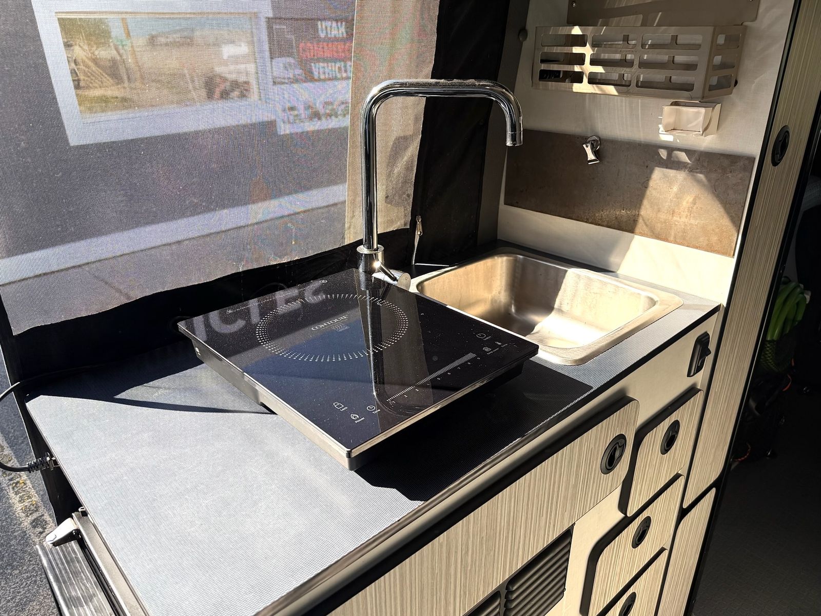 ✔ Kitchen Setup – Sink portable cooktop for easy meals anywhere