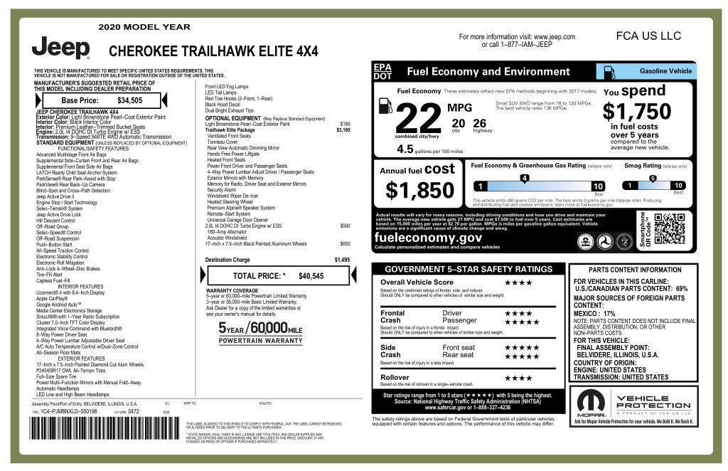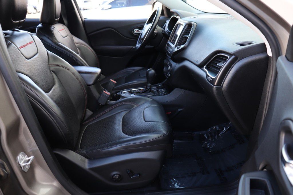 ABSOLUTELY Gorgeous Car Dressed in Rare and Hard to find 'Light Brownstone Peal' Exterior on 'Black Leather' Interior'! SUPER Clean- check out ALL 84 Pictures! This Jeep is the Top of the Line 'Cherokee Trailhead Elite' with 2.0L Turbo w/ ESS Engine, Automatic Transmission, Four Wheel Drive (4x4) and Trailhawk Elite Package. Clean Title and Carfax- no accident. HARD Loaded and Highly Optioned- Original MSRP $40,545. Recently Serviced and Thoroughly inspected- not a single problem. Non-smoker car. No pets. OPTIONS; Power Heated and Cooled Seats, Heated Steering Wheel, Tonneau Cover, Hands Free Power Liftgate, Reverse/ Back Up Camera, Premium Alpine Speaker and more. Comes with Original Owners Manuals, Original MSRP Window Sticker and Qualifies for Extended Warranty up to an additional 60 Months/ 100k Miles.
