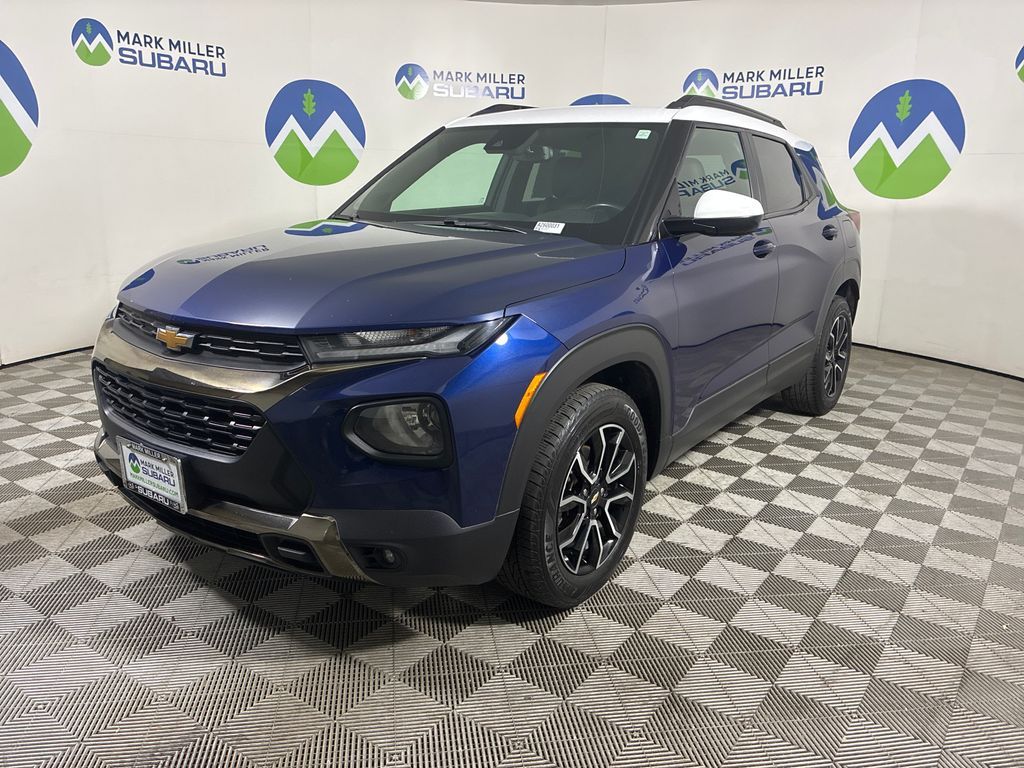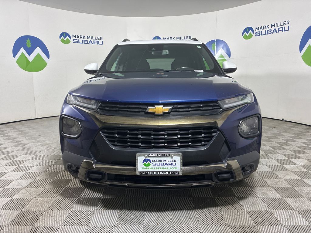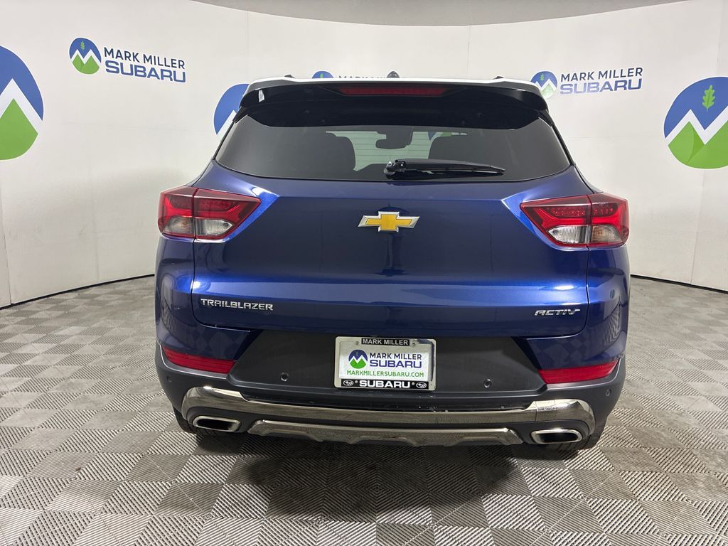 This 2023 Blue Glow Metallic Chevrolet TrailBlazer ACTIV FWD is well equipped and includes these features and benefits: Convenience Package (1 Type-A & 1 Type-C USB Charging-Only Ports, 120-Volt Power Outlet, 8'' Diagonal Color Touchscreen Display, Cabin Humidity Sensor, Driver & Front Passenger Illuminated Vanity Mirrors, Inside Rear-View Auto-Dimming Mirror, and Single-Zone Auto Climate Control Air Conditioning), Driver Confidence Package (Lane Change Alert w/Side Blind Zone Alert, Rear Cross Traffic Alert, and Rear Park Assist), Preferred Equipment Group 1SA (Heated Steering Wheel), 2-Way Adjustable Front Head Restraints, 2-Way Power Driver Lumbar Seat Adjuster, 4-Way Manual Front Passenger Seat Adjuster, 4-Wheel Disc Brakes, 5.45 Axle Ratio, 6 Speakers, 6-Speaker Audio System Feature, 7'' Diagonal Color Touchscreen, 8-Way Power Driver Seat Adjuster, ABS brakes, Air Conditioning, Alloy wheels, AM/FM radio: SiriusXM, Auto High-beam Headlights, Brake assist, Bumpers: body-color, Compass, Delay-off headlights, Driver door bin, Driver vanity mirror, Dual front impact airbags, Dual front side impact airbags, Electronic Stability Control, Emergency communication system: OnStar and Chevrolet connected services capable, Exterior Parking Camera Rear, Flat-Folding Front Passenger Seatback, Front anti-roll bar, Front Bucket Seats, Front Center Armrest, Front fog lights, Front License Plate Bracket, Front reading lights, Front wheel independent suspension, Fully automatic headlights, Heated door mirrors, Heated Driver & Front Passenger Seats, Heated front seats, Heated steering wheel, Illuminated entry, Knee airbag, Leather Shift Knob, Leather steering wheel, Leatherette Seat Trim, Low tire pressure warning, Not Equipped w/Heated Steering Wheel, Not Equipped w/Rear Park Assist, Occupant sensing airbag, Overhead airbag, Overhead console, Panic alarm, Passenger door bin, Passenger vanity mirror, Power door mirrors, Power driver seat, Power steering, Power windows, Radio data system, Radio: Chevrolet Infotainment 3 System, Rear seat center armrest, Rear side impact airbag, Rear window defroster, Rear window wiper, Remote keyless entry, Ride & Handling Suspension, Security system, SiriusXM Radio, Speed control, Split folding rear seat, Spoiler, Steering wheel mounted audio controls, Summit White Two-Tone Roof, Tachometer, Telescoping steering wheel, Tilt steering wheel, Traction control, Trip computer, Variably intermittent wipers, Wheels: 17'' High Gloss Black Machined Aluminum, and Wireless Apple CarPlay/Android Auto.