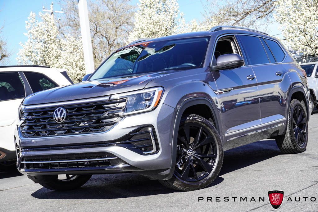 AWD! Meet the 2025 Volkswagen Atlas 2.0T SEL Premium R-Line, built for big adventures around Salt Lake City and across Utah! This one-owner SUV delivers a turbocharged 269-hp engine, smooth AWD capability, and seating for the whole crew. Whether you're heading to the slopes or cruising I-15, enjoy luxury touches like leather seating, massaging front seats, a panoramic sunroof, and a premium Harman Kardon sound system. Stay connected with a large touchscreen, wireless Apple CarPlay, and advanced safety tech for total confidence. Available now at Prestman Auto, known for competitive pricing and a wide selection, this Branded Title Atlas is ready for your next Utah adventure!