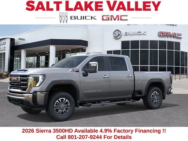 2026 GMC Sierra 3500HD SLT 4D Crew Cab Sterling Metallic Duramax 6.6L V8 Turbodiesel 4WD --- Please note that the final selling price does not include tax, tag, title, documentation fees, dealer-installed options, or pricing adjustments due to market demand. Financing through GM Financial is required for all discounts to be applied. Special finance offers may not be combined with some factory incentives. While we strive for accuracy, errors may occur, so please verify all information with a customer service representative. For the most accurate pricing, call us at (801) 265-1511 or visit our dealership in person. Prices and payments are subject to change based on manufacturer incentives. ... Sale Price may include dealer discount, $1000 - Buick & GMC Consumer Cash Program