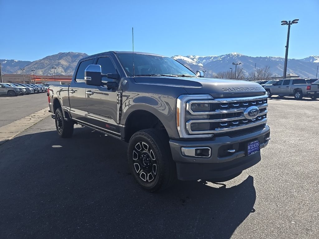 IT'S THAT EASY! Gray 2023 Ford F-350SD Platinum 4WD 10-Speed Automatic Power Stroke 6.7L V8 DI 32V OHV Turbodiesel CARFAX CLEAN, LOCAL TRADE, Clean Title, 4WD, 5th Wheel/Gooseneck Hitch Prep Package, FX4 Off-Road Package, Hill Descent Control, Off-Road Specifically Tuned Shock Absorbers, Order Code 713A, Tough Bed Spray-In Bedliner, Twin Panel Power Moonroof, Unique FX4 Off-Road Box Decal.