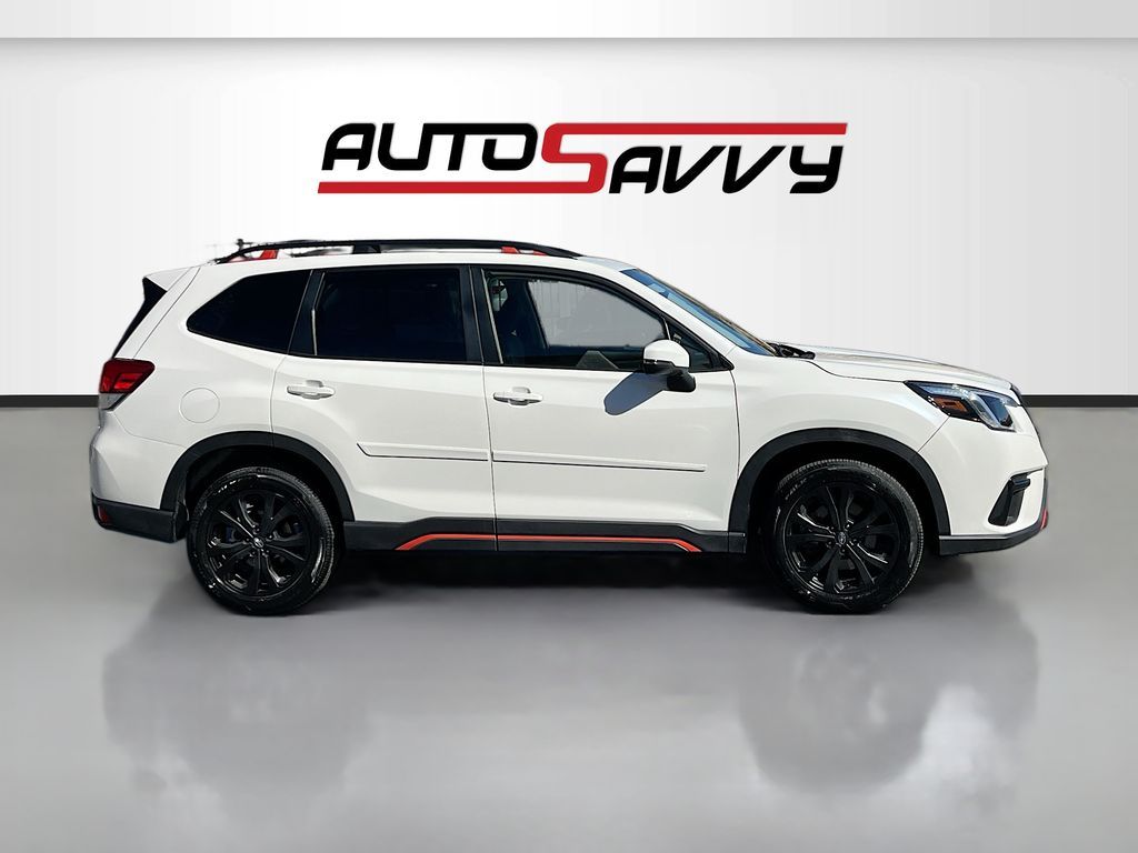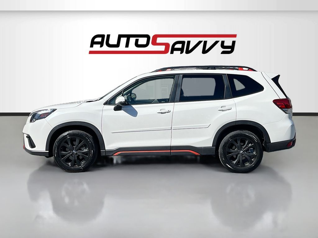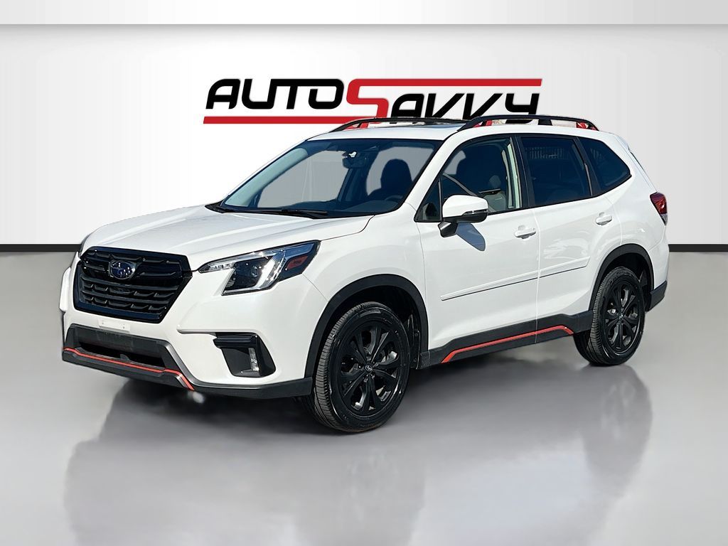 Discover the 2023 Subaru Forester Sport, now available at AutoSavvy Draper. This versatile sport utility vehicle, finished in a striking Crystal White Pearl, combines style, performance, and functionality. With only 13,644 miles, it features a robust 2.5L H-4 engine with 182 horsepower, paired with a Lineartronic CVT for a smooth and efficient drive, achieving up to 33 MPG on the highway. The Forester Sport stands out with its premium cloth upholstery, a panoramic sunroof, and 18-inch black aluminum wheels. Stay connected with Apple CarPlay and Android Auto, and enjoy the convenience of a power rear gate and keyless entry. Safety is paramount with features like adaptive cruise control, blind spot monitoring, and a rearview camera, ensuring a secure ride for every journey. This 2023 Subaru Forester carries a branded title, highlighting AutoSavvy Draper's commitment to offering high-quality vehicles at exceptional value. Despite its branded status, this SUV has undergone a rigorous inspection to meet top performance and reliability standards. As a Savvy Certified vehicle, it includes a 4-month/4,500-mile warranty, providing you with additional peace of mind. Visit AutoSavvy Draper today to experience the perfect blend of innovation, safety, and efficiency in the Subaru Forester Sport. Join our community of savvy buyers who trust AutoSavvy for their automotive needs and enjoy an unparalleled buying experience where quality meets value.