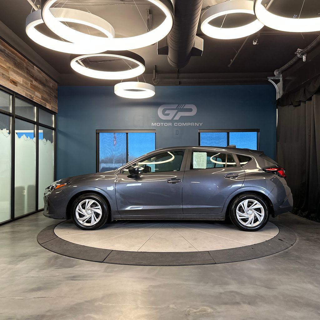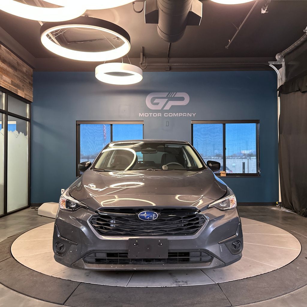One owner, no accident history, very low miles, AWD! Base trim with front dual zone A/C, backup camera, steering wheel mounted audio controls, automatic high-beam headlights, and more! 2025 Subaru Impreza Base AWD with branded title from hail. CVT Lineartronic 2.0L DOHC