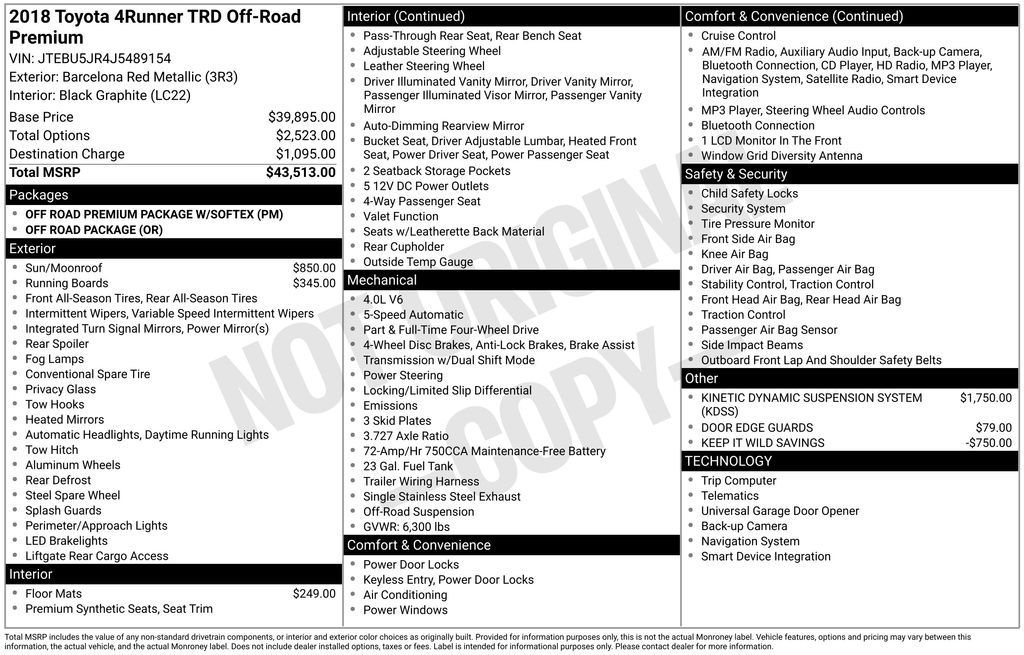 2018 Toyota 4Runner TRD Off-Road Premium
