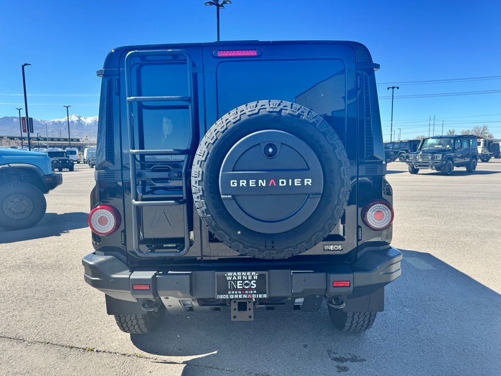 Inky Black 2026 INEOS Grenadier Black Edition 4WD 8-Speed Automatic 3.0L I6 18'' Black Alloy Wheels, ABS brakes, Access Ladder, Carpet Floor Mats, Carpet Flooring, Class III 2'' NAS Tow Hitch and Electrics, Compass, Electronic Stability Control, Heat Reflective Privacy Glass, Heated door mirrors, Heated Front Bucket Seats, Illuminated entry, Leather Seat Trim, Locking Wheel Nuts, Low tire pressure warning, Navigation System, Premium Sound System, Remote keyless entry, Safari Windows, Spare Wheel Lockable Storage Box, Traction control.