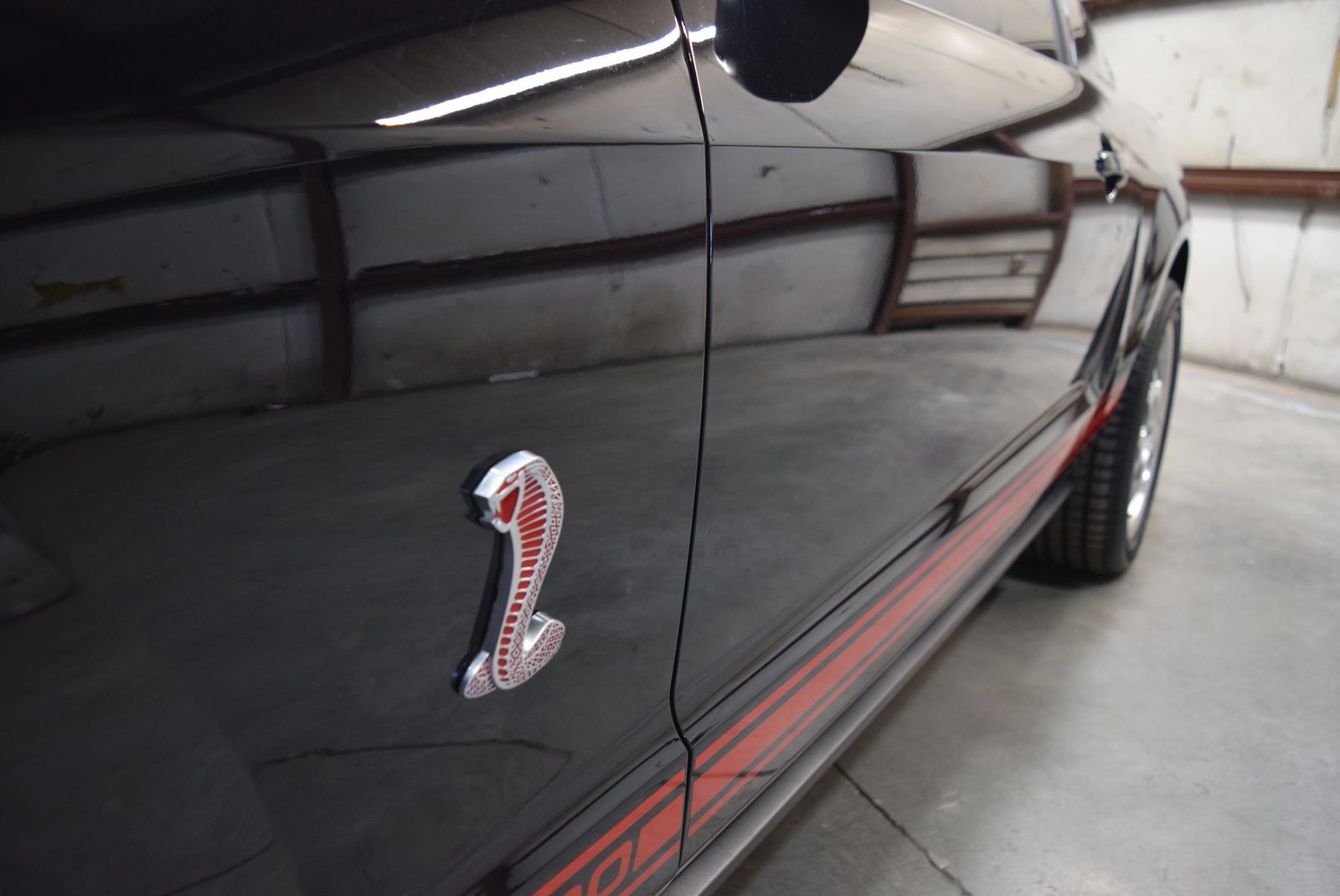 This is the one collectors wait for. An ultra-low mile 2007 Shelby GT500 finished in Black with factory Red Racing Stripes, often referred to as the “Red Stripe Edition.” With just 1,299 original miles, this car is as close to new as you’ll find—an absolute time capsule.