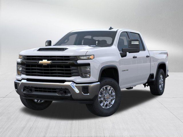 GVWR 11 550 LBS. (5239 KG) WITH SINGLE REAR WHEELS (STD),WHEELS 18 (45.7 CM) MACHINED ALUMINUM WITH SILVER PAINTED ACCENTS 6-SPOKE,SEAT ADJUSTER DRIVER 10-WAY POWER INCLUDING LUMBAR,BUMPER FRONT CHROME,TRANSMISSION 10-SPEED AUTOMATIC (STD),ENGINE 6.6L V8 WITH DIRECT INJECTION AND VARIABLE VALVE TIMING GASOLINE (401 hp [299 kW] @ 5200 rpm 464 lb-ft of torque [629 N-m] @ 4000 rpm) (STD),SNOW PLOW PREP/CAMPER PACKAGE includes (KW5) 220-amp alternator includes increased front GAWR on Heavy Duty models (NZZ) skid plates (transfer case and oil pan) pass through dash grommet hole and roof emergency light provisions.,CHEVYTEC SPRAY-ON BEDLINER Black (does not include spray-on liner on tailgate due to Black composite inner panel),POWER OUTLET INTERIOR 120-VOLT (400 watts shared with (KC9) bed mounted power outlet),WT CONVENIENCE PACKAGE includes (QT5) EZ Lift power lock and release tailgate (AKO) tinted windows (C49) rear-window defogger (DBG) power trailer mirrors with heated upper glass and manual extending/folding,REAR AXLE 3.73 RATIO (STD),Tow Hitch,Keyless Start,Locking/Limited Slip Differential,Four Wheel Drive,Tow Hooks,Power Steering,ABS,4-Wheel Disc Brakes,Tires - Front All-Terrain,Tires - Rear All-Terrain,Conventional Spare Tire,Daytime Running Lights,Automatic Highbeams,AM/FM Stereo,MP3 Capability,Bluetooth Connection,Auxiliary Audio Input,Smart Device Integration,Bluetooth Connection,Bluetooth Connection,Smart Device Integration,WiFi Hotspot,Split Bench Seat,Vinyl Seats,Pass-Through Rear Seat,Rear Bench Seat,Floor Mats,Adjustable Steering Wheel,Power Windows,Power Door Locks,Keyless Entry,Power Door Locks,Cruise Control,Power Outlet,MP3 Capability,Auxiliary Audio Input,A/C,Front Collision Mitigation,Front Collision Warning,Front Collision Mitigation,Traction Control,Stability Control,Daytime Running Lights,Driver Air Bag,Passenger Air Bag,Front Side Air Bag,Front Head Air Bag,Rear Head Air Bag,Passenger Air Bag Sensor,Telematics,Requires Subscription,Telematics,Navigation from Telematics,Requires Subscription,Back-Up Camera,Lane Departure Warning,Front Collision Warning,Driver Restriction Features,Tire Pressure Monitor