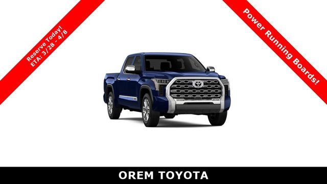 More Toyota tech safeguards your busy days with front/rear automatic braking, a digital rearview mirror, adaptive cruise control, a panoramic view monitor, blind-spot monitoring, lane-keeping assistance, and more. Intense and intelligent, our Tundra 1794 Edition is one of the country's top trucks! Save this Page and Call for Availability. We Know You Will Enjoy Your Orem Toyota Test Drive Towards Ownership! May not represent actual vehicle. (Options, colors, trim and body style may vary) Excludes tax, tag, title and registration. Purchase offer does not include $499 Doc fee. Vehicle stock images represent trim level only.POWER RUNNING BOARDS -inc: power deck step and step cover, HEAD UP DISPLAY (HUD), CHROME PLATED POWER FOLDING OUTSIDE MIRRORS -inc: Blind Spot Monitor, Panoramic View Back Monitor, Multi-Terrain Back Monitor, CHROME FRONT BUMPER LETTERS (TMS), 1794 GRADE PACKAGE, Wheels: 20 Machined Finish Alloy, Vehicle Stability Control (VSC) Electronic Stability Control (ESC), Turn-By-Turn Navigation Directions, Trip Computer, Transmission: 10-Speed Electronic Controlled Auto -inc: intelligence (ECT-i), sequential shift mode, uphill/downhill shift logic and TOW/HAUL modes. This Toyota Tundra 4WD has a powerful Twin Turbo Regular Unleaded V-6 3.4 L/210 engine powering this Automatic transmission.*Experience a Fully-Loaded Toyota Tundra 4WD 1794 Edition *Trailer Wiring Harness, Tires: 265/60R20, Tire Pressure Monitor System (TPMS) Low Tire Pressure Warning, Streaming Audio, Steel Spare Wheel, Speed Sensitive Rain Detecting Variable Intermittent Wipers w/Heated Wiper Park, Solid Axle Rear Suspension w/Coil Springs, Smart Device Remote Engine Start, Smart Device Integration, Single Stainless Steel Exhaust, Side Impact Beams, Seats w/Leatherette Back Material, Safety Connect -inc: up to 10-year trial, Remote Connect w/1-year trial and Service Connect w/up to 10-year trial, See toyota.com/connected-services for details, Right Side Camera, Remote Releases -Inc: Mechanical Fuel, Remote Keyless Entry w/Integrated Key Transmitter, Illuminated Entry and Panic Button, Regular Composite Box Style, Redundant Digital Speedometer, Rear Cupholder, Rear Cross-Traffic Alert (RCTA).*Visit Us Today *Come in for a quick visit at Orem Toyota, 1400 S. Sandhill Rd, Orem, UT 84058 to claim your Toyota Tundra 4WD!
