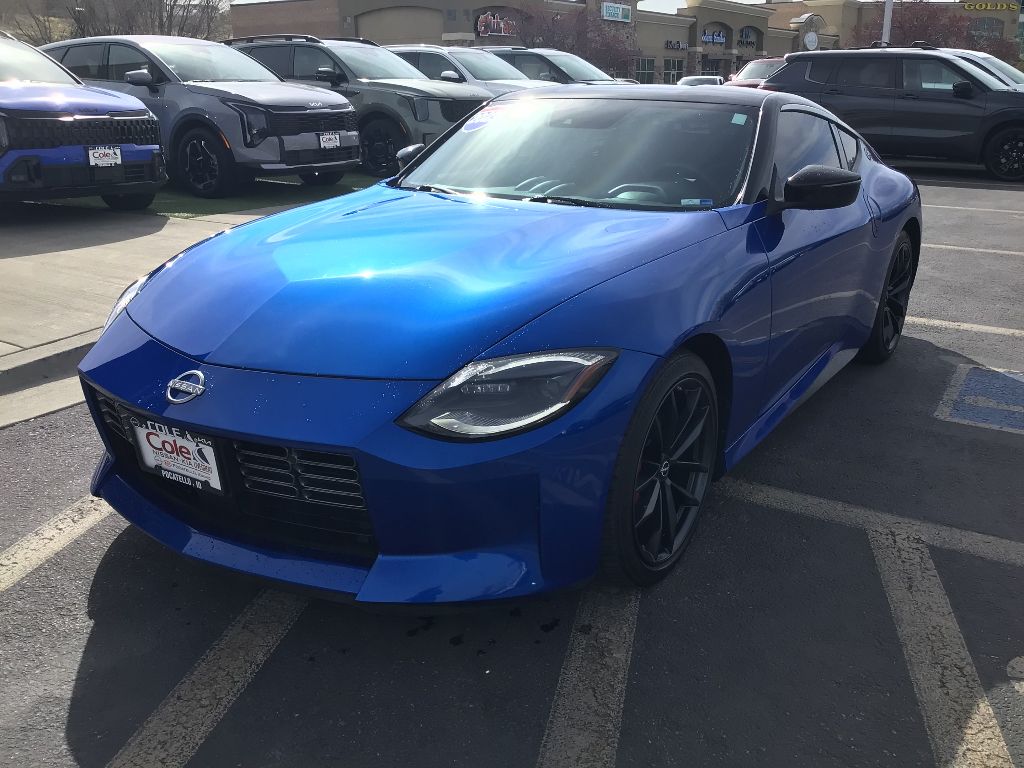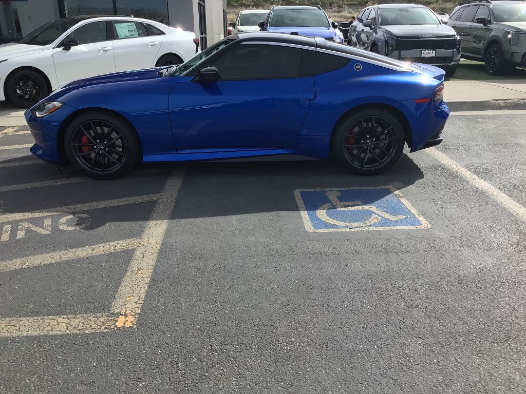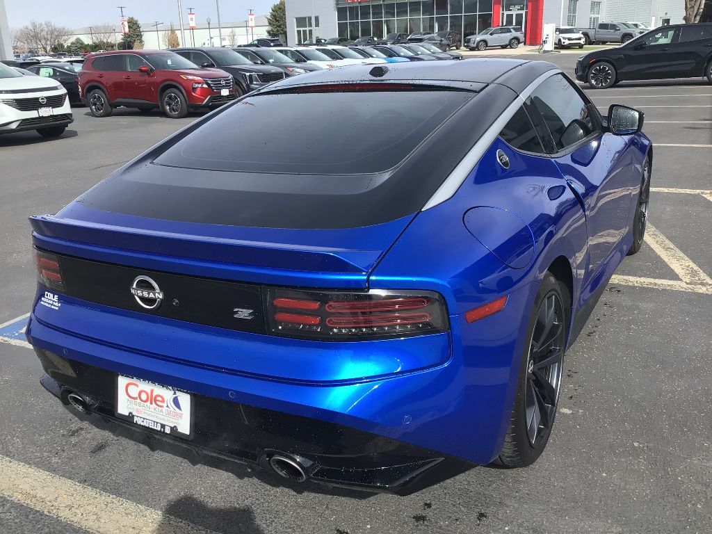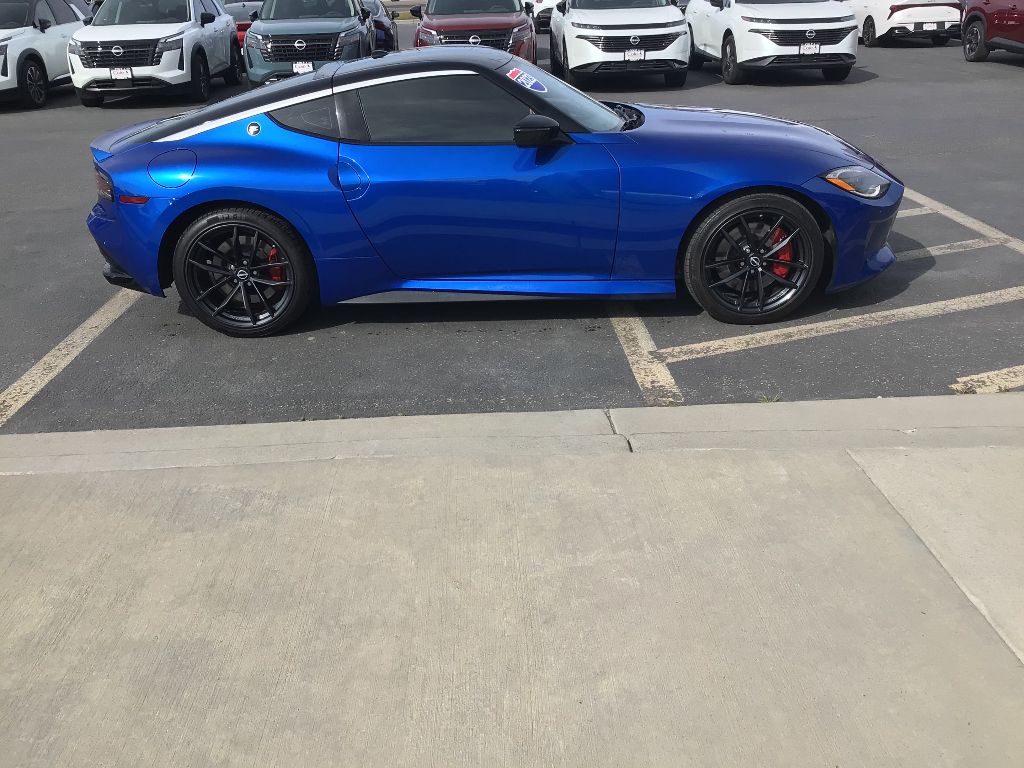 Special Paint - Seiran Blue/super Black,Floor Mat Package,Apple CarPlay/Android Auto smart device wireless mirroring,Automatic Emergency Braking (AEB) forward collision mitigation,Automatic Emergency Braking with Pedestrian Detection,Wi-Fi Hotspot mobile hotspot internet access,RearView Monitor rear mounted camera,Intelligent Cruise Control (ICC),Brake assist system,Cruise control with steering wheel mounted controls,NissanConnect Navigation integrated navigation system with voice activation,Heated driver and front passenger seats,Simulated suede and leather front seat upholstery,Primary monitor touchscreen,Lane Departure Warning (LDW),Rear Cross Traffic Alert (RCTA) collision warning,Driver seat power reclining and fore/aft control,VR 3L V-6 gasoline direct injection, DOHC, CVTCS variable valve control, twin turbo, premium unleaded, engine with 400HP,VR 3L V-6 DOHC,Intelligent Key with hands-free access and push button start,Push-button,Wireless audio streaming,Gauge cluster display size: 12.30,Blind Spot Warning (BSW),Full gauge cluster screen,High Beam Assist (HBA) auto high-beam headlights,Immobilizer,Bose speakers,Active noise cancellation,NissanConnect Services vehicle integrated emergency SOS system,Bluetooth handsfree wireless device connectivity,External memory control,Digital/analog instrumentation display,Configurable instrumentation gauges,Black rear bumper insert,Electronic stability control system,Hill Start Assist (HSA),Automatic climate control,Front and rear parking sensors,LED daytime running lights,LED brake lights,Leather steering wheel,Sport ride suspension,Mobile app access,Heated driver and passenger side door mirrors,Driver selectable steering effort,Manual tilting steering wheel,Manual telescopic steering wheel,19 x 9.5-inch front and 19 x 10-inch rear black RAYS forged aluminum wheels,P255/40WR19 summer performance BSW front tires and P275/35WR19 summer performance BSW rear tires,6 airbags,Driver front impact airbag,V6; Twin Turbo; 3.0 Liter,Automatic; 9-Spd,RWD,Blind-Spot Warning,Hill Start Assist,Traction Control,Vehicle Dynamic Control,ABS (4-Wheel),Alarm System,Keyless Entry,Push Button Start,Air Conditioning,Power Windows,Power Door Locks,Intelligent Cruise Control,Remote Trunk Release,Power Steering,Tilt & Telescoping Wheel,AM/FM Stereo,Bose Premium Sound,SiriusXM Satellite,Navigation System,Bluetooth Wireless,NissanConnect,F&R Parking Sensors,Backup Camera,Dual Air Bags,Side Air Bags,Head Curtain Air Bags,Lane Departure Warning System,Heated Seats,Dual Power Seats,Leather,Daytime Running Lights,LED Headlamps,Rear Spoiler,Premium Wheels 19"