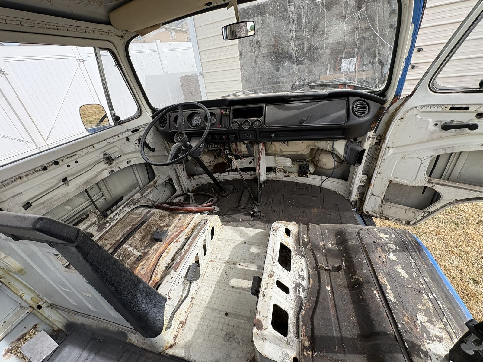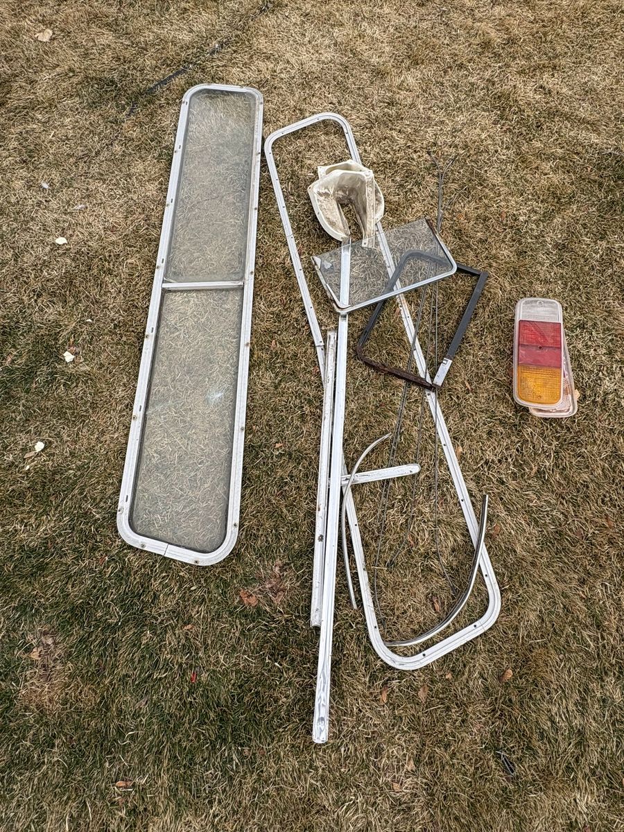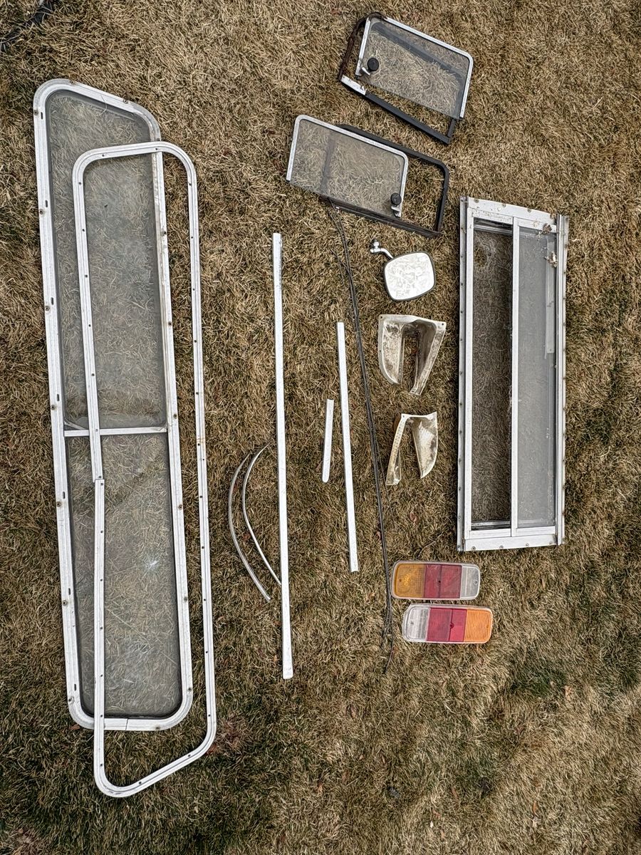 All original glass, one cracked see pictures. Original steering wheel and column, dashboard and gages, transmission and gear shift.