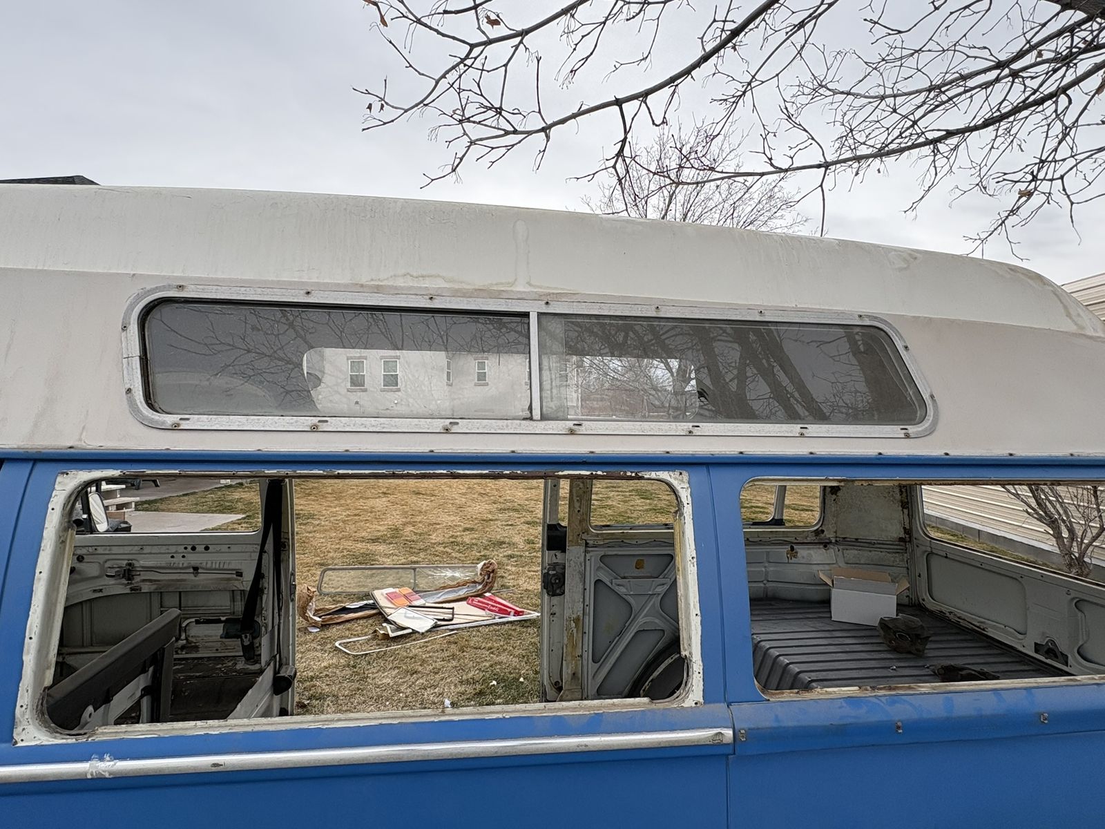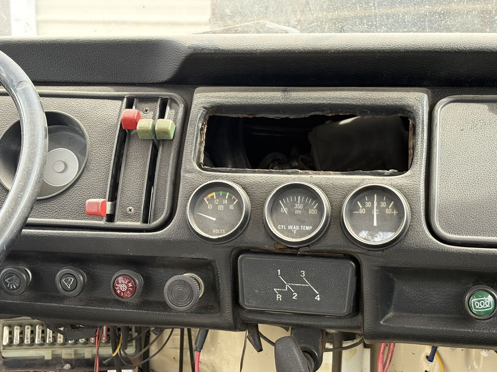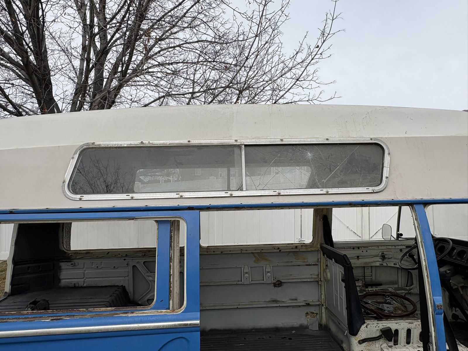 All original glass, one cracked see pictures. Original steering wheel and column, dashboard and gages, transmission and gear shift.