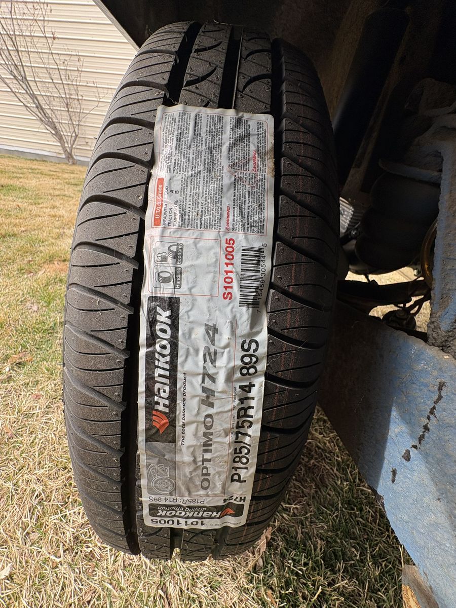 Hankook Optimo H724 tires P185/75R/14 X5 new,never driven on. Original rims and hubcaps.