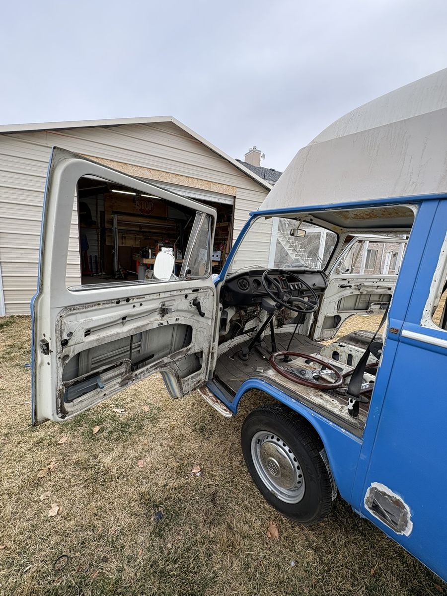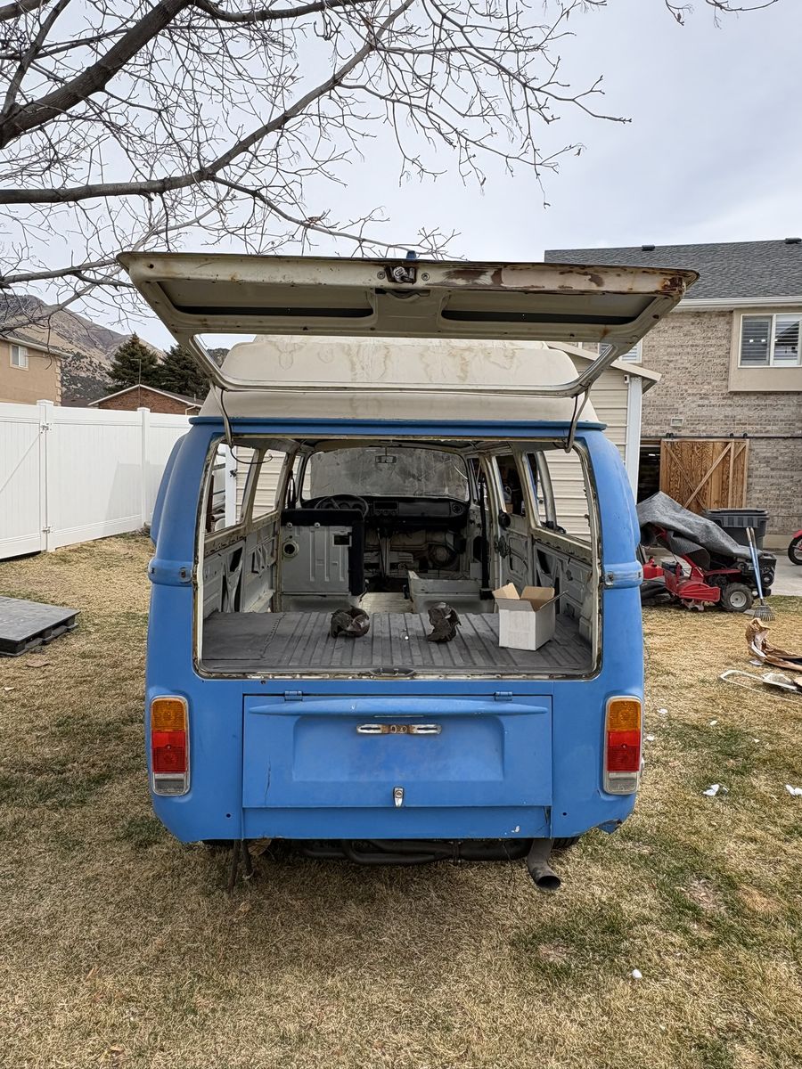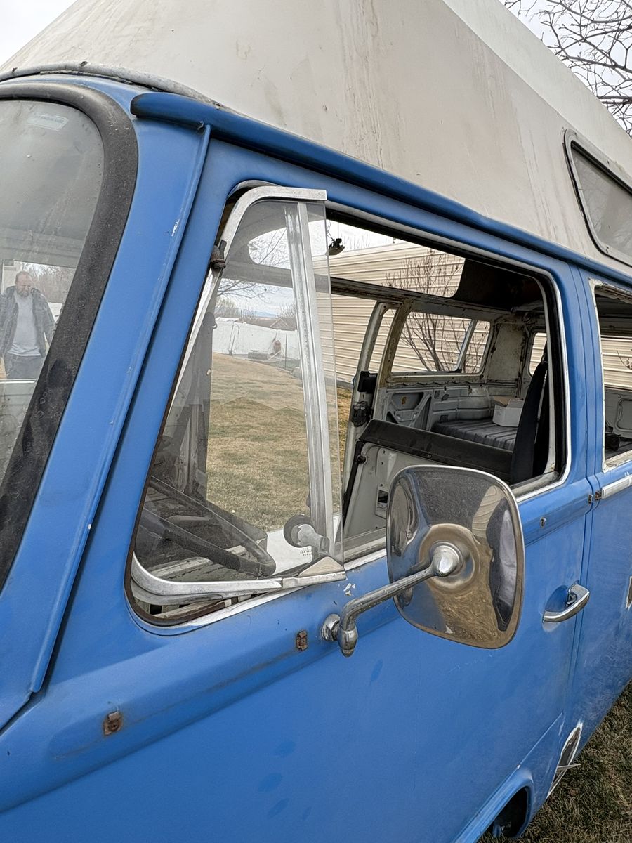 1972 VW Safari Custom Camper Van. Odometer reads 03551, possibly original miles but unknown. Purchased in California. Original paint with minimal rust and body damage. Title in hand.