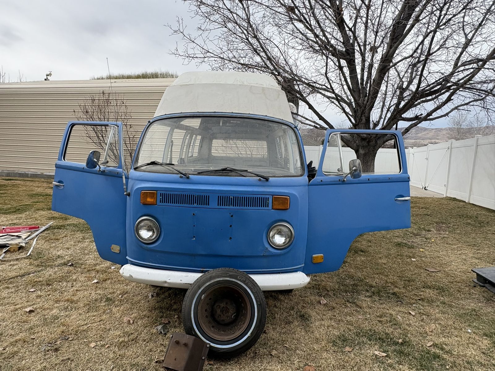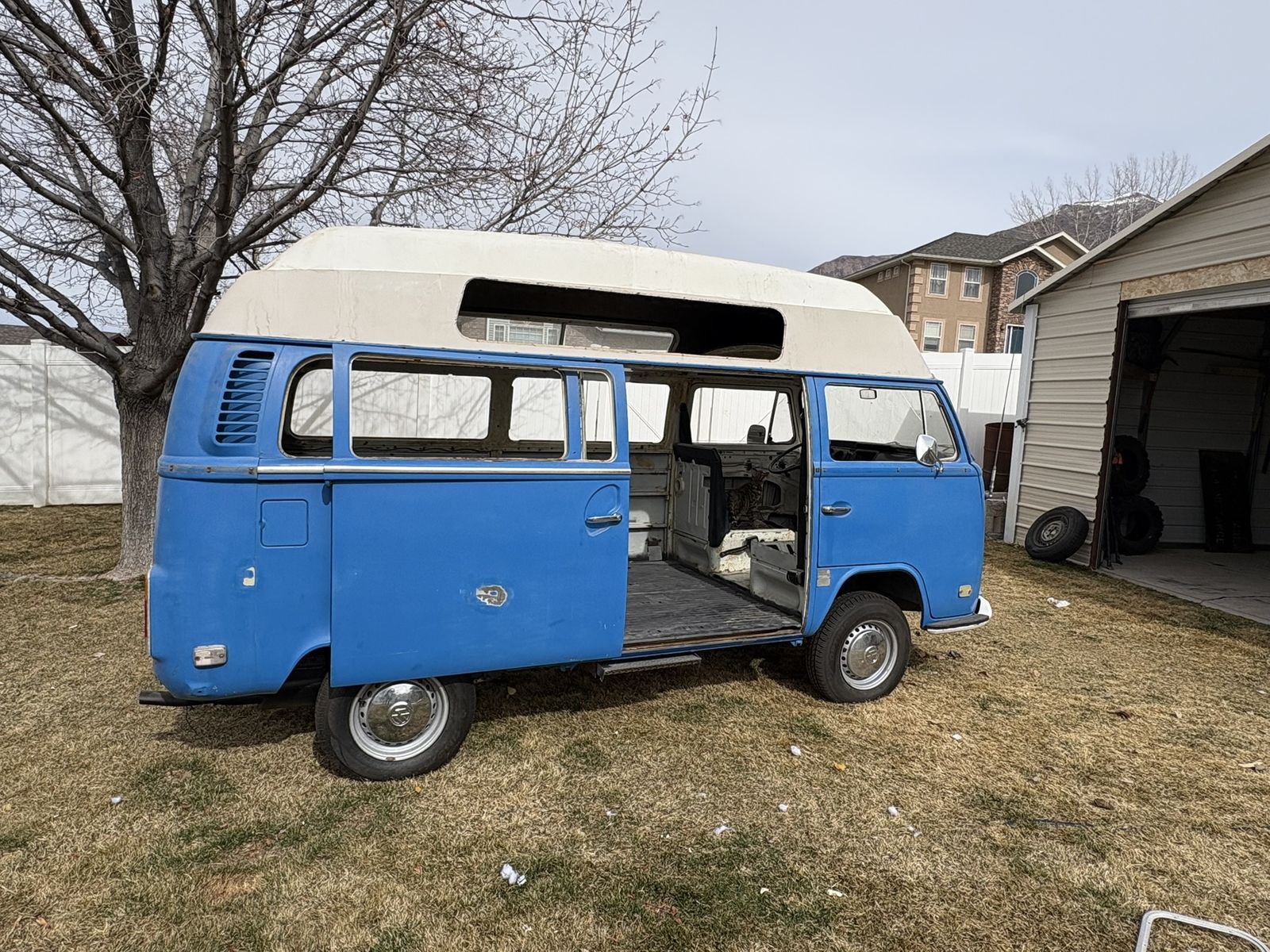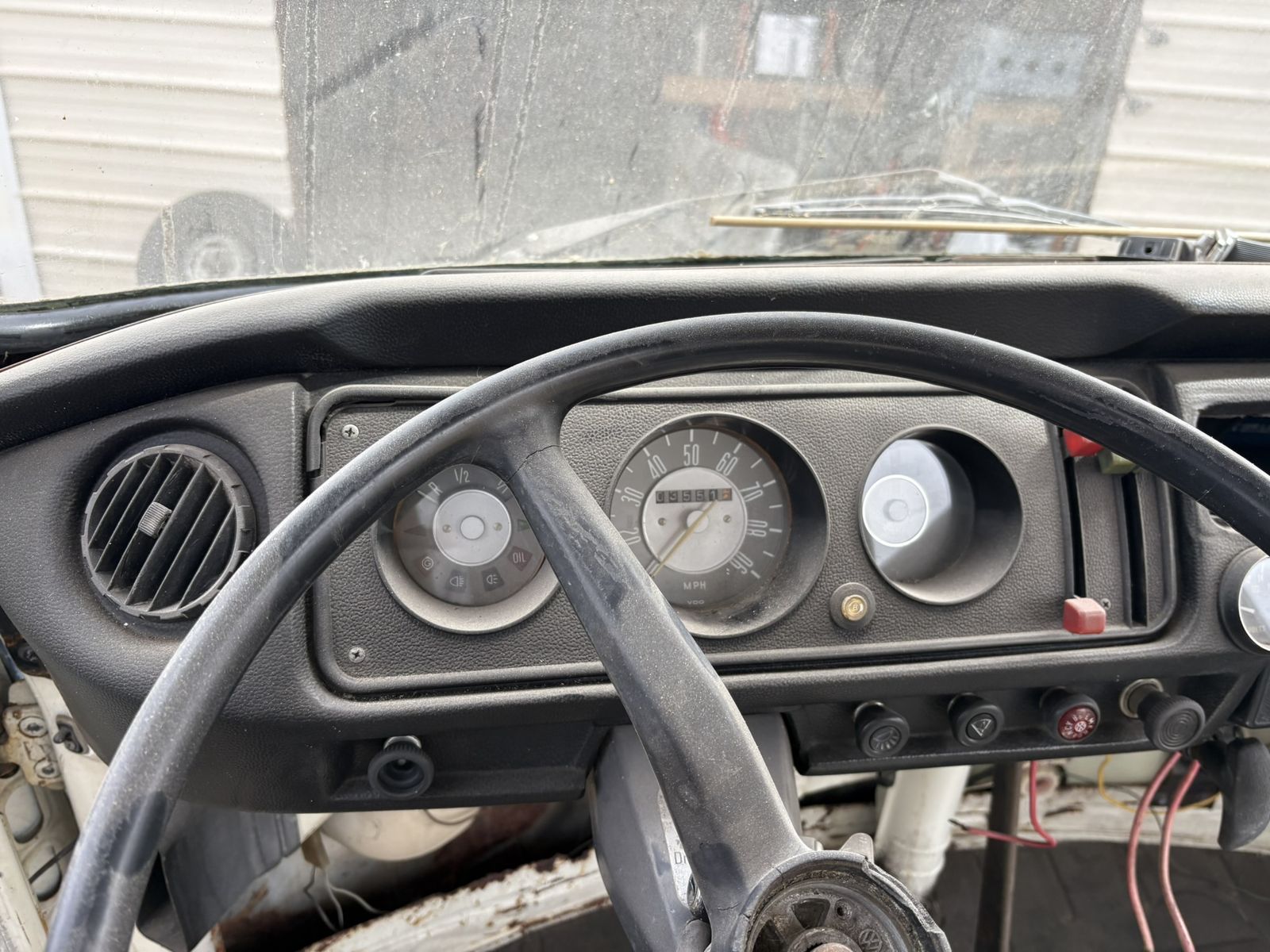 1972 VW Safari Custom Camper Van. Odometer reads 03551, possibly original miles but unknown. Purchased in California. Original paint with minimal rust and body damage. Title in hand.