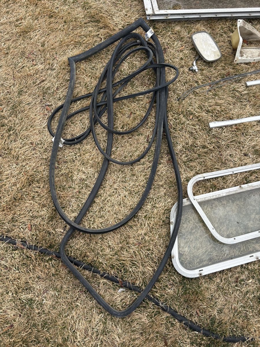 New uninstalled ignition with 2 keys, tail light covers , black rear bumper, 2 replacement steering wheels (and original), new side mirrors, door panels, window gaskets (unsure if correct for model).