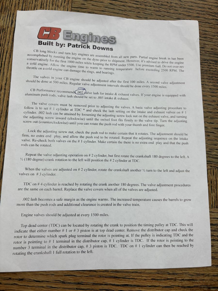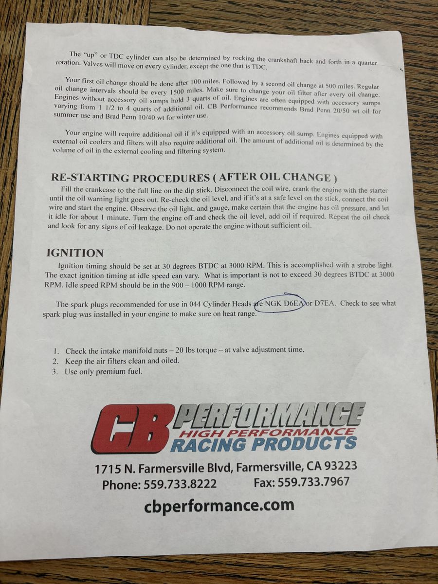 2021 New 1904 cc or 1776 cc motor by CB High Performance Race Products. Farmersville, CA. Dyno chart indicates 104 HP, otherwise never started. Dual carburetor. All diagnostic data in pictures.