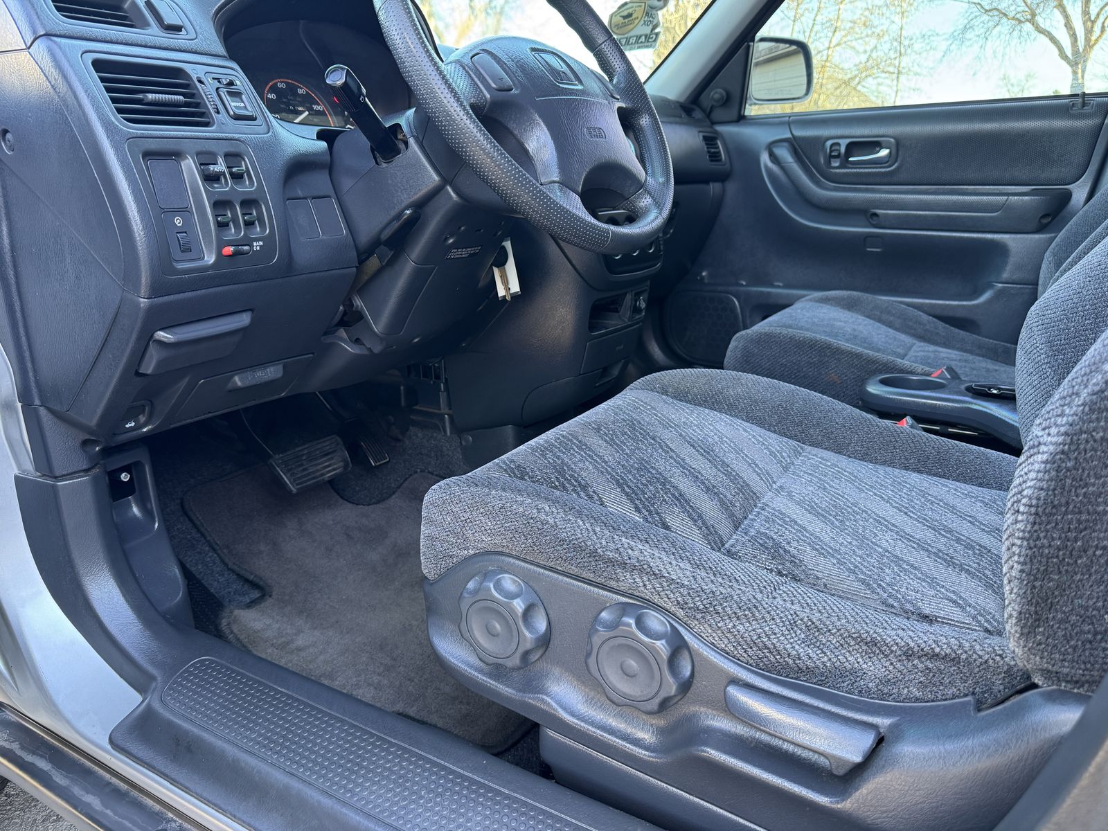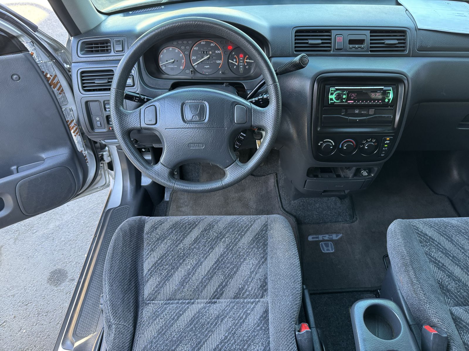 On the inside you will be pleasantly surprised at how a vehicle of this age, can have such a clean interior. The physical condition of a vehicle usually speaks for the mechanical condition as well. And in this case, that plays very true. The grey cloth seats are pristine. Gray carpet and OEM carpet floor mats font and rear are super clean. NON-smoker, no pet odors. Upgraded Pioneer radio with Bluetooth and other modern audio features. Also, upgraded door speakers all around (Sosche) with added tweeters up front and wired for subs in the trunk. Significantly better audio than stock. Heat and A/C work good. EX trim with power everything. Power door locks, power windows, power side mirror adjust and more. Cruise control, power steering etc.