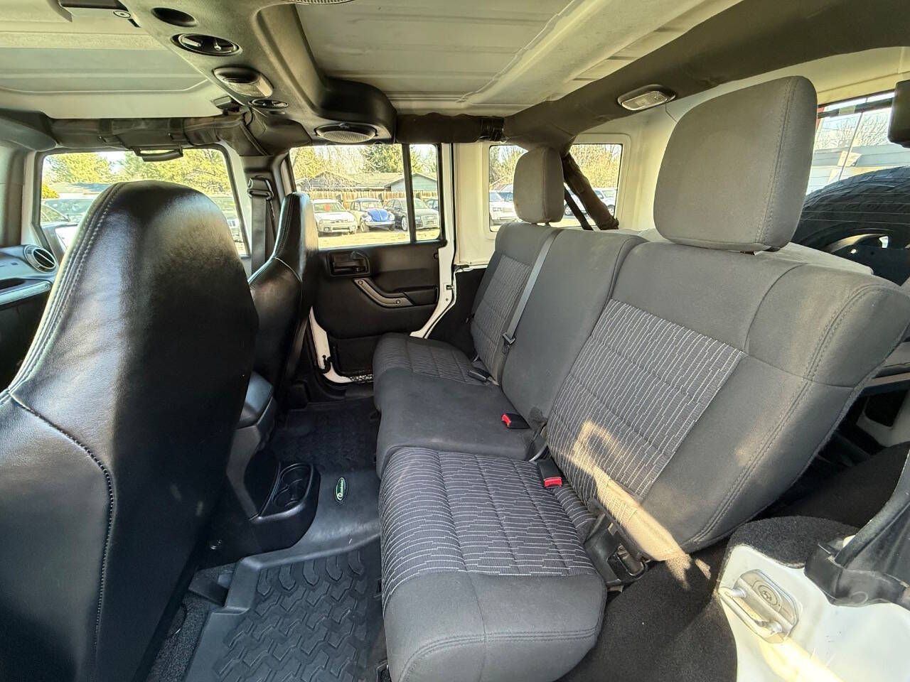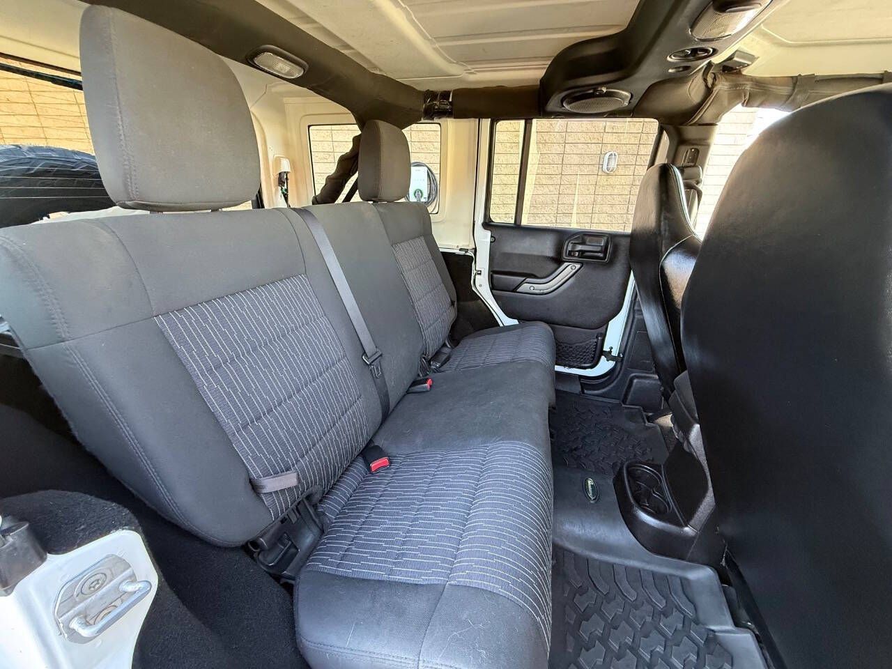The 2012 Wrangler Unlimited Sport also boasts a timeless and rugged exterior design, featuring the iconic seven-slot grille and round headlights. Its four-door configuration offers easy access for passengers, while the removable top and doors allow you to fully experience the thrilling open-air driving experience.