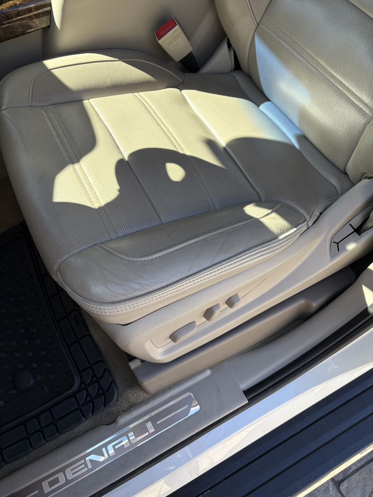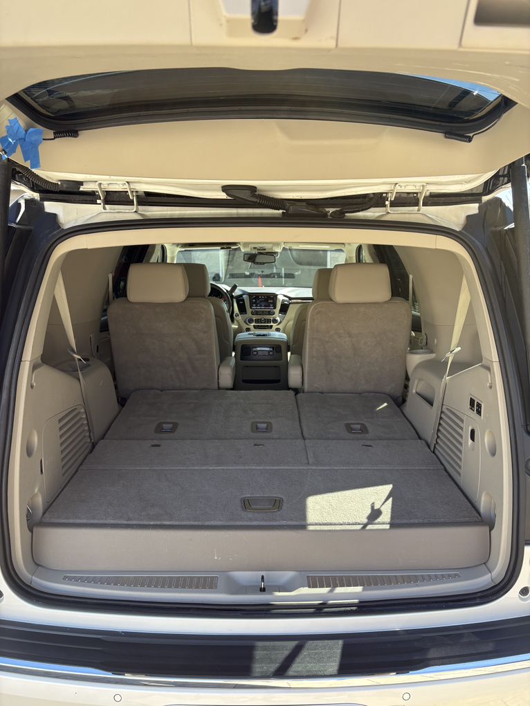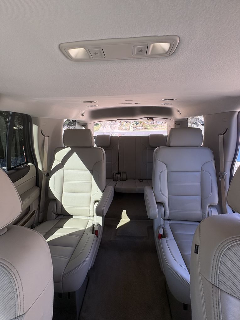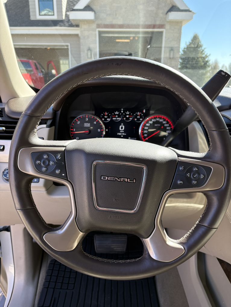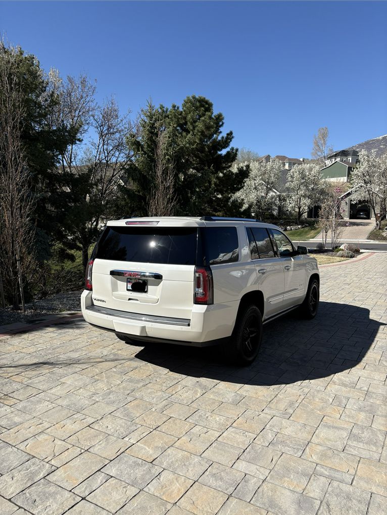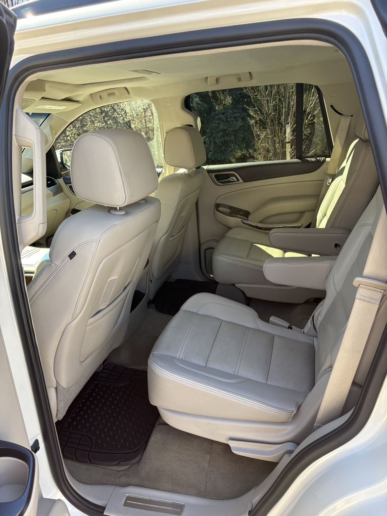 Diamond white, Denali 6.2 liter V8 with 8 speed Automatic Transmission. Automatic 3rd row seating.