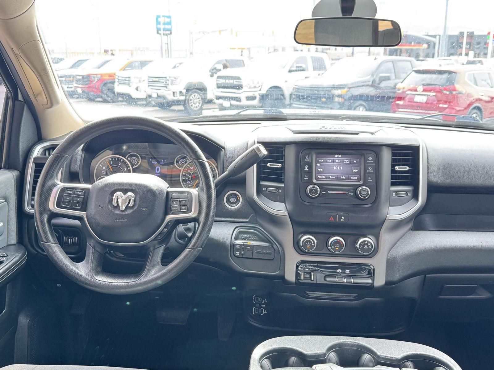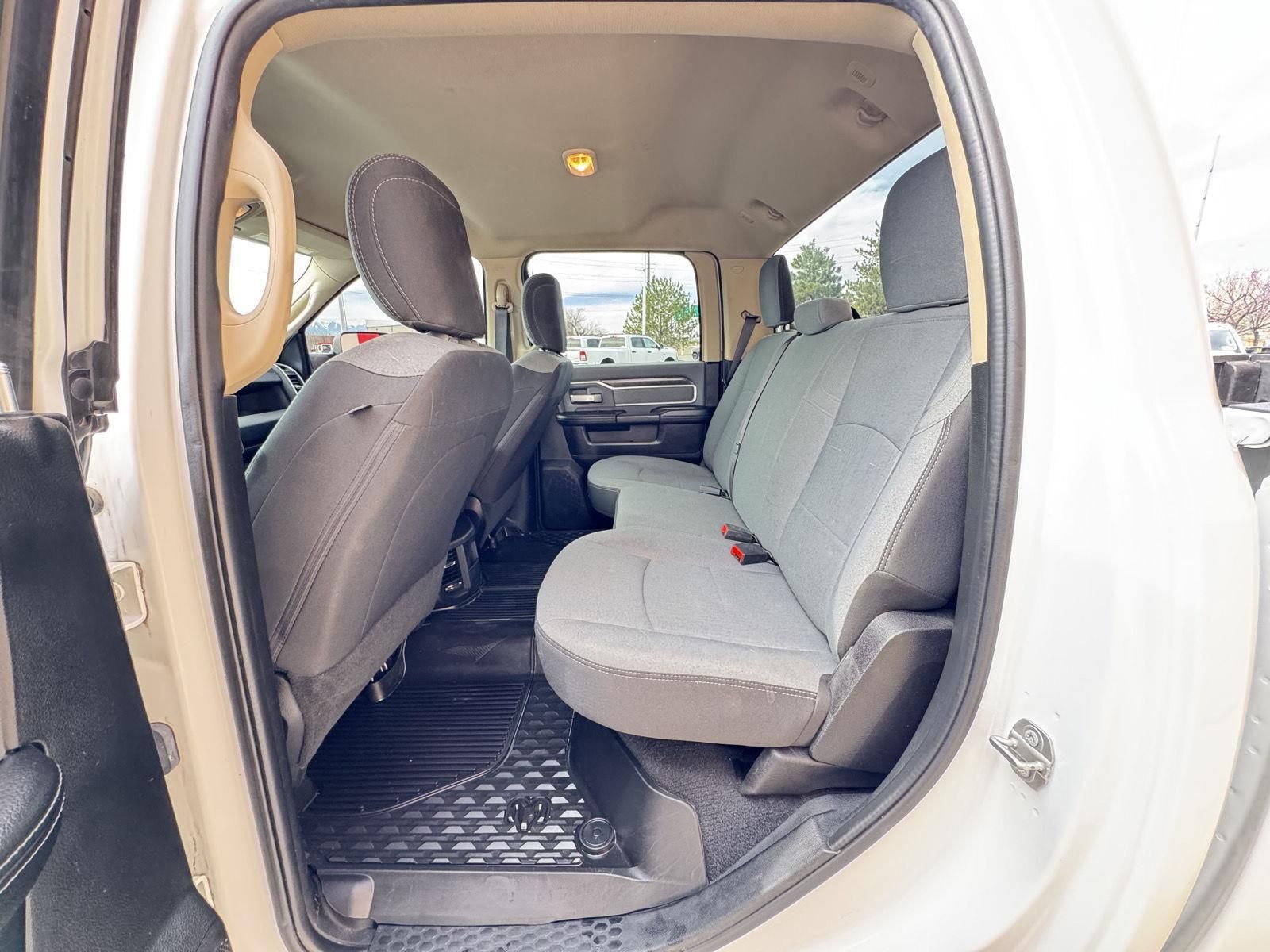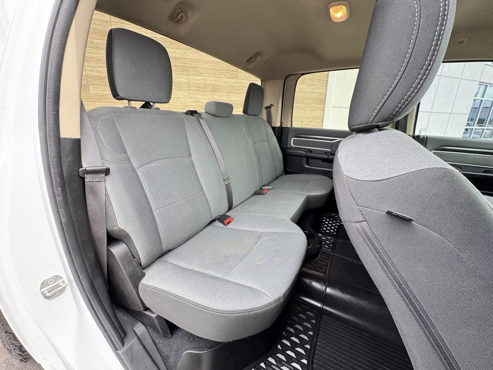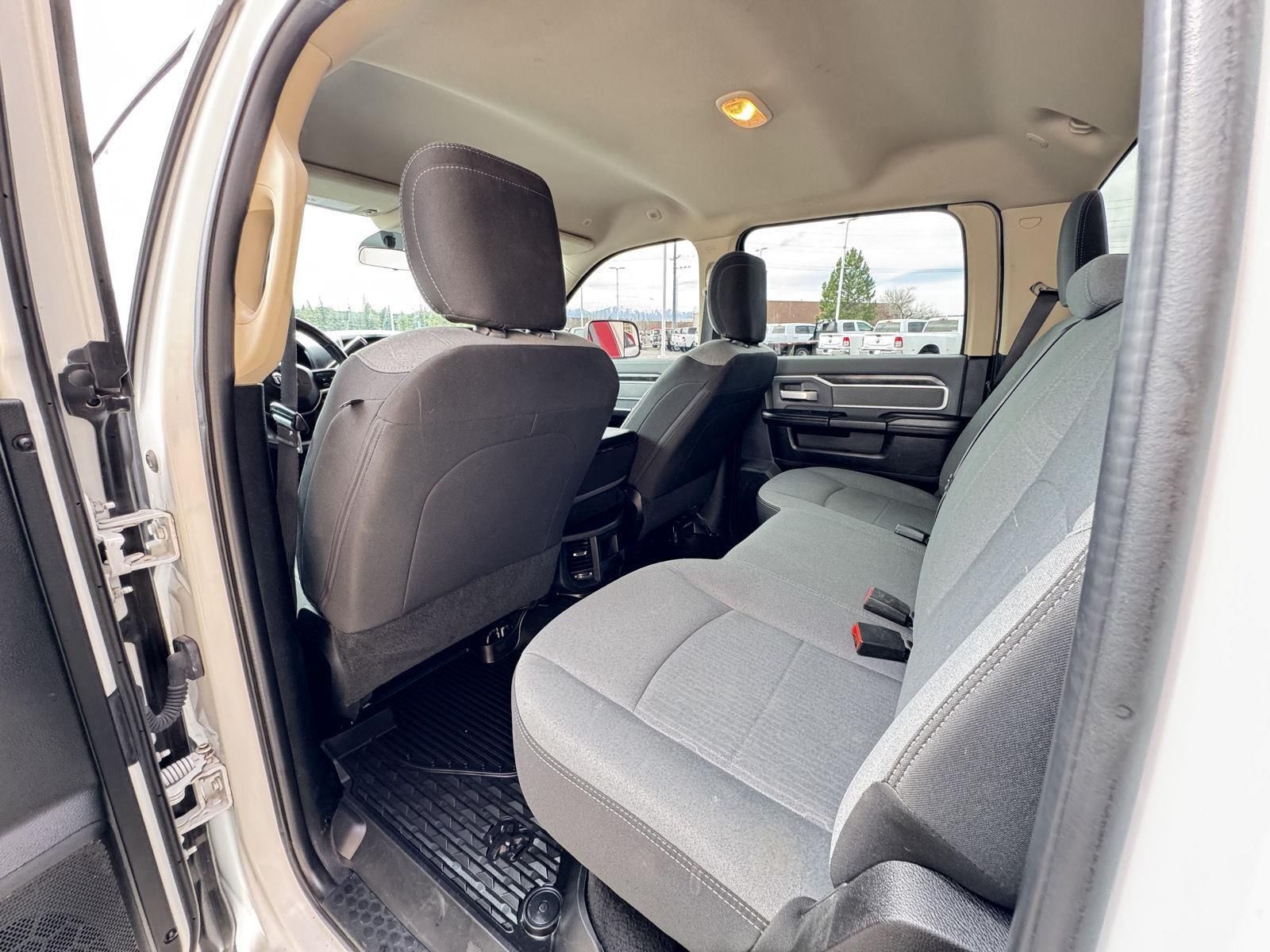 ENGINE: 6.7L I6 CUMMINS TURBO DIESEL, TRANSMISSION: 6-SPEED AUTOMATIC (68RFE), QUICK ORDER PACKAGE 2HZ BIG HORN, 3.73 AXLE RATIO, WHEELS: 18" X 8.0" STEEL CHROME CLAD, TIRES: LT275/70R18E OWL ON/OFF ROAD, BRIGHT WHITE CLEARCOAT, DIESEL GRAY/BLACK, CLOTH 40/20/40 BENCH SEAT, MANUFACTURER'S STATEMENT OF ORIGIN