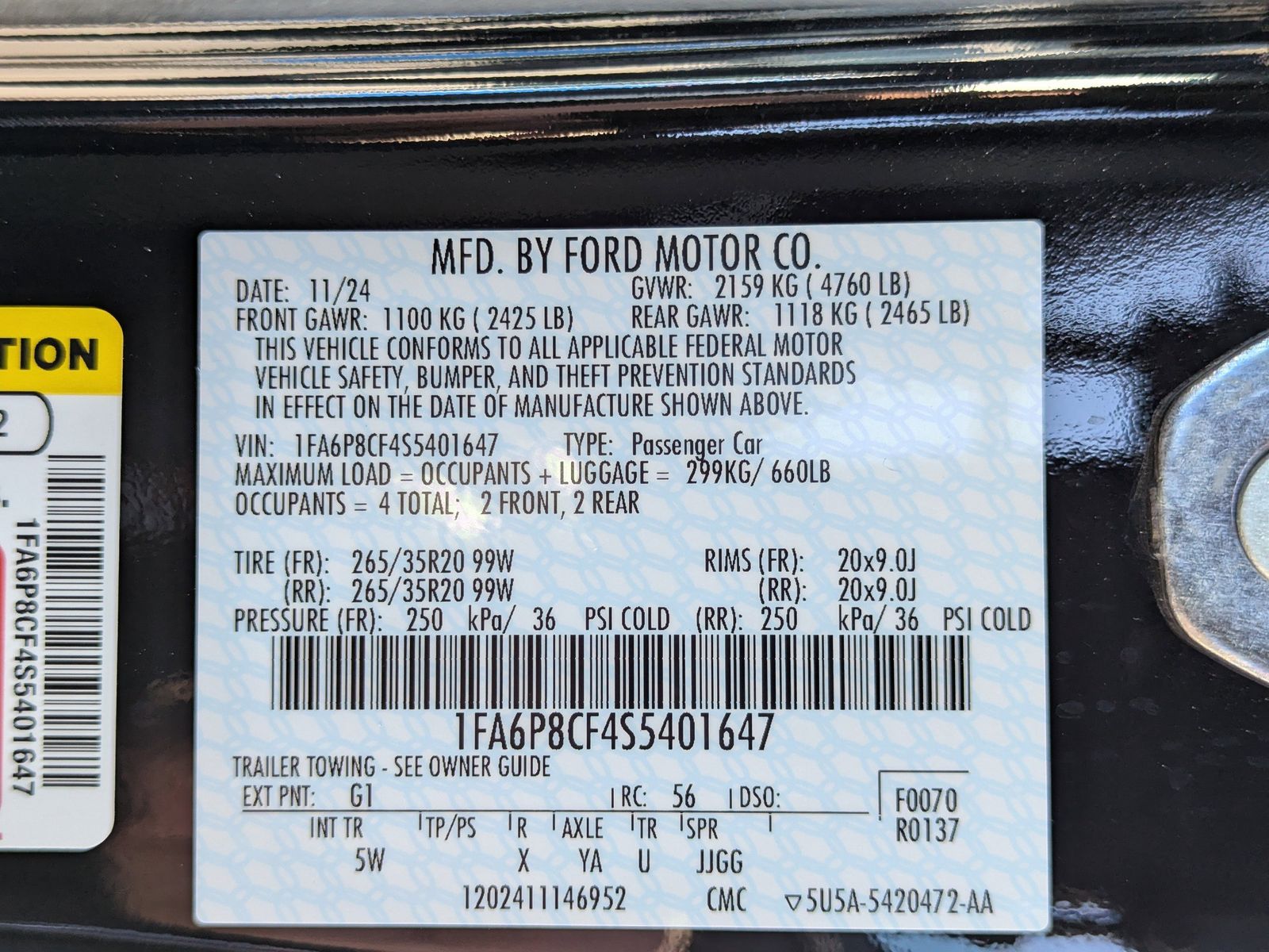 ENGINE: 5.0L TI-VCT V8 -inc: stop/start system and Port Fueled Direct Injection (PFDI) (STD),Rear Wheel Drive,Power Steering,ABS,4-Wheel Disc Brakes,Brake Assist,Aluminum Wheels,Tires - Front Performance,Tires - Rear Performance,Heated Mirrors,Power Mirror(s),Integrated Turn Signal Mirrors,Rear Defrost,Intermittent Wipers,Variable Speed Intermittent Wipers,Rain Sensing Wipers,Rear Spoiler,Daytime Running Lights,Automatic Headlights,LED Headlights,Automatic Highbeams,AM/FM Stereo,Satellite Radio,HD Radio,Requires Subscription,MP3 Capability,Steering Wheel Audio Controls,Auxiliary Audio Input,Satellite Radio,HD Radio,Requires Subscription,Satellite Radio,Requires Subscription,Bluetooth Connection,Heated Front Seat(s),Cooled Front Seat(s),Pass-Through Rear Seat,Rear Bench Seat,Adjustable Steering Wheel,Trip Computer,WiFi Hotspot,Leather Steering Wheel,Heated Steering Wheel,Keyless Entry,Power Door Locks,Keyless Start,Keyless Entry,Power Door Locks,Universal Garage Door Opener,Cruise Control,Climate Control,Multi-Zone A/C,A/C,Power Driver Seat,Power Passenger Seat,Leather Seats,Bucket Seats,Driver Adjustable Lumbar,Driver Vanity Mirror,Passenger Vanity Mirror,Driver Illuminated Vanity Mirror,Passenger Illuminated Visor Mirror,Auto-Dimming Rearview Mirror,Floor Mats,Keyless Start,MP3 Capability,Telematics,Auxiliary Audio Input,Smart Device Integration,Requires Subscription,Power Windows,Power Door Locks,Trip Computer,Immobilizer,Traction Control,Stability Control,Traction Control,Front Side Air Bag,Rear Parking Aid,Blind Spot Monitor,Cross-Traffic Alert,Rear Collision Mitigation,Lane Departure Warning,Lane Keeping Assist,Lane Departure Warning,Front Collision Mitigation,Driver Monitoring,Tire Pressure Monitor,Driver Air Bag,Passenger Air Bag,Front Head Air Bag,Rear Head Air Bag,Passenger Air Bag Sensor,Knee Air Bag,Back-Up Camera