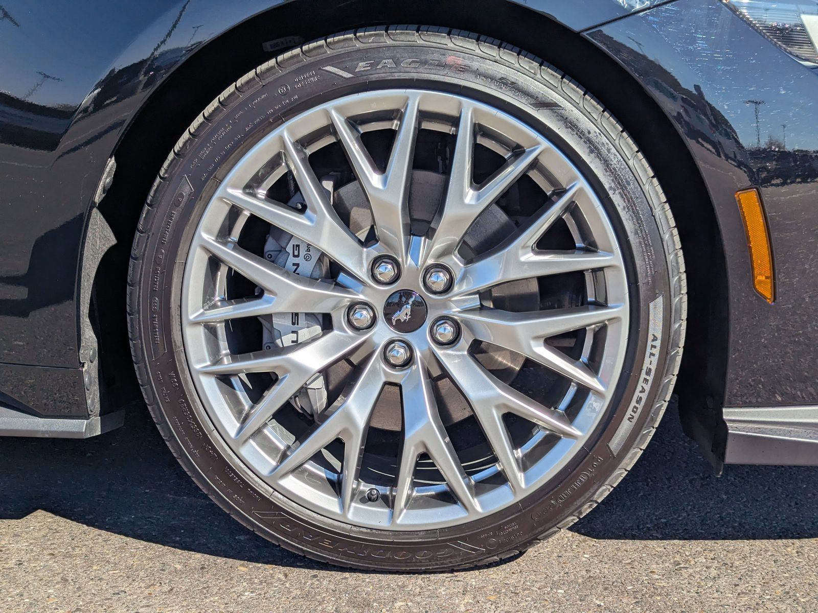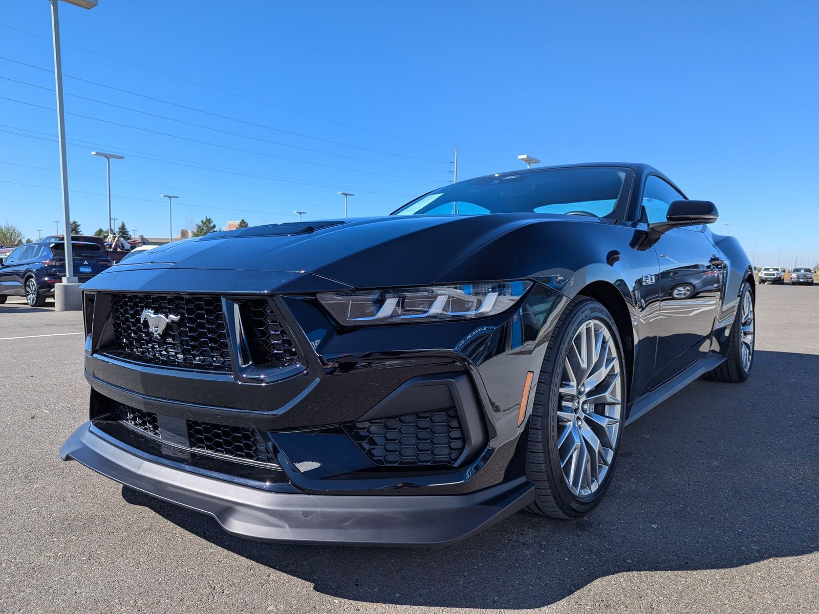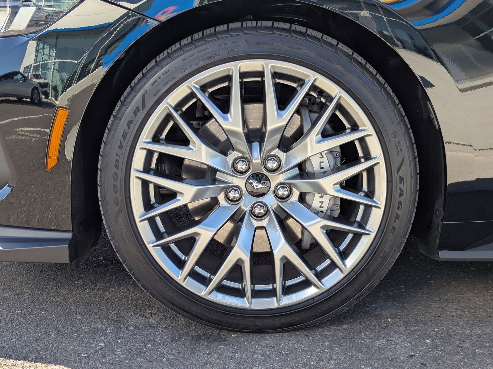The exterior commands attention with 20 premium-painted aluminum wheels, body-color bumpers, and a sleek spoiler, perfectly complementing the Mustangs iconic design. Safety features include Ford Co-Pilot360 Assist , dual front and side airbags, rear parking sensors, electronic stability control, and traction control.
