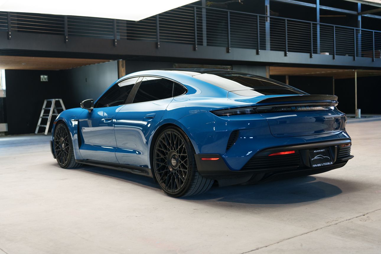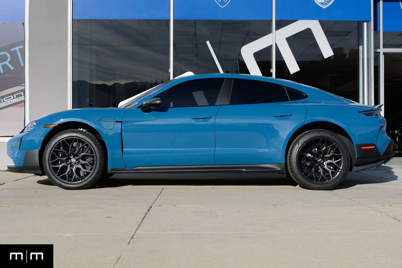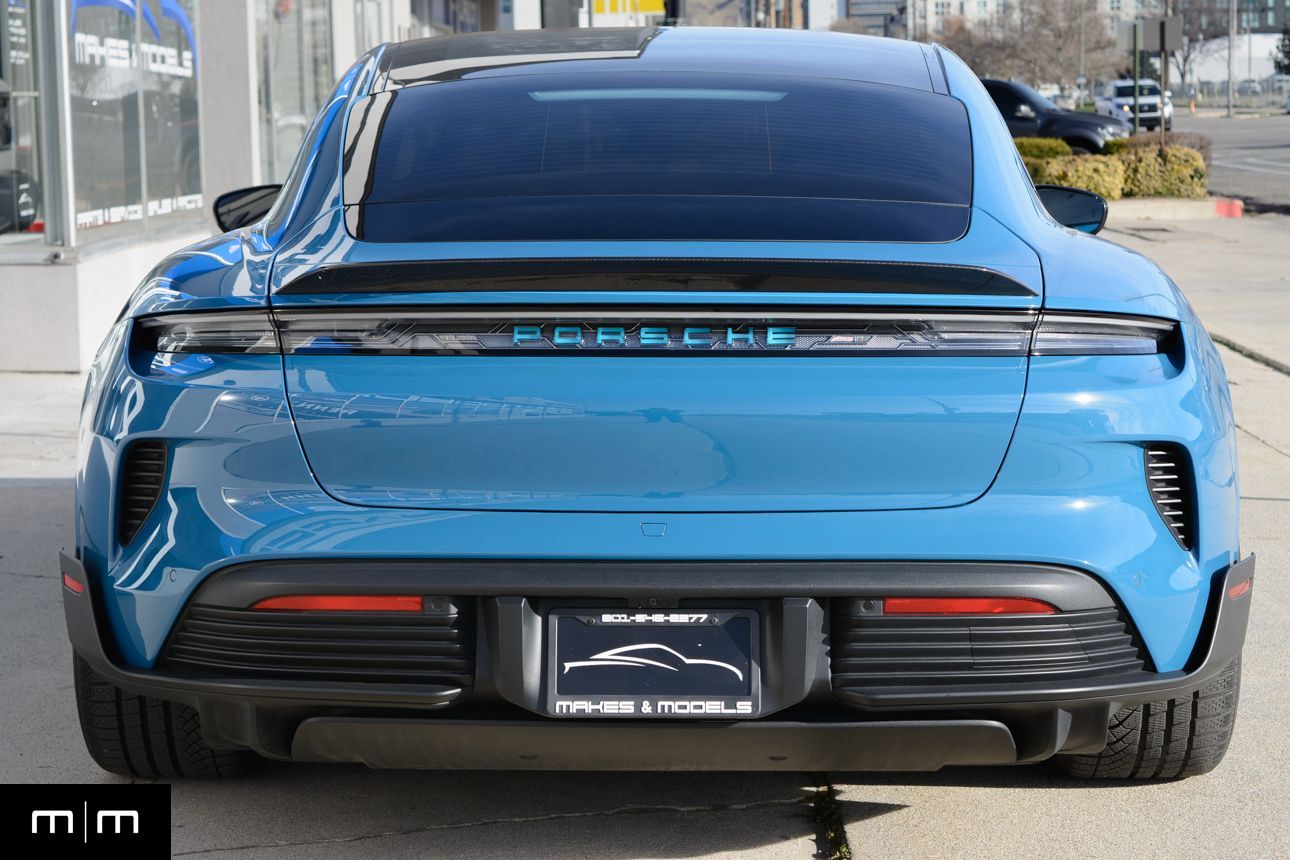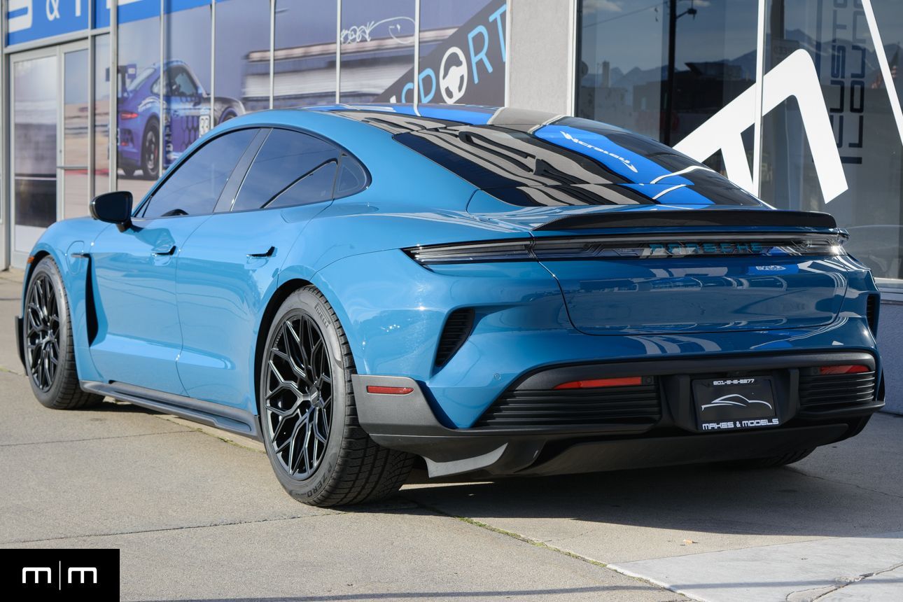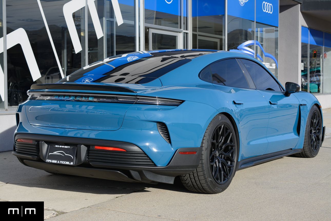 Finished in Paint to Sample Oslo Blue over Black Leather, this one-owner 2025 Porsche Taycan Turbo GT shows just 2,050 miles and carries an original MSRP of $276k! It presents extremely well and has been protected with front end paint protection film and ceramic window tint. Factory options include Porsche Ceramic Composite Brakes (PCCB), Panoramic Roof with Variable Light Control, and HD Matrix Design LED headlights in Glacier Blue, this example offers a strong performance-focused spec with the right visual upgrades. It now sits on a set of aftermarket Vossen wheels, giving it a more aggressive stance! Inside, it's well equipped with Burmester 3D High-End Surround Sound, Passenger Display, Head-Up Display, and Surround View, along with a full deviated stitching interior package, leather dash and center console, and heated/ventilated front seats. Complete with 2 keys, this is a clean, well-optioned Turbo GT that strikes a great balance between performance, spec, and overall presence. At Makes & Models, we make financing simple for both in- and out-of-state buyers. Our team specializes in open and enclosed transport and can arrange financing for up to 144 months, with rates starting at 4.99%. Whether using your own lender or one of our trusted partners, we handle all paperwork electronically to get you into your vehicle quickly and confidently. To learn more, call or text our team at 801-546-2277!