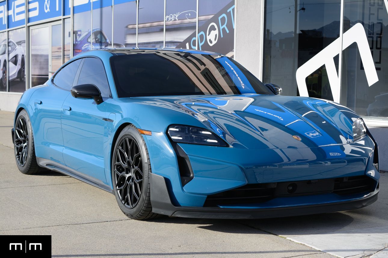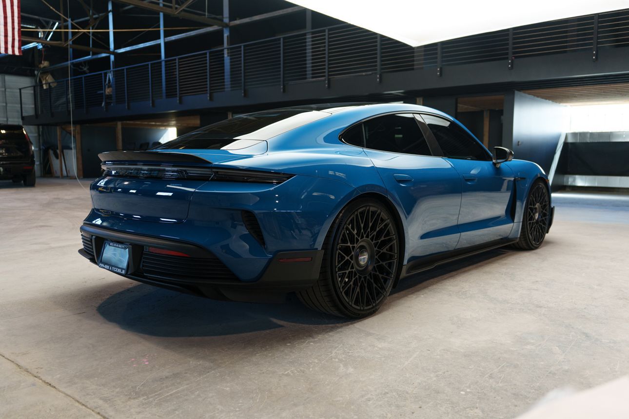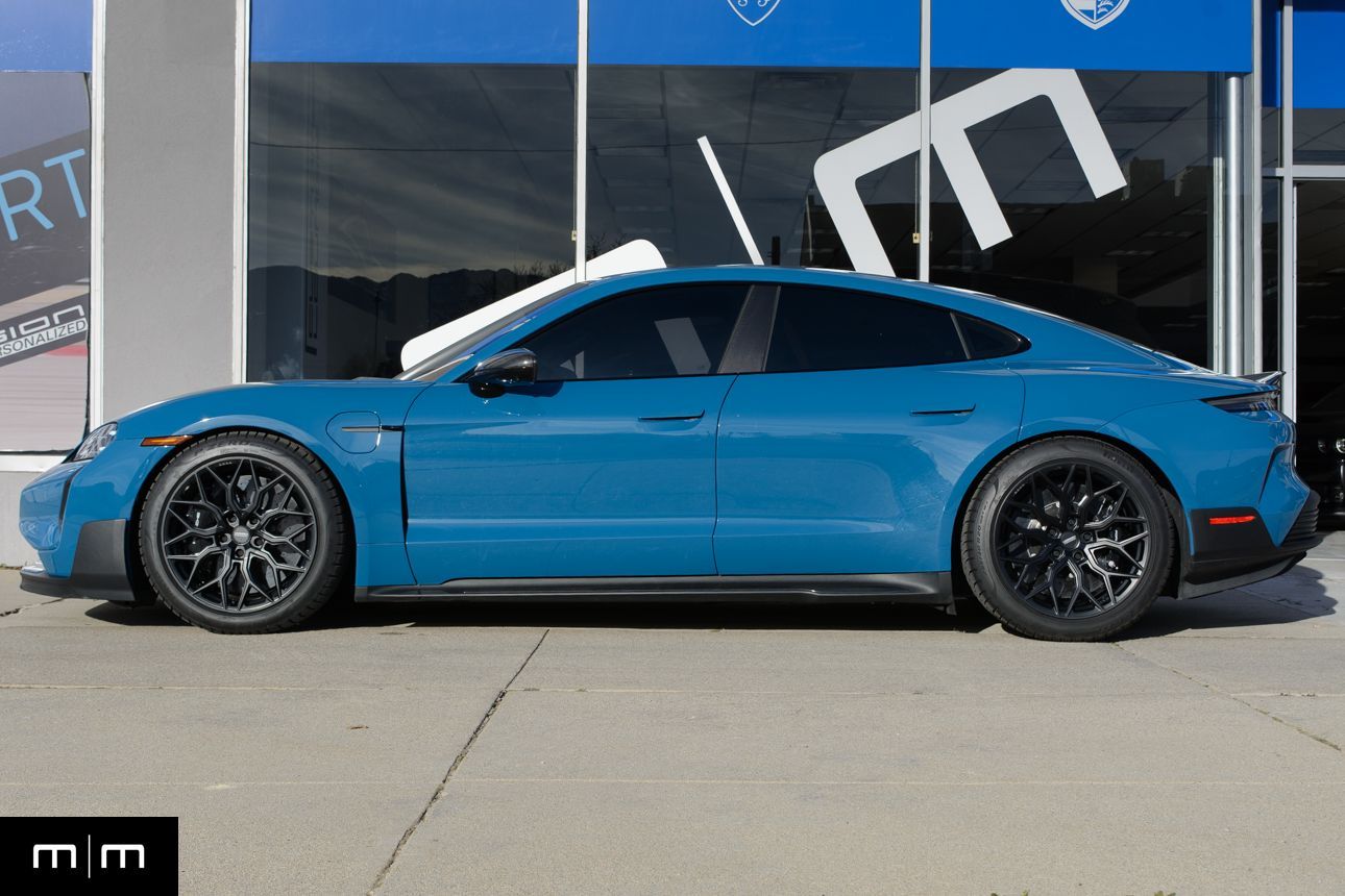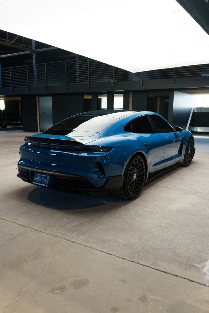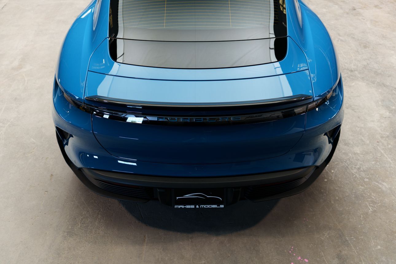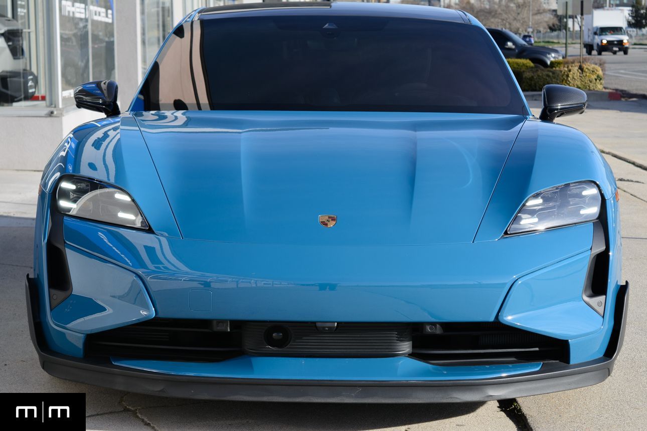 Finished in Paint to Sample Oslo Blue over Black Leather, this one-owner 2025 Porsche Taycan Turbo GT shows just 2,050 miles and carries an original MSRP of $276k! It presents extremely well and has been protected with front end paint protection film and ceramic window tint. Factory options include Porsche Ceramic Composite Brakes (PCCB), Panoramic Roof with Variable Light Control, and HD Matrix Design LED headlights in Glacier Blue, this example offers a strong performance-focused spec with the right visual upgrades. It now sits on a set of aftermarket Vossen wheels, giving it a more aggressive stance! Inside, it's well equipped with Burmester 3D High-End Surround Sound, Passenger Display, Head-Up Display, and Surround View, along with a full deviated stitching interior package, leather dash and center console, and heated/ventilated front seats. Complete with 2 keys, this is a clean, well-optioned Turbo GT that strikes a great balance between performance, spec, and overall presence. At Makes & Models, we make financing simple for both in- and out-of-state buyers. Our team specializes in open and enclosed transport and can arrange financing for up to 144 months, with rates starting at 4.99%. Whether using your own lender or one of our trusted partners, we handle all paperwork electronically to get you into your vehicle quickly and confidently. To learn more, call or text our team at 801-546-2277!
