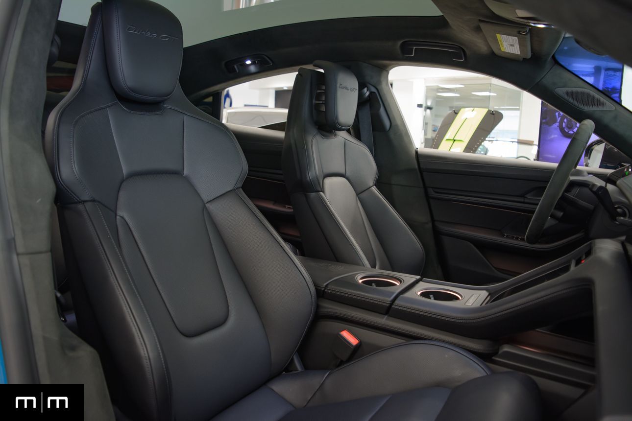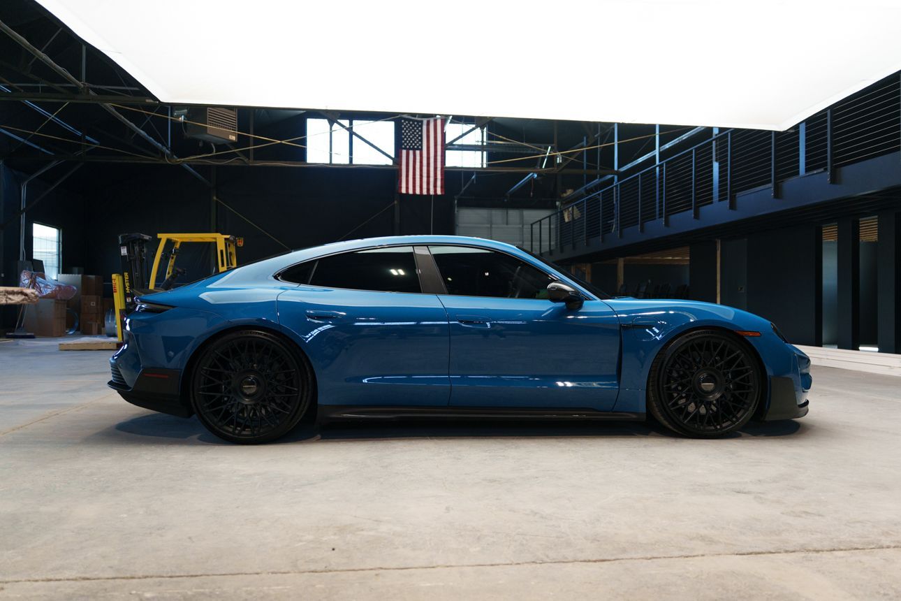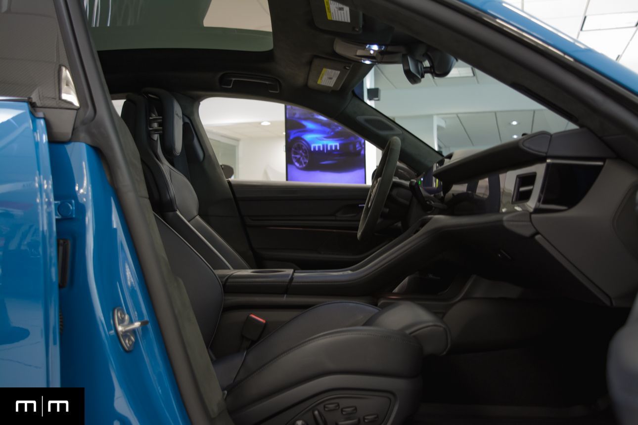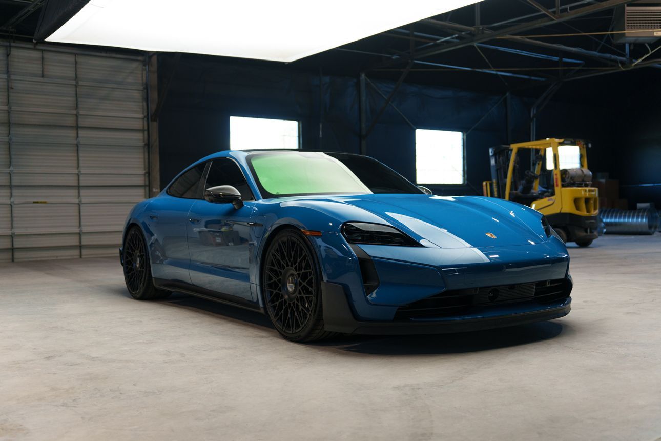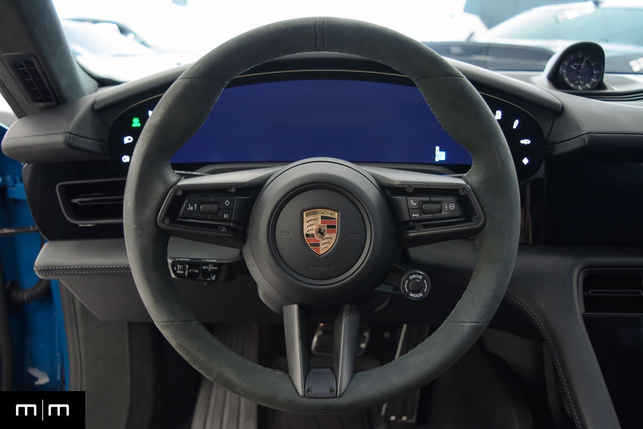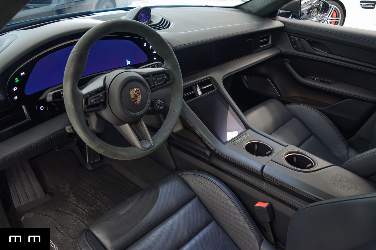 Finished in Paint to Sample Oslo Blue over Black Leather, this one-owner 2025 Porsche Taycan Turbo GT shows just 2,050 miles and carries an original MSRP of $276k! It presents extremely well and has been protected with front end paint protection film and ceramic window tint. Factory options include Porsche Ceramic Composite Brakes (PCCB), Panoramic Roof with Variable Light Control, and HD Matrix Design LED headlights in Glacier Blue, this example offers a strong performance-focused spec with the right visual upgrades. It now sits on a set of aftermarket Vossen wheels, giving it a more aggressive stance! Inside, it's well equipped with Burmester 3D High-End Surround Sound, Passenger Display, Head-Up Display, and Surround View, along with a full deviated stitching interior package, leather dash and center console, and heated/ventilated front seats. Complete with 2 keys, this is a clean, well-optioned Turbo GT that strikes a great balance between performance, spec, and overall presence. At Makes & Models, we make financing simple for both in- and out-of-state buyers. Our team specializes in open and enclosed transport and can arrange financing for up to 144 months, with rates starting at 4.99%. Whether using your own lender or one of our trusted partners, we handle all paperwork electronically to get you into your vehicle quickly and confidently. To learn more, call or text our team at 801-546-2277!