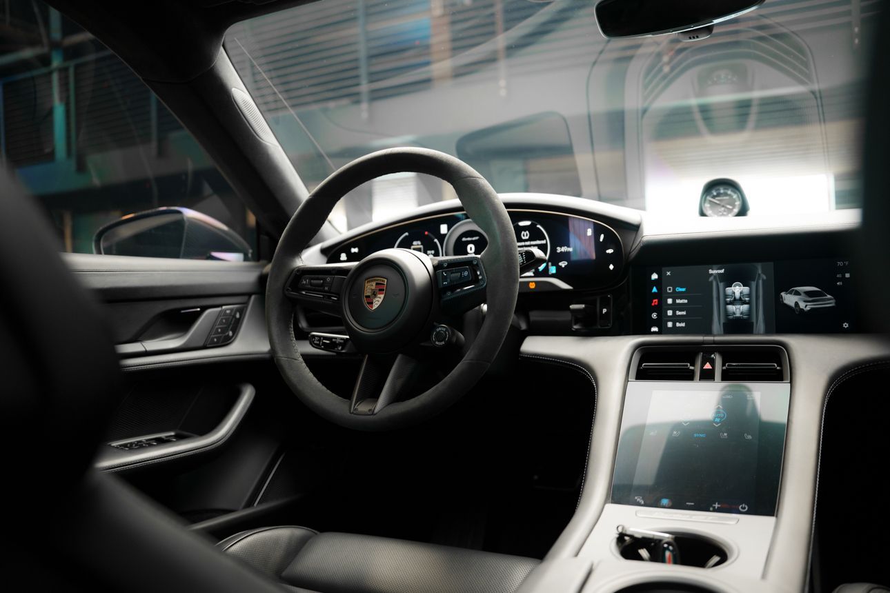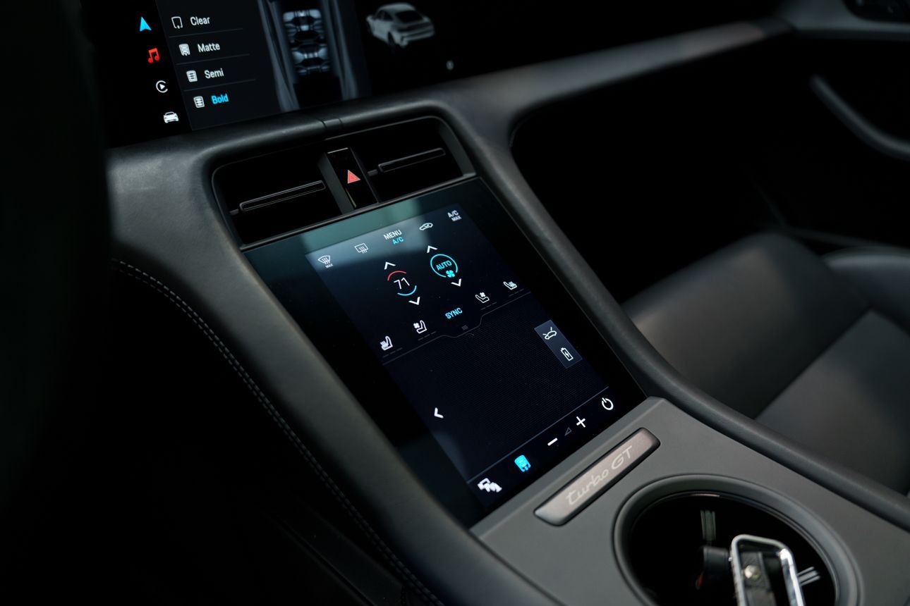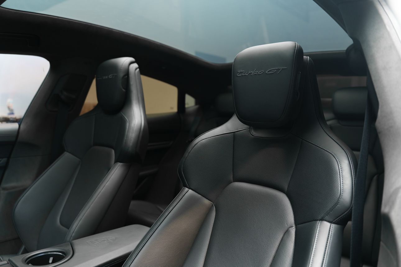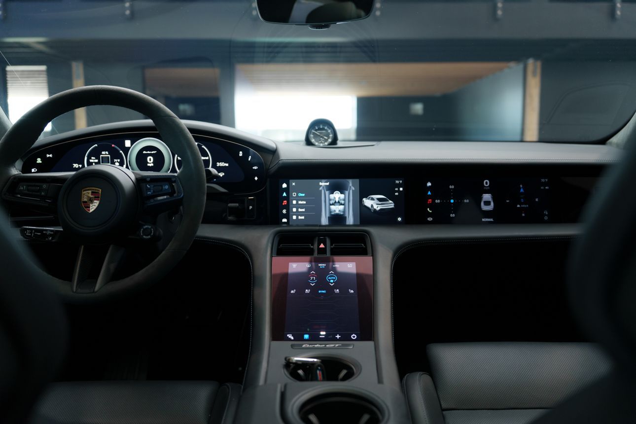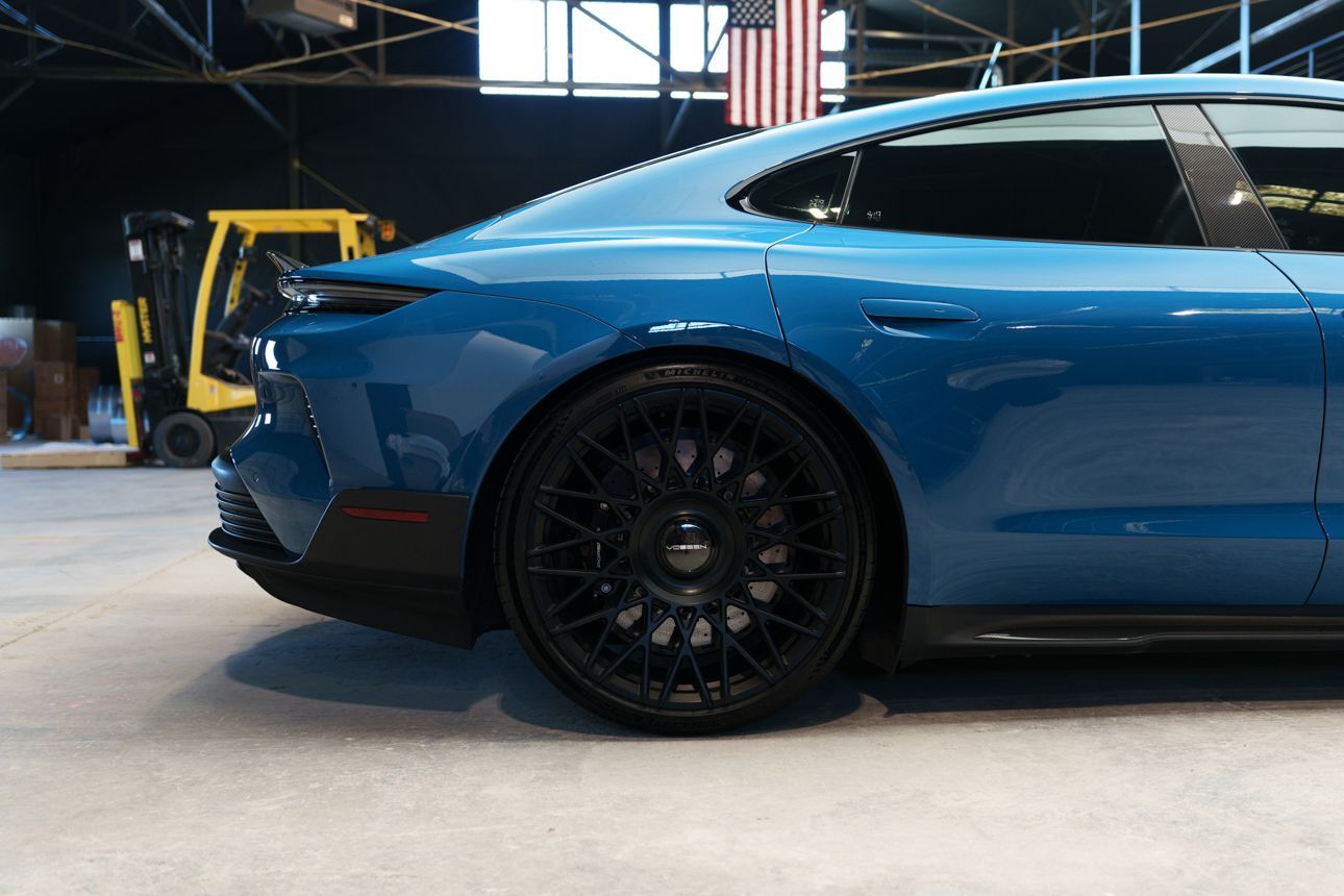 Finished in Paint to Sample Oslo Blue over Black Leather, this one-owner 2025 Porsche Taycan Turbo GT shows just 2,050 miles and carries an original MSRP of $276k! It presents extremely well and has been protected with front end paint protection film and ceramic window tint. Factory options include Porsche Ceramic Composite Brakes (PCCB), Panoramic Roof with Variable Light Control, and HD Matrix Design LED headlights in Glacier Blue, this example offers a strong performance-focused spec with the right visual upgrades. It now sits on a set of aftermarket Vossen wheels, giving it a more aggressive stance! Inside, it's well equipped with Burmester 3D High-End Surround Sound, Passenger Display, Head-Up Display, and Surround View, along with a full deviated stitching interior package, leather dash and center console, and heated/ventilated front seats. Complete with 2 keys, this is a clean, well-optioned Turbo GT that strikes a great balance between performance, spec, and overall presence. At Makes & Models, we make financing simple for both in- and out-of-state buyers. Our team specializes in open and enclosed transport and can arrange financing for up to 144 months, with rates starting at 4.99%. Whether using your own lender or one of our trusted partners, we handle all paperwork electronically to get you into your vehicle quickly and confidently. To learn more, call or text our team at 801-546-2277!