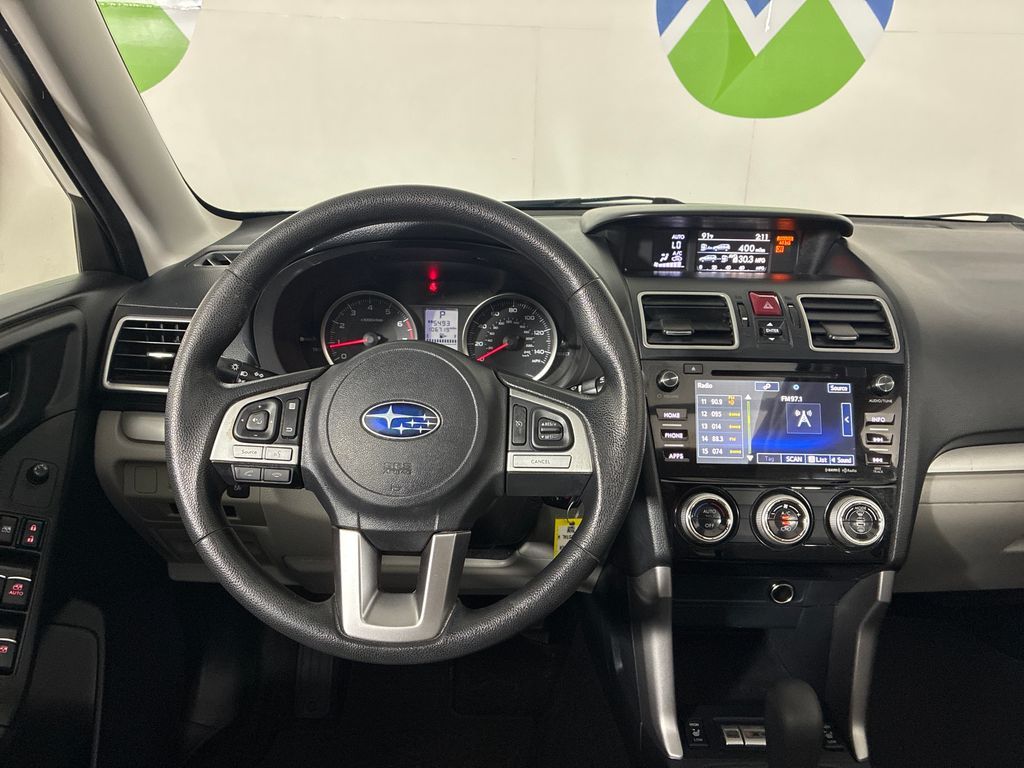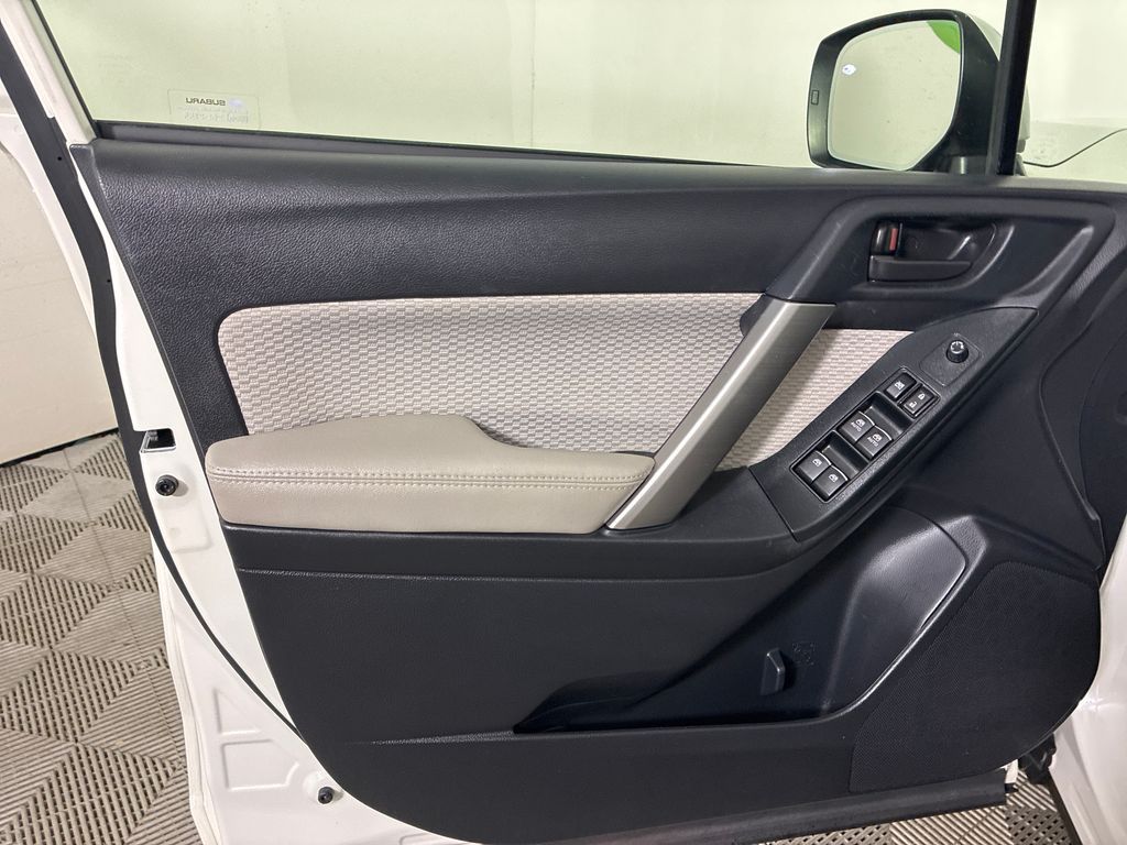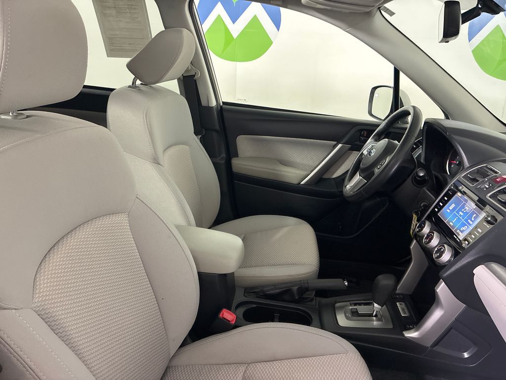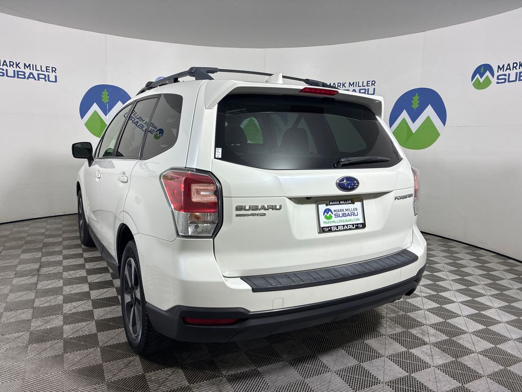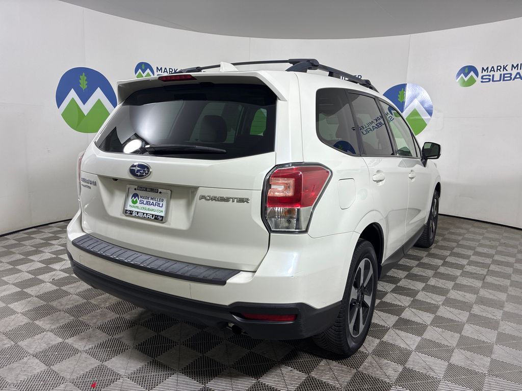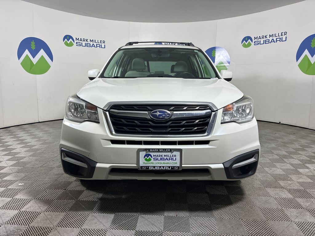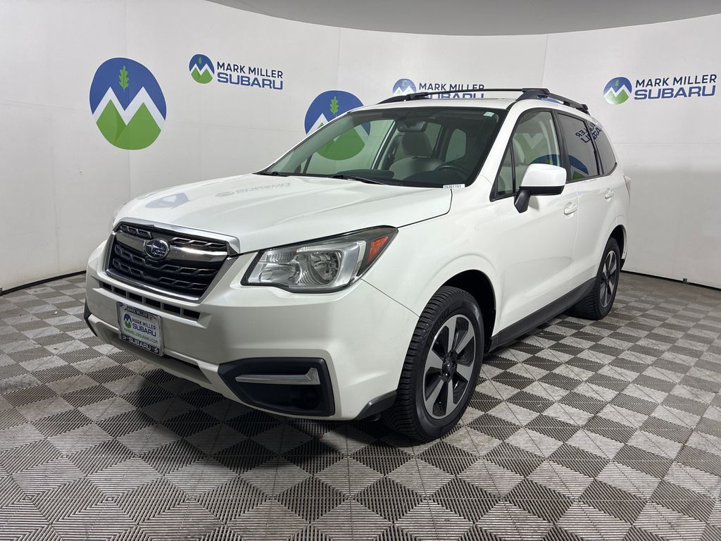 This 2018 Crystal White Pearl Subaru Forester 2.5i Premium AWD is well equipped and includes these features and benefits: 3.70 Axle Ratio, 4-Wheel Disc Brakes, 6 Speakers, ABS brakes, Aero Crossbar Set, Air Conditioning, All-Weather Floor Mats, Alloy wheels, AM/FM radio: SiriusXM, Automatic temperature control, Brake assist, Bumpers: body-color, Cargo Cover - Manual Rear Gate, Cargo Tray, CD player, Driver door bin, Driver vanity mirror, Dual front impact airbags, Dual front side impact airbags, Electronic Stability Control, Emergency communication system: STARLINK, Exterior Parking Camera Rear, Four wheel independent suspension, Front anti-roll bar, Front Bucket Seats, Front Center Armrest, Front reading lights, Illuminated entry, Knee airbag, Low tire pressure warning, Occupant sensing airbag, Outside temperature display, Overhead airbag, Overhead console, Panic alarm, Passenger door bin, Passenger vanity mirror, Power door mirrors, Power driver seat, Power moonroof, Power steering, Power windows, Radio data system, Radio: Subaru Starlink 7.0'' Multimedia Plus System, Rear anti-roll bar, Rear seat center armrest, Rear window defroster, Rear window wiper, Remote keyless entry, Roof rack: rails only, Security system, Speed control, Split folding rear seat, Spoiler, Steering wheel mounted audio controls, Tachometer, Telescoping steering wheel, Tilt steering wheel, Traction control, Trip computer, and Variably intermittent wipers.