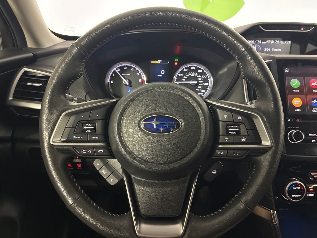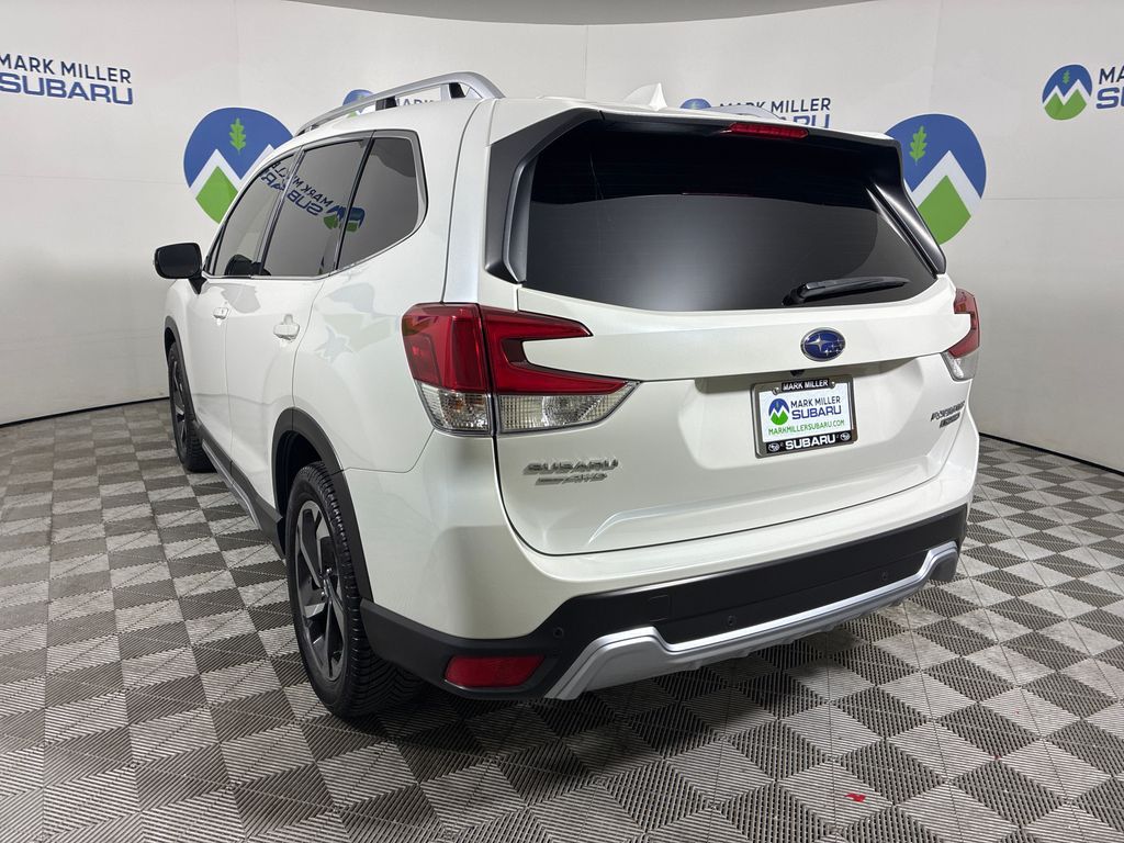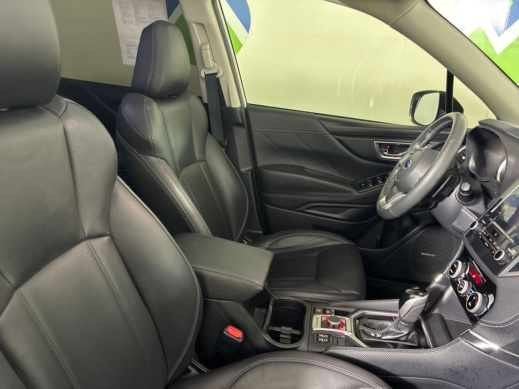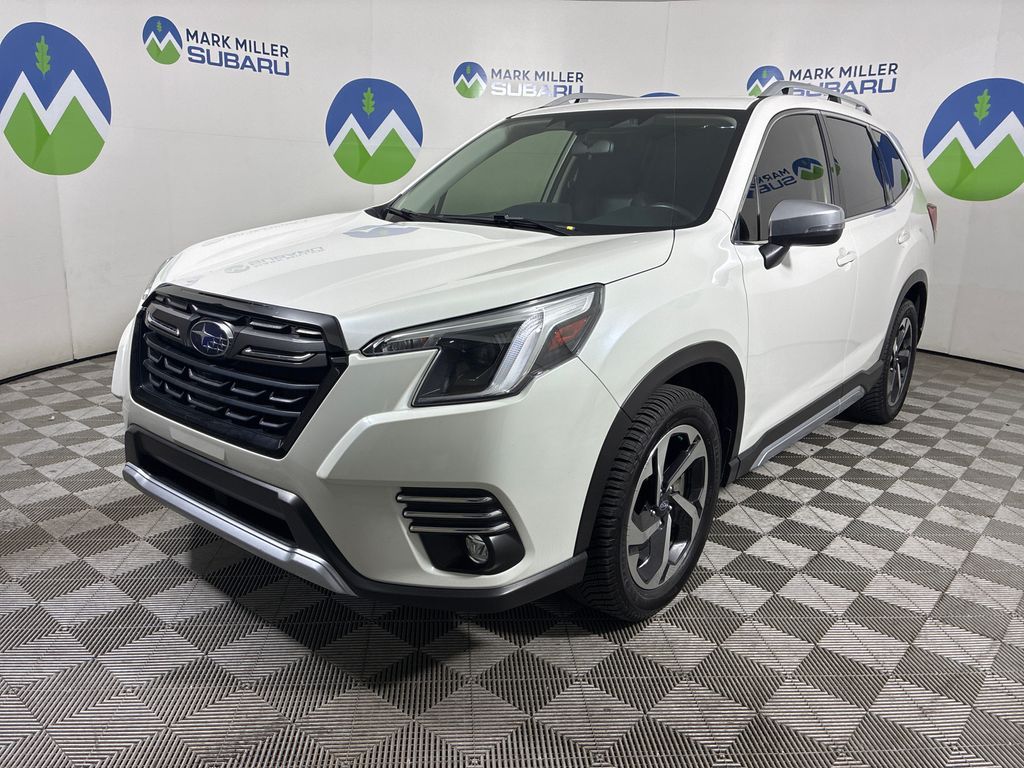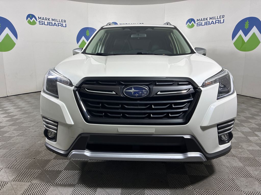 This 2023 Crystal White Pearl Subaru Forester Touring AWD is well equipped and includes these features and benefits: Standard Model, Subaru Certified Pre-Owned Certified, 3.70 Axle Ratio, 4-Wheel Disc Brakes, 9 Speakers, ABS brakes, Air Conditioning, Alloy wheels, AM/FM radio: SiriusXM, Anti-whiplash front head restraints, Auto High-beam Headlights, Automatic temperature control, Brake assist, Bumpers: body-color, Cargo Net, Cargo Sidewall Protector, CD player, Door Projector Light, Driver door bin, Driver vanity mirror, Dual front impact airbags, Dual front side impact airbags, Electronic Stability Control, Emergency communication system: STARLINK Safety and Security (Subscription Required), Exterior Parking Camera Rear, Four wheel independent suspension, Front anti-roll bar, Front Bucket Seats, Front Center Armrest, Front dual zone A/C, Front fog lights, Front reading lights, Fully automatic headlights, harman/kardon 9-Speaker Audio System, harman/kardon® Speakers, Heated door mirrors, Heated Front Bucket Seats, Heated front seats, Heated rear seats, Heated steering wheel, HVAC memory, Illuminated entry, Knee airbag, Leather Shift Knob, Low tire pressure warning, Memory seat, Navigation System, Occupant sensing airbag, Outside temperature display, Overhead airbag, Overhead console, Panic alarm, Passenger door bin, Passenger vanity mirror, Perforated Leather-Trimmed Upholstery, Power door mirrors, Power driver seat, Power Liftgate, Power moonroof: Panoramic, Power passenger seat, Power steering, Power windows, Premium audio system: harman/kardon, Radio data system, Radio: Subaru Starlink 8.0'' Multimedia Nav System, Rear anti-roll bar, Rear seat center armrest, Rear Seatback Protector, Rear window defroster, Rear window wiper, Remote keyless entry, Roof rack: rails only, Security system, Speed control, Speed-sensing steering, Split folding rear seat, Spoiler, STARLINK/Apple CarPlay/Android Auto, Steering wheel mounted audio controls, Sunshade - Windshield, Tachometer, Telescoping steering wheel, Tilt steering wheel, Traction control, Trip computer, Turn signal indicator mirrors, Variably intermittent wipers, and Wheels: 18'' x 7.0 J Dark Gray Machine Finish Alloy.