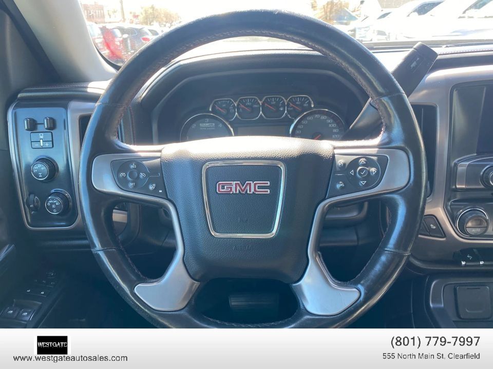 This clean title 2015 GMC Sierra 1500 4WD Crew Cab SLT represents the pinnacle of professional grade performance and luxury in a light duty pickup. With 145K miles and an impressive 25 service history records, this Onyx Black Sierra has been meticulously maintained to ensure continued reliability and peak performance. Under the hood, the powerful 8 cylinder engine is paired with a smooth 6-speed automatic electronically controlled transmission, providing the towing capacity and torque needed for any job. The inclusion of the All Terrain Package and Off-Road Suspension Package with monotube shocks makes this 4x4 truck equally capable on rugged trails as it is on the highway. This vehicle is equipped with the heavy-duty locking rear differential, an active electronic Autotrac transfer case, and a high-capacity air cleaner to handle demanding environments with ease.