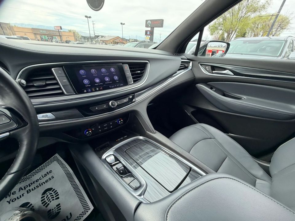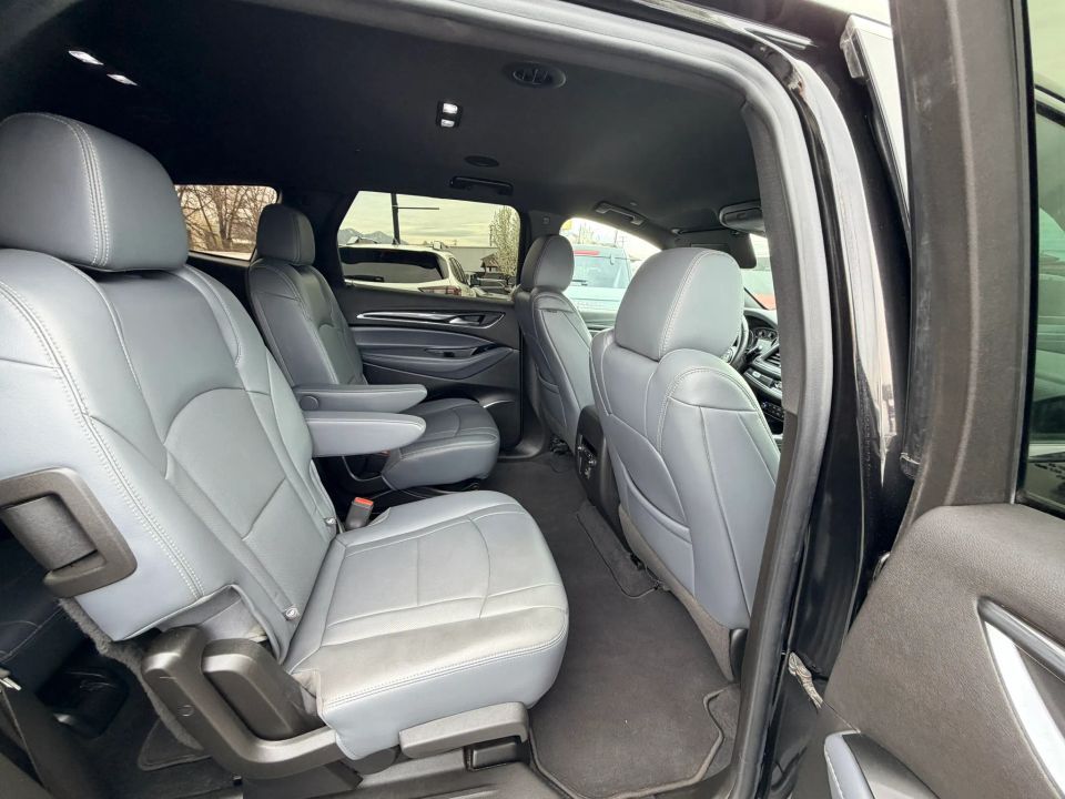 Moon Roof w/Fixed Rear Skylight,Tilt & Telescoping Wheel,Power Door Locks,Park Assist,Bluetooth Wireless,V6 3.6 Liter,Cruise Control,Power Liftgate Release,Dual Power Seats,Alloy Wheels,Automatic 9-Spd,Dual Air Bags,LED Headlamps,Third Row Seat,Power Windows,Side Air Bags,Alarm System,Quad Seating (4 Buckets),StabiliTrak,F&R Head Curtain Air Bags,Enhanced Buick Driver Confidence,AWD,Traction Control,OnStar,Lane Departure Warning System,Rear Spoiler,Backup Camera,Power Steering,Air Conditioning,Daytime Running Lights,Leather,Keyless Entry,Heated Seats,Air Conditioning Rear,ABS (4-Wheel),Blind Zone Alert,AM/FM Stereo,SiriusXM Satellite,Keyless Start