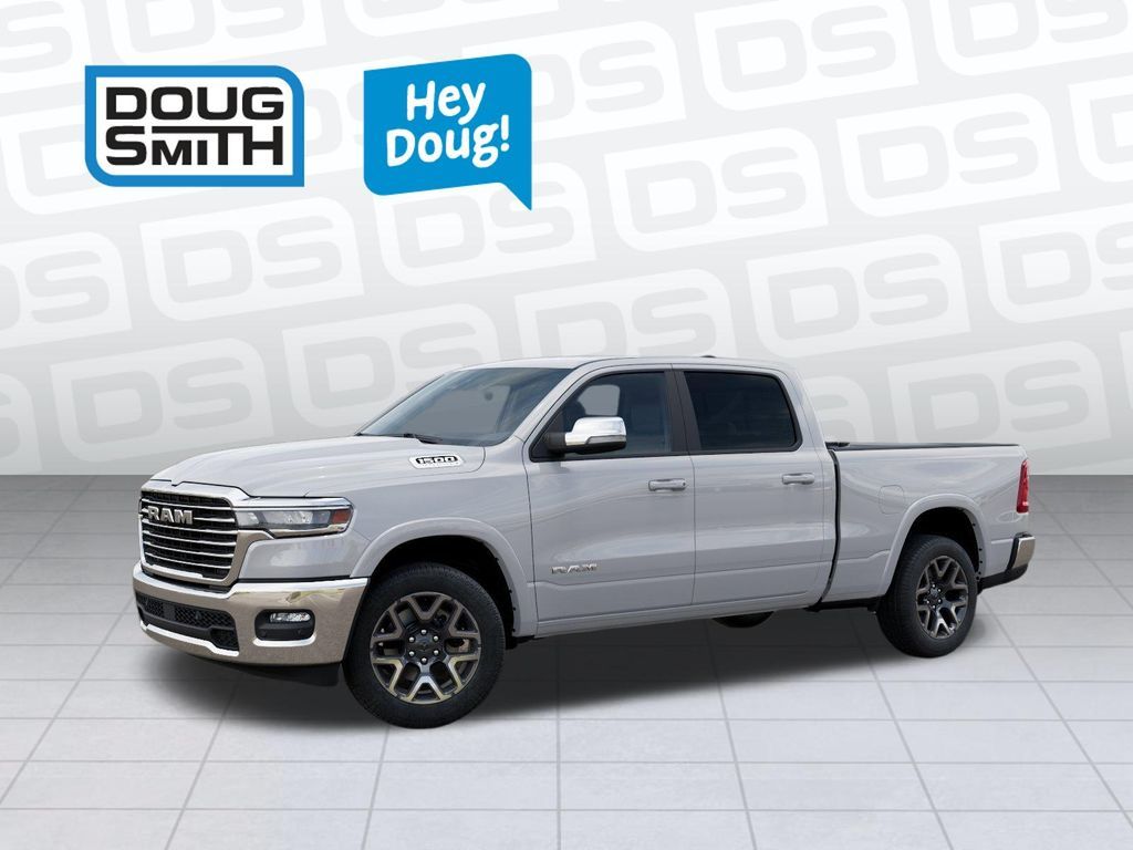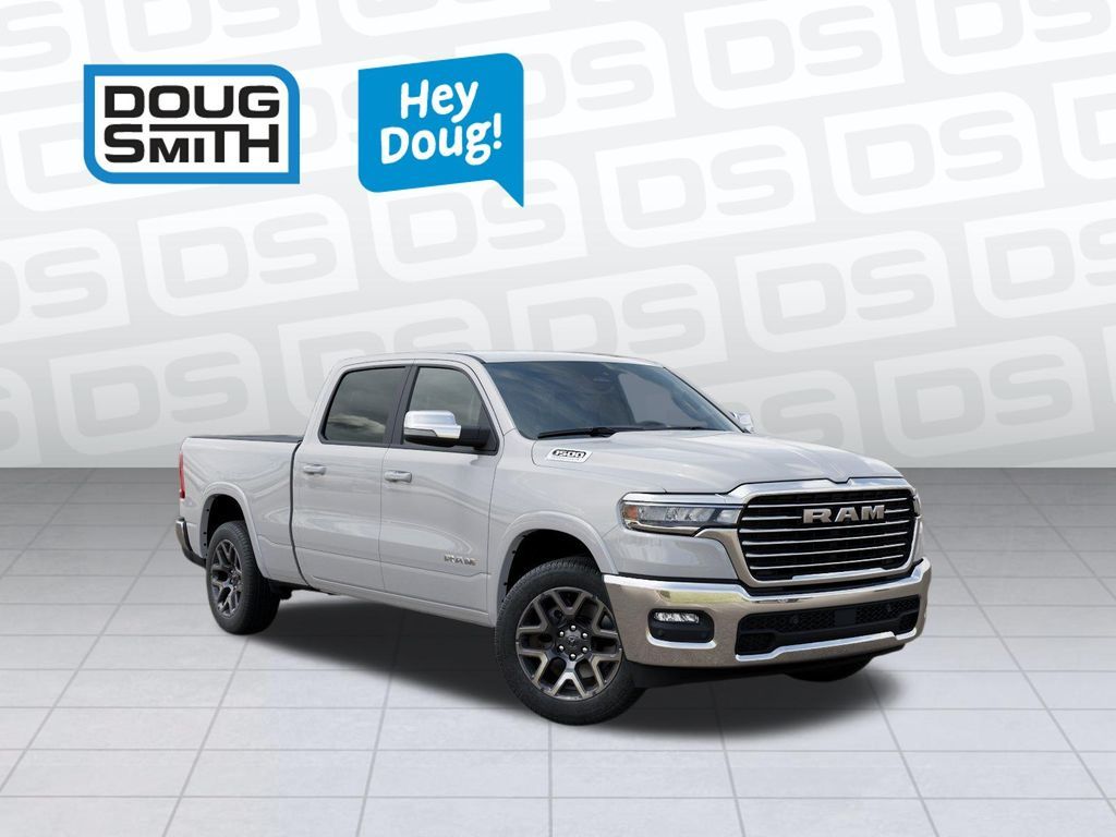 Bright White Clearcoat 2026 Ram 1500 Laramie 4WD 8-Speed Automatic 3.0L I6 Price includes: $3500 - 2026 National Retail Bonus Cash . Exp. 04/30/2026 - Sale Price Includes: $1,500 Trade-In Allowance Incentive Program for customers that trade in a 2015 or newer passenger vehicle with 100,000 miles or less. - Offer Exp. 04/30/2026 - See Doug Smith CDJR for full details.