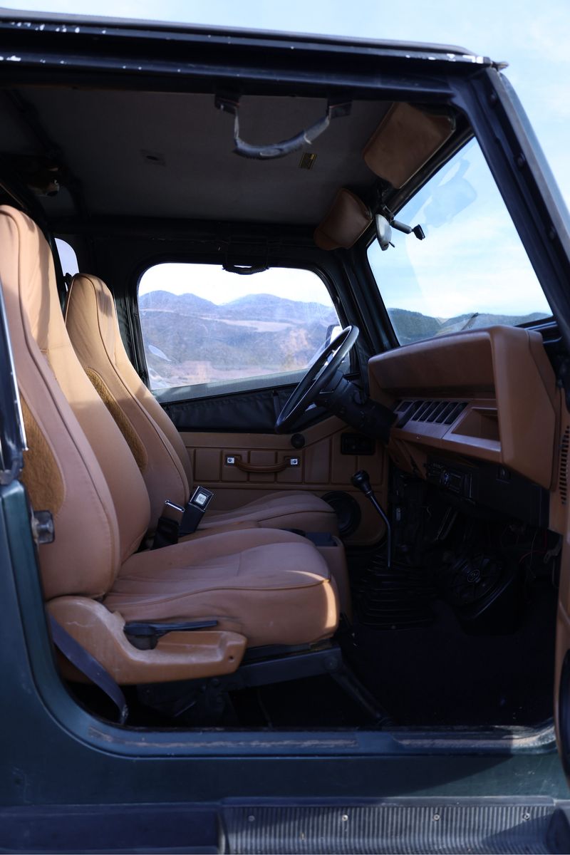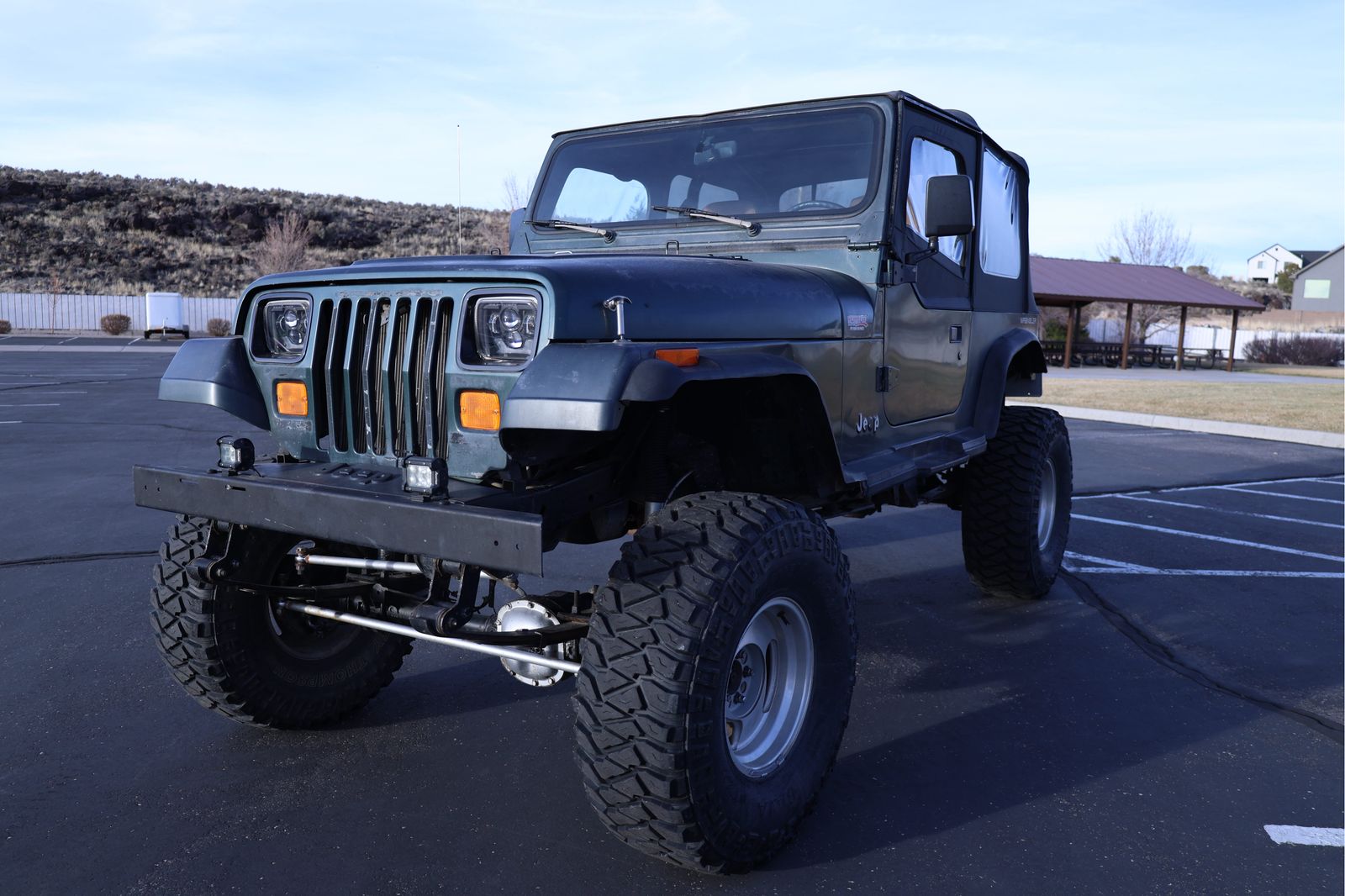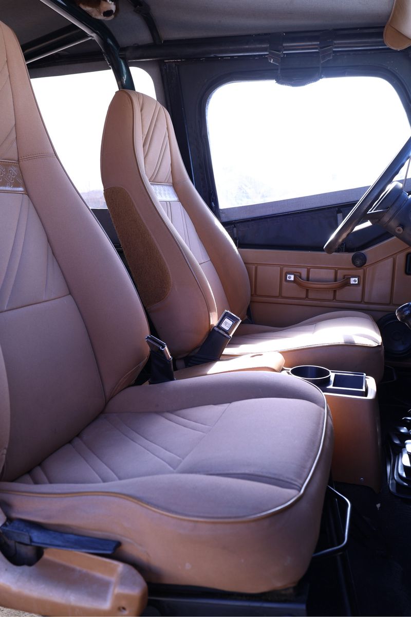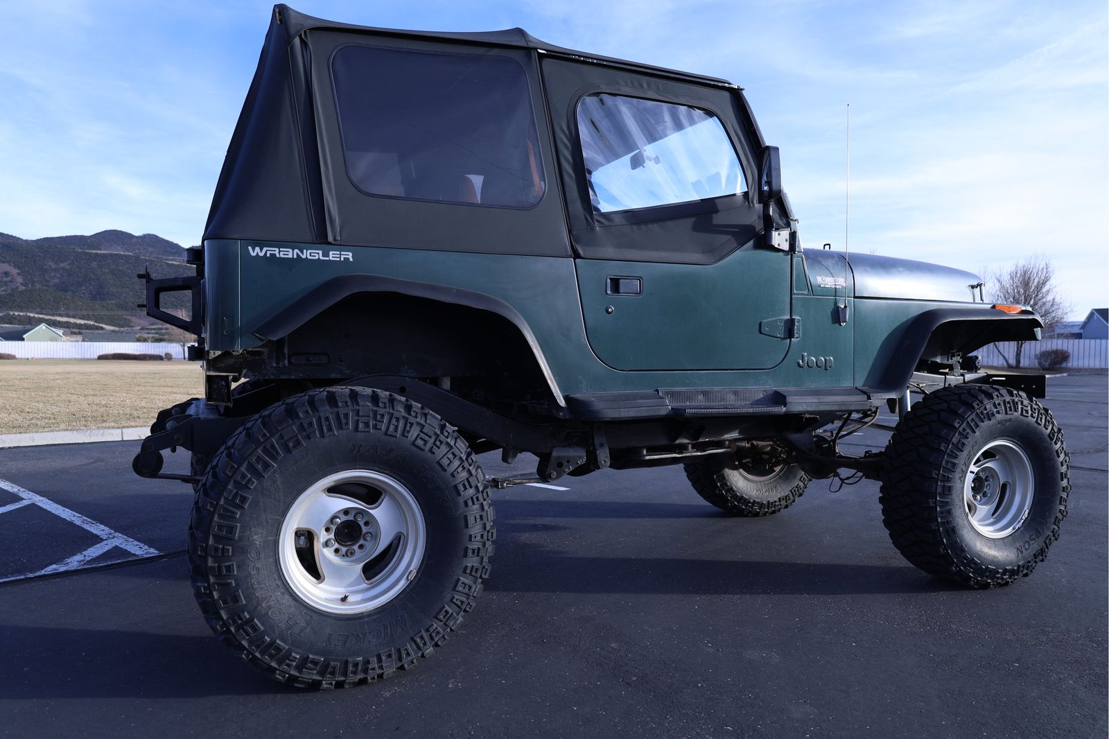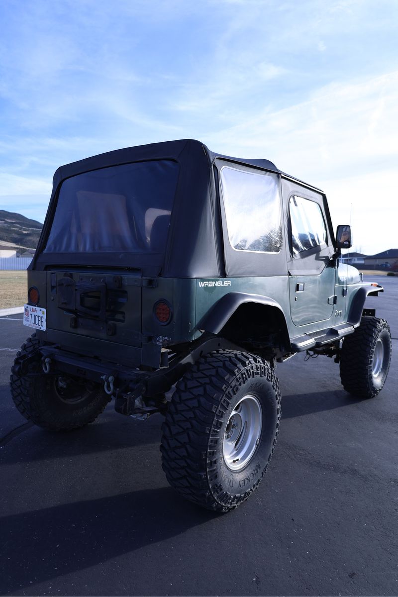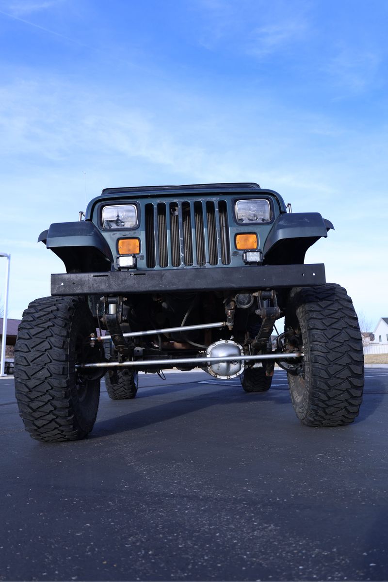 This 1994 Jeep Wrangler YJ is the perfect turn-key rig for someone who wants a capable rock crawler that can still be driven to work on Monday. Powered by the bulletproof 4.0L inline-6 and a smooth-shifting 5-speed manual, this Jeep has 120,000 original miles and runs perfectly. It has been professionally upgraded with a Motobilt stretch kit for improved stability and wheelbase, supported by a heavy-duty Ford 8.8 rear axle swap and a Dana 30 front. The steering has been upgraded to a heavy-duty setup to ensure it tracks straight on the road, and it sits on 35x12.5x15 tires with plenty of tread remaining. It is properly geared to handle the larger tires both on the street and off-road, making it a "go-anywhere" vehicle that doesn't compromise on-road driveability.