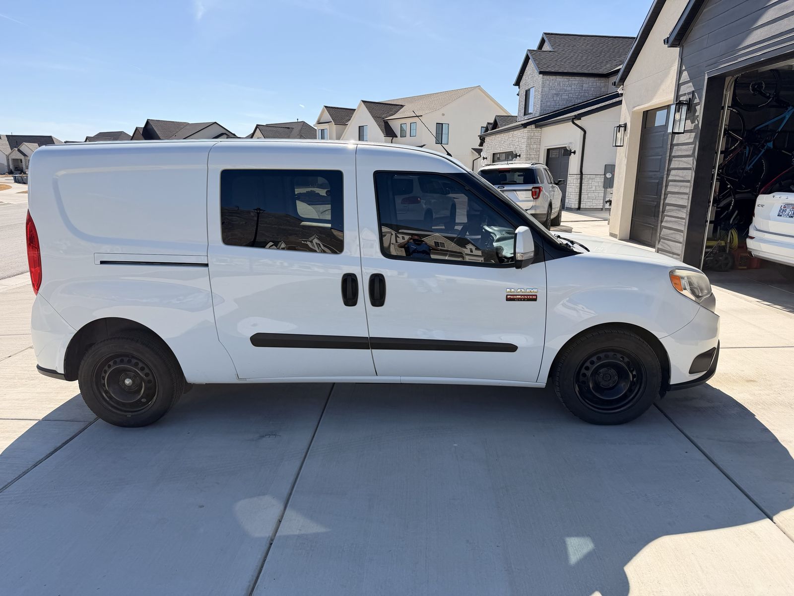 2016 Ram ProMaster City, approx. 152K highway miles. Glass all around with painted front bumper, sliding doors both sides, partition, giant roll-out drawer, rubber mat. New tires, brakes, thermostat, motor mounts, radiator fans, starter, and A/C compressor (all within the last couple years) Tires have 6000 miles or so, Regular oil changes (one just done), well-maintained. It’s got normal wear for highway use, It does have some rock chips on hood but in "Good" condition for what it is. It’s ready to work hard for you. Reach out for a great deal! Clean title and in hand.