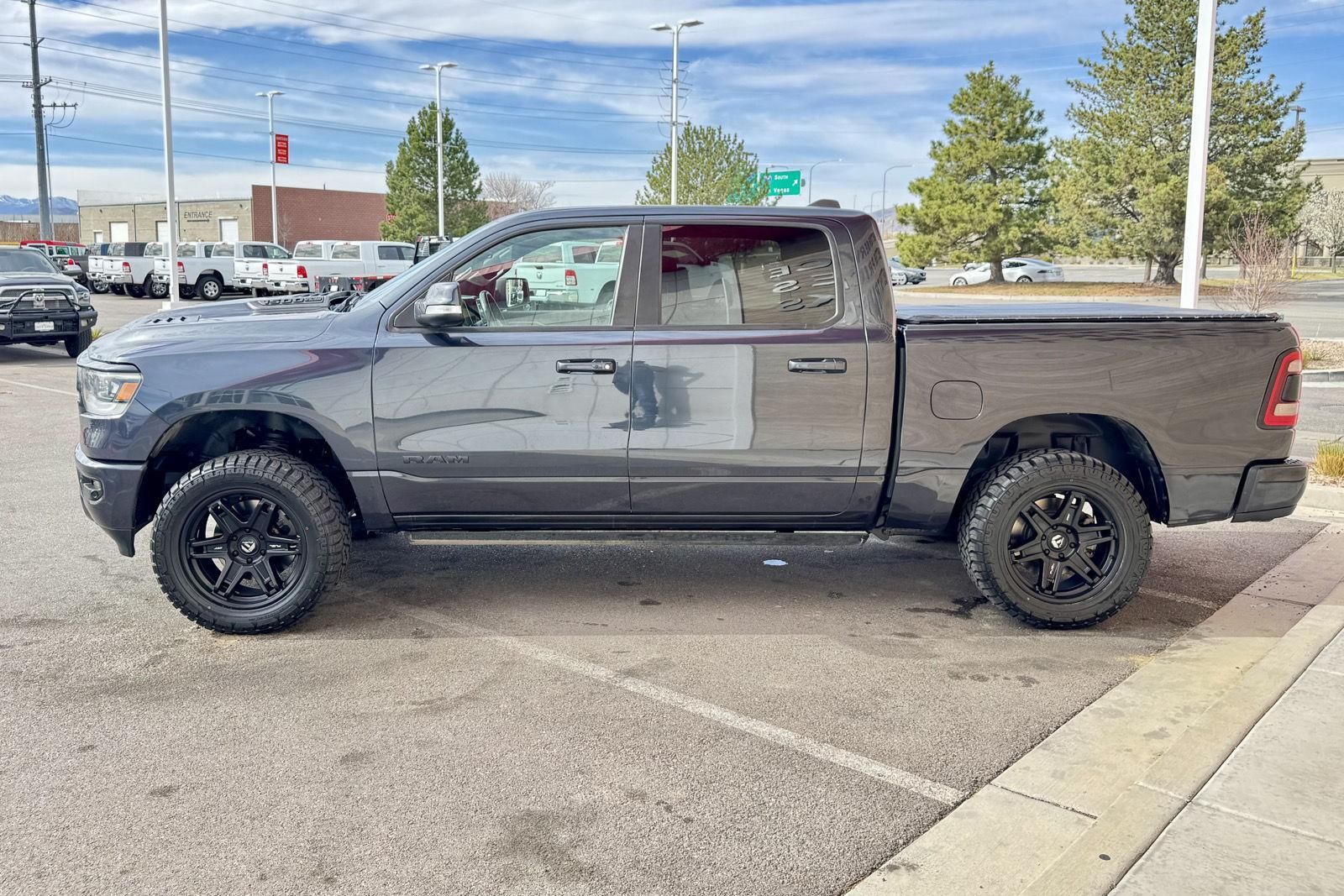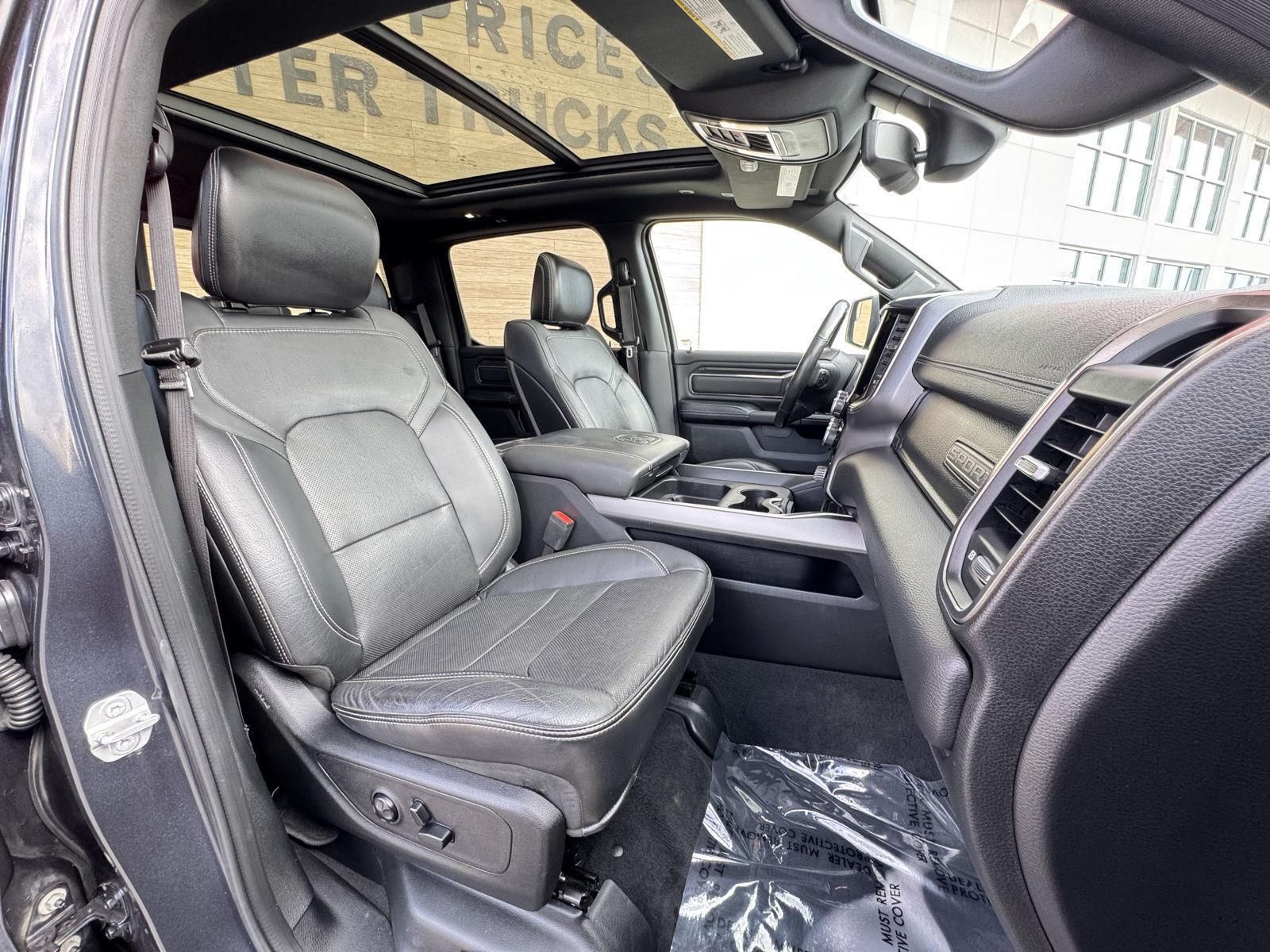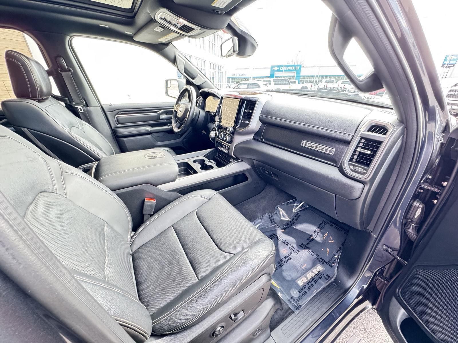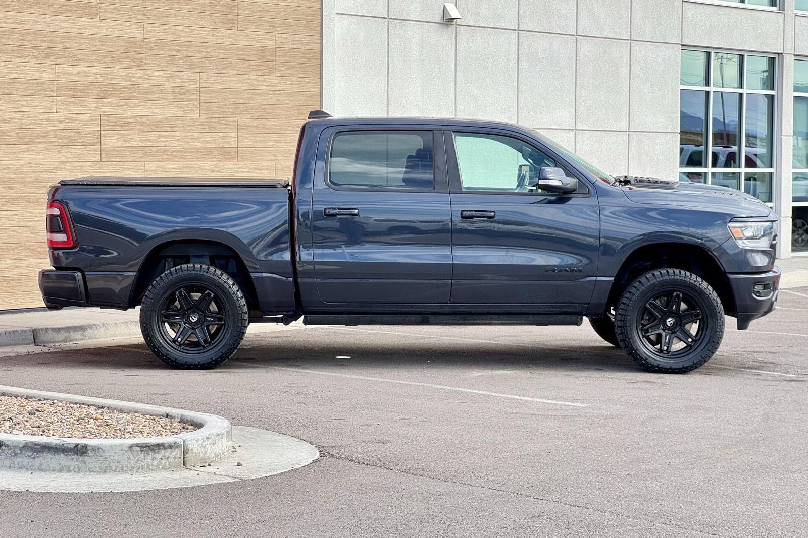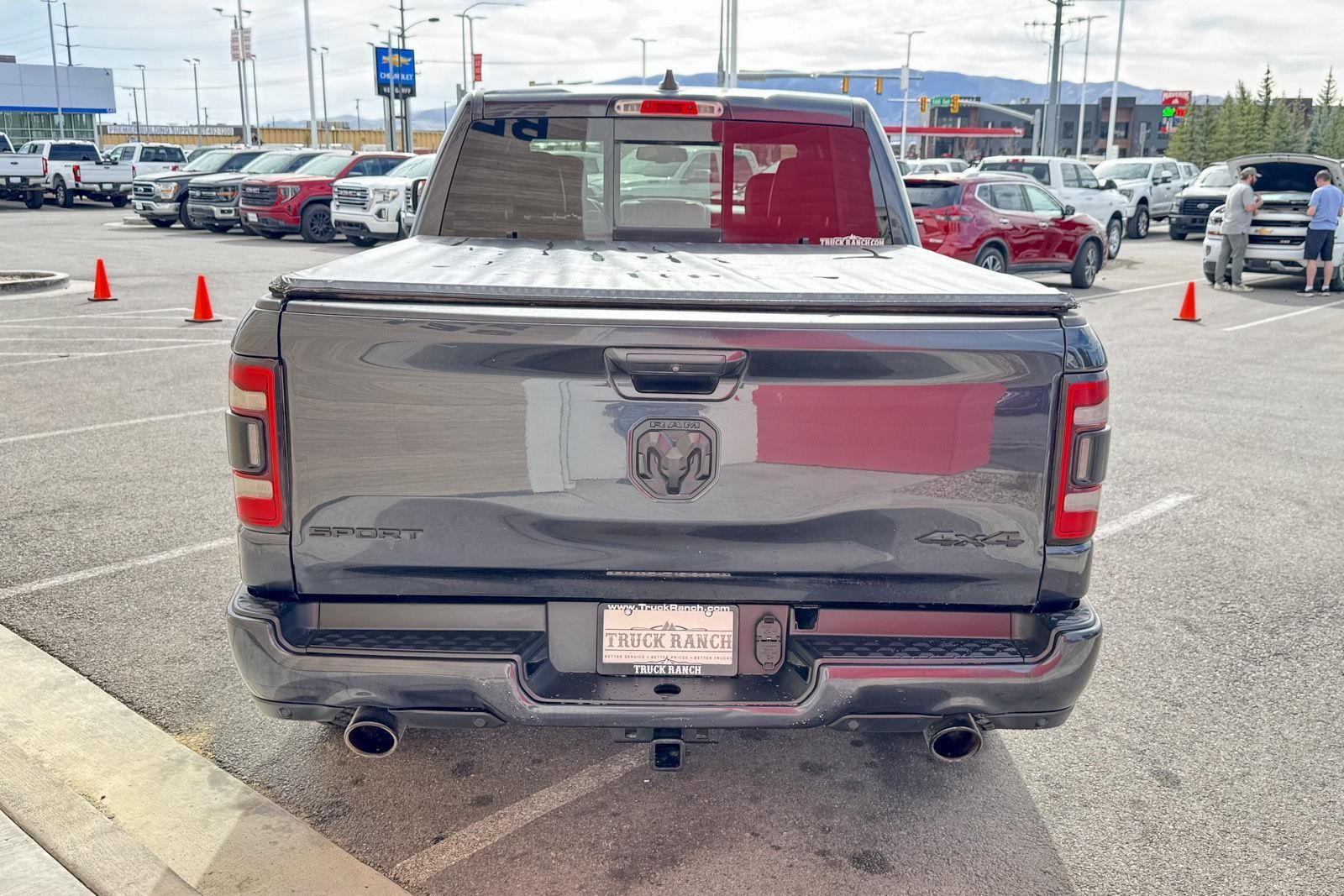 ENGINE: 5.7L HEMI VVT V8 W/FUELSAVER MDS, TRANSMISSION: 8-SPEED AUTOMATIC, QUICK ORDER PACKAGE 25L SPORT, 3.92 REAR AXLE RATIO, WHEELS: 20" X 9" ALUMINUM, TIRES: 275/55R20 OWL ALL-SEASON, MAXIMUM STEEL METALLIC, BLACK, LEATHER-FACED FRONT VENTED BUCKET SEATS, GVWR: 3,220 KGS (7,100 LBS), BED UTILITY GROUP, LEVEL 2 EQUIPMENT GROUP, ANTI-SPIN DIFFERENTIAL REAR AXLE, ACTIVE-LEVEL 4-CORNER AIR SUSPENSION, POWER DUAL-PANE PANORAMIC SUNROOF, REAR WHEELHOUSE LINERS, SPORT PERFORMANCE HOOD, POWER RUNNING BOARDS, SPRAY-IN BEDLINER, RADIO: UCONNECT 4C NAV W/8.4" DISPLAY, 9 ALPINE SPEAKERS W/SUBWOOFER, REMOTE START SYSTEM, PARK-SENSE FRONT & REAR PARK ASSIST