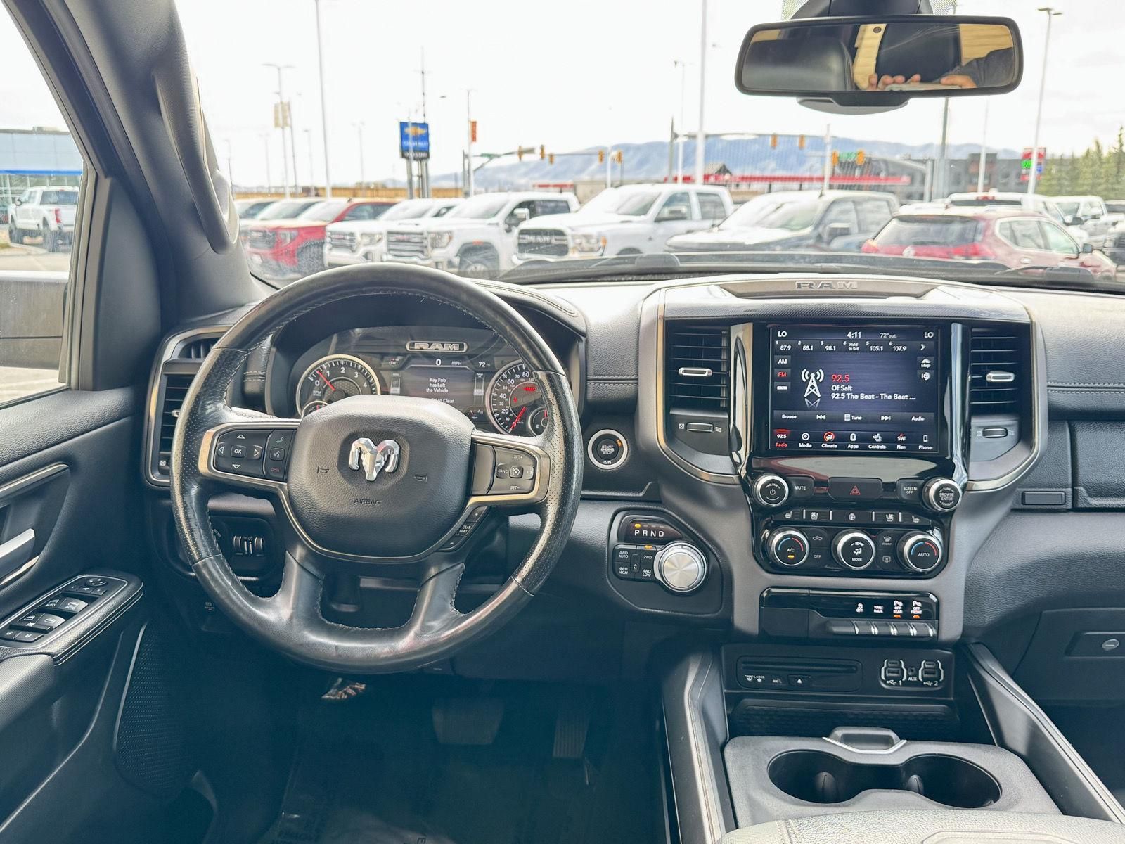 Quick Order Package 25L SportLevel 1 Equipment GroupSport GroupFront and Rear Floor MatsPremium Overhead ConsoleElectric Shift-On-demand Transfer CaseAuto-Dimming Exterior Driver MirrorPower Heated Manual Folding MirrorsGPS Antenna InputInstrument ClusterLED Dome Lamp with On/off SwitchExterior Mirrors with Turn SignalsExterior Mirrors with Courtesy LampsExterior Mirrors with Memory SettingsPower Folding Exterior MirrorsOverhead LED LampsAutomatic High-Beam Headlamp ControlBody-Colour GrilleBody-Colour Rear Bumper with Step PadsFront Wheel SpatsRAMs Head BadgeBody-Colour Door HandlesRear Wheel SpatsSport BadgeActive Front Air DamsHeated Exterior MirrorsGoogle Android AutoApple CarPlay CapableFront Heavy-Duty Shock AbsorbersRear Heavy-Duty Shock AbsorbersFull-Size Temporary Use Spare TireBridgestone Brand TiresBed Utility Group ($200 value)Truck Bed Cargo Divider4 Adjustable Cargo Tie-Down HooksLED Bed LightingLevel 1 Equipment GroupFront Heated SeatsDoor Trim Panel Foam Bottle InsertRear Window DefrosterSun Visors with Illuminated Vanity MirrorsAuto-Dimming Rearview MirrorHeated Steering WheelSingle-Disc Remote CD PlayerIntegrated Centre Stack RadioPower Adjustable PedalsUniversal Garage Door OpenerLevel 2 Equipment Group ($1,025 value)Front Heated SeatsRear Underseat Compartment StorageDoor Trim Panel Foam Bottle InsertRear Window DefrosterSun Visors with Illuminated Vanity MirrorsAuto-Dimming Rearview MirrorRemote Proximity Keyless EntryRain-Sensing Windshield Wipers115V Rear Auxiliary Power OutletSecurity AlarmHeated Steering WheelSingle-Disc Remote CD PlayerRear Media Hub with 2 USB PortsPower Adjustable PedalsRemote Start SystemUniversal Garage Door OpenerPark-Sense Front and Rear Park Assist