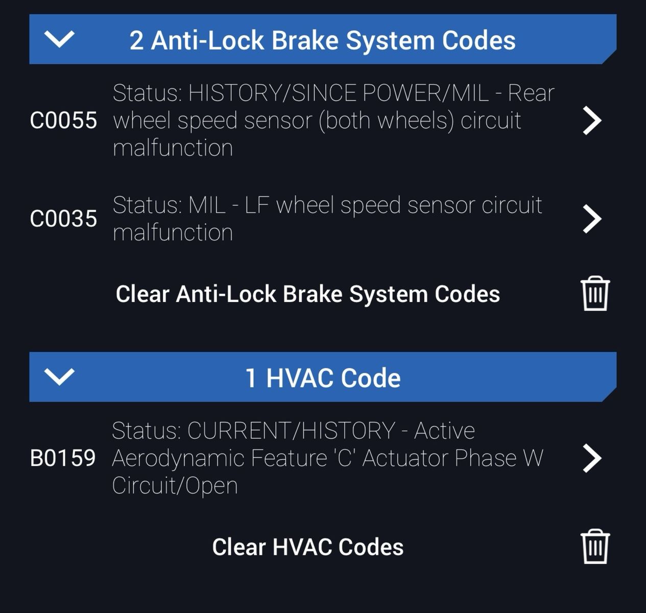 P0700, P0722, P0708, C0055, C0035 and B0159.